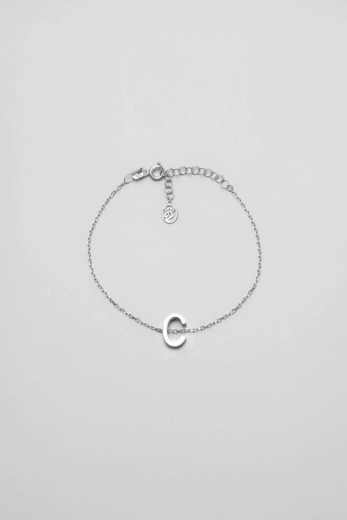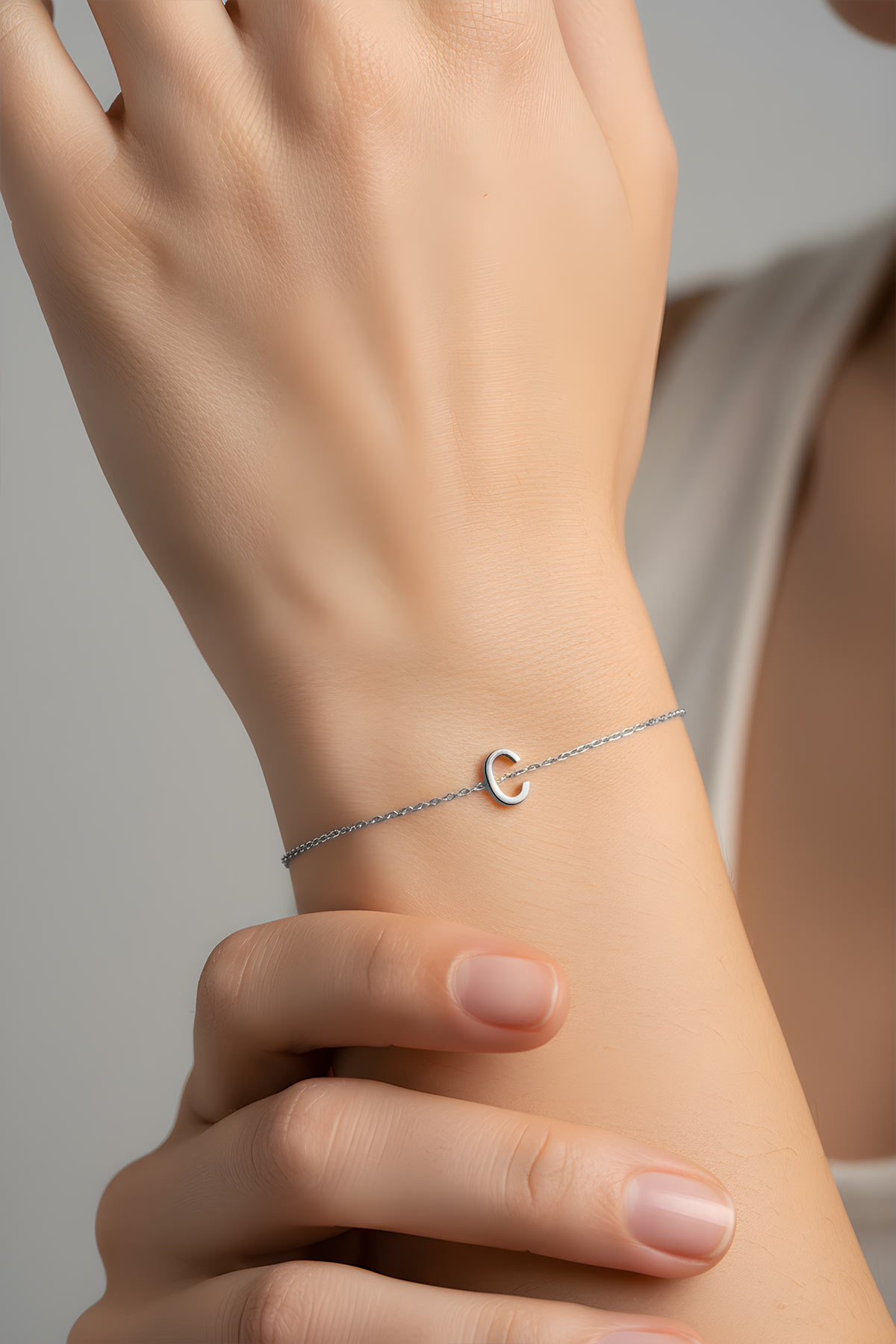 My Story C Harfi 18 Ayar Beyaz Altın Kaplama 18 Cm Gümüş Bileklik
