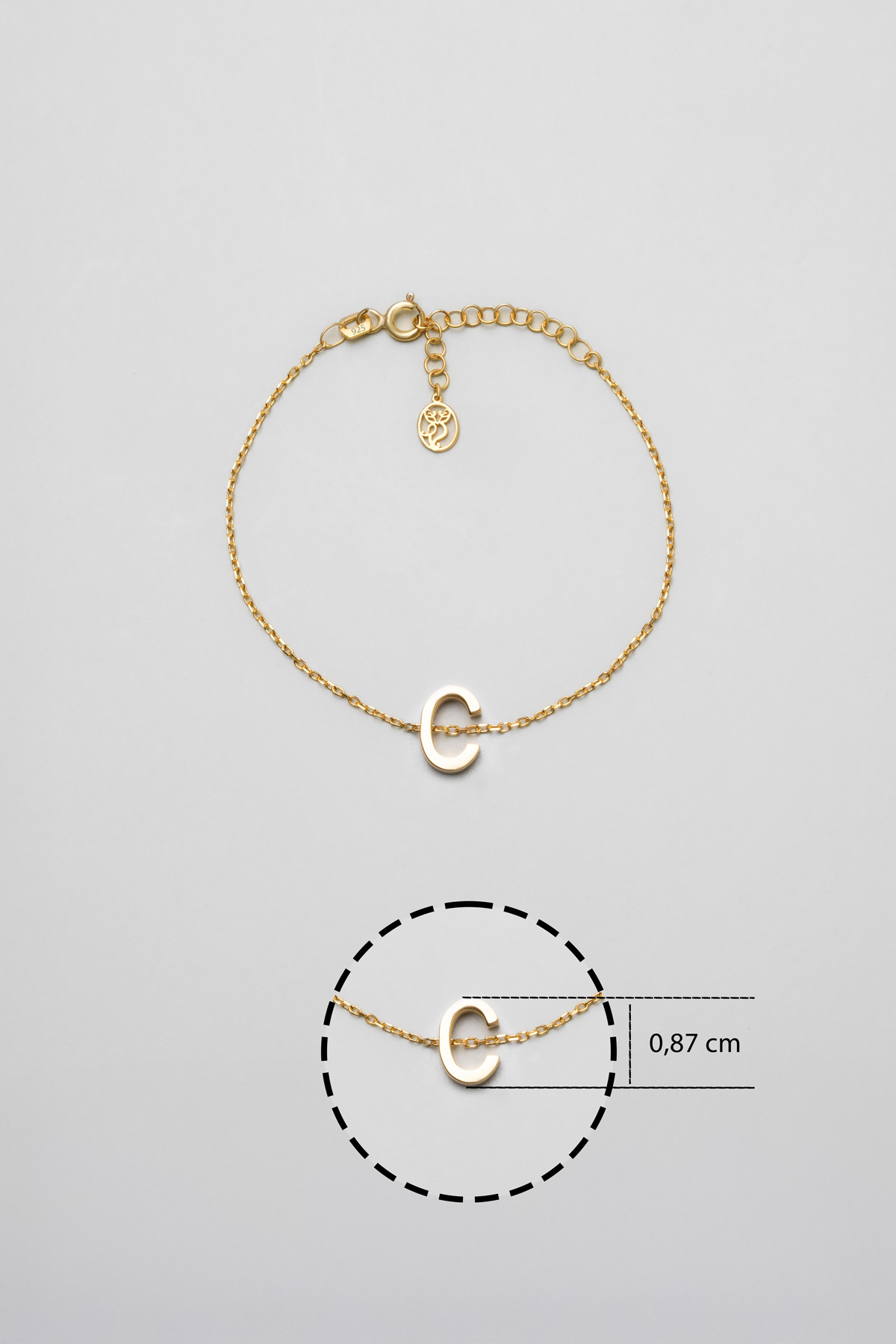 My Story C Harfi 18 Ayar Sarı Altın Kaplama 18 Cm Gümüş Bileklik