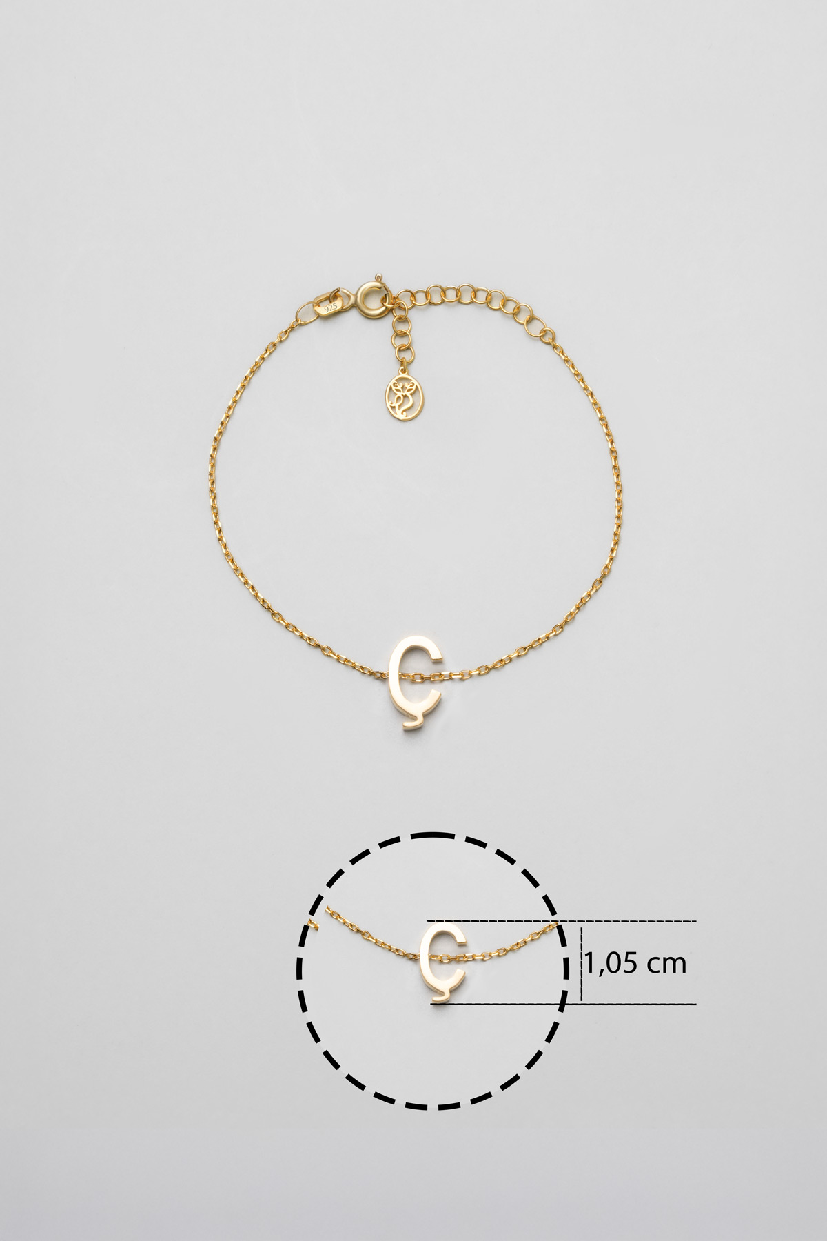 My Story Ç Harfi 18 Ayar Sarı Altın Kaplama 18 Cm Gümüş Bileklik