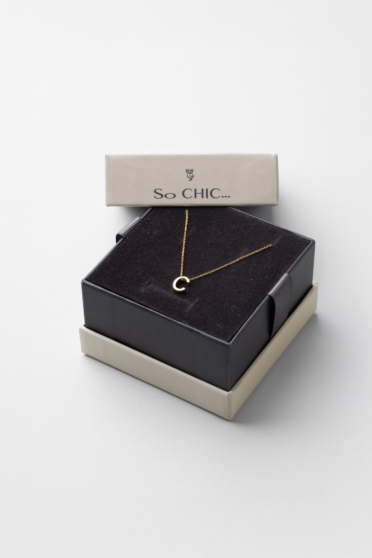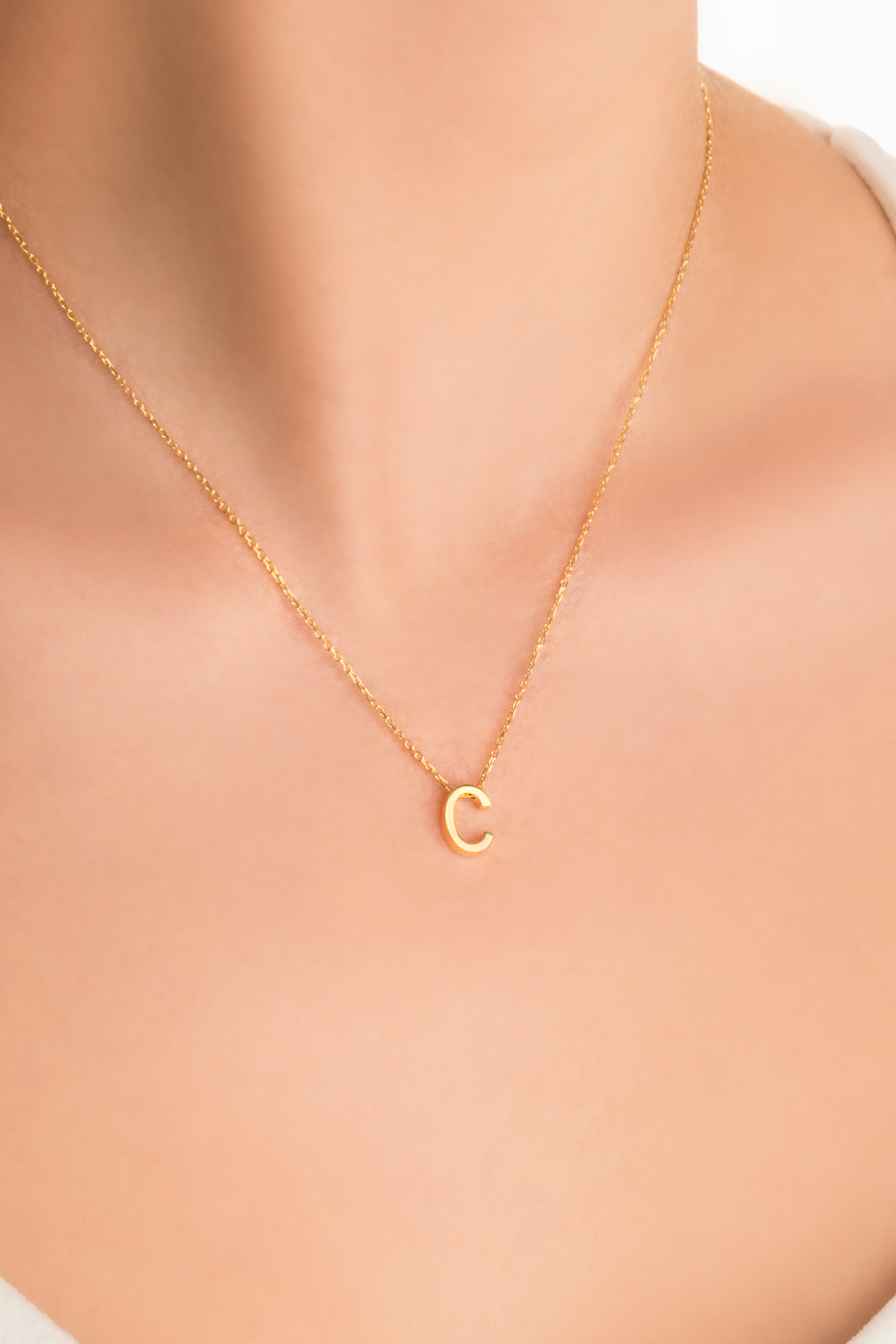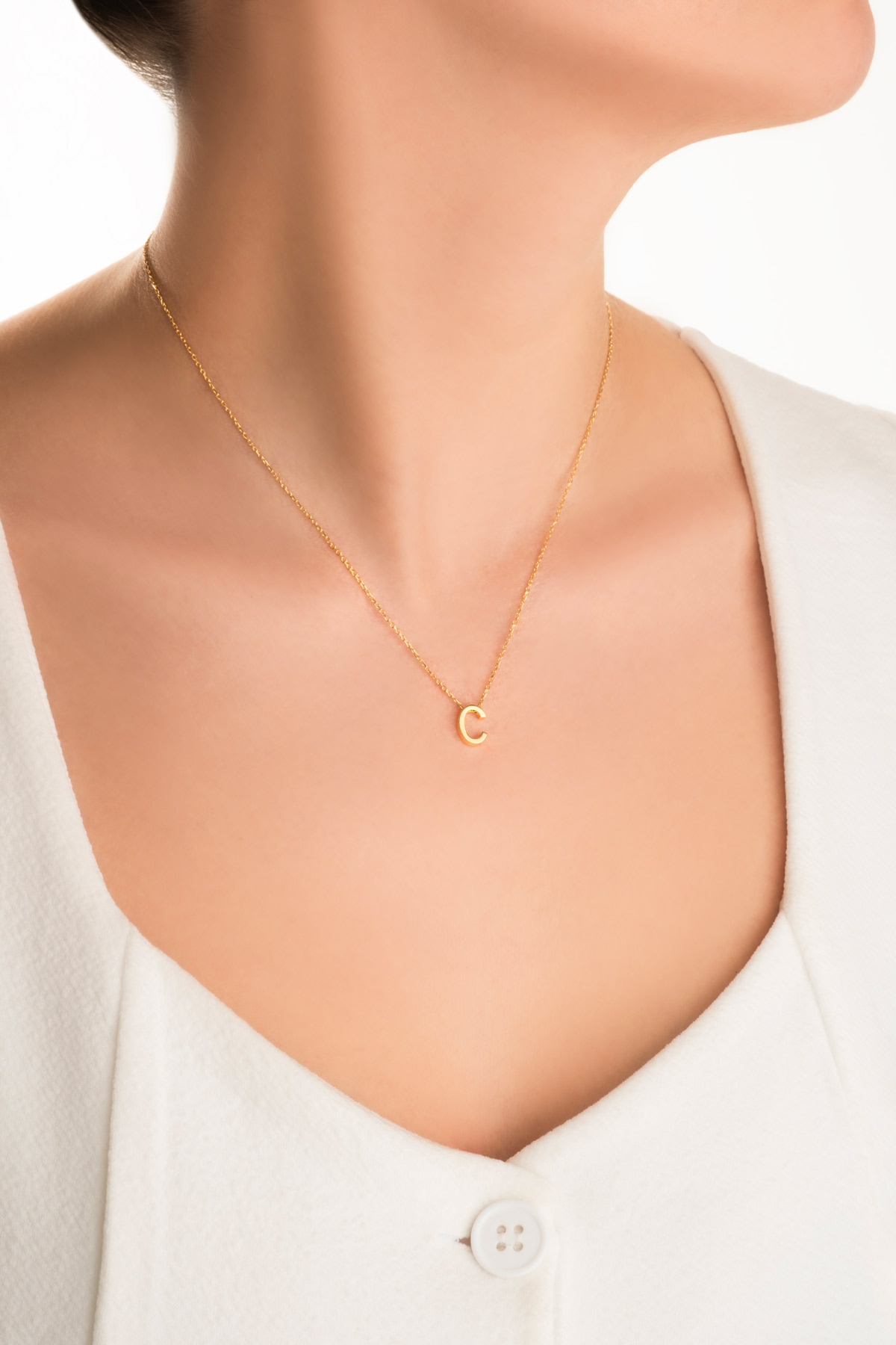 My Story C Harfi 18 Ayar Sarı Altın Kaplama 45 Cm Gümüş Kolye