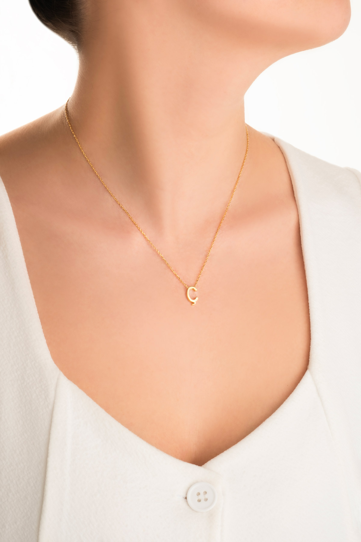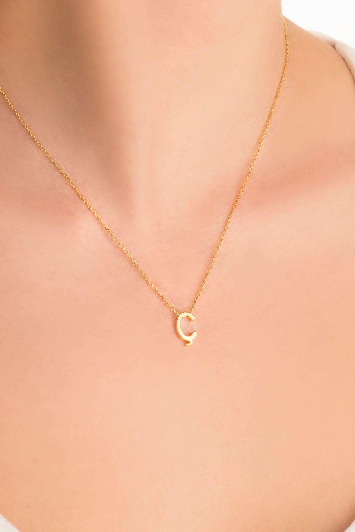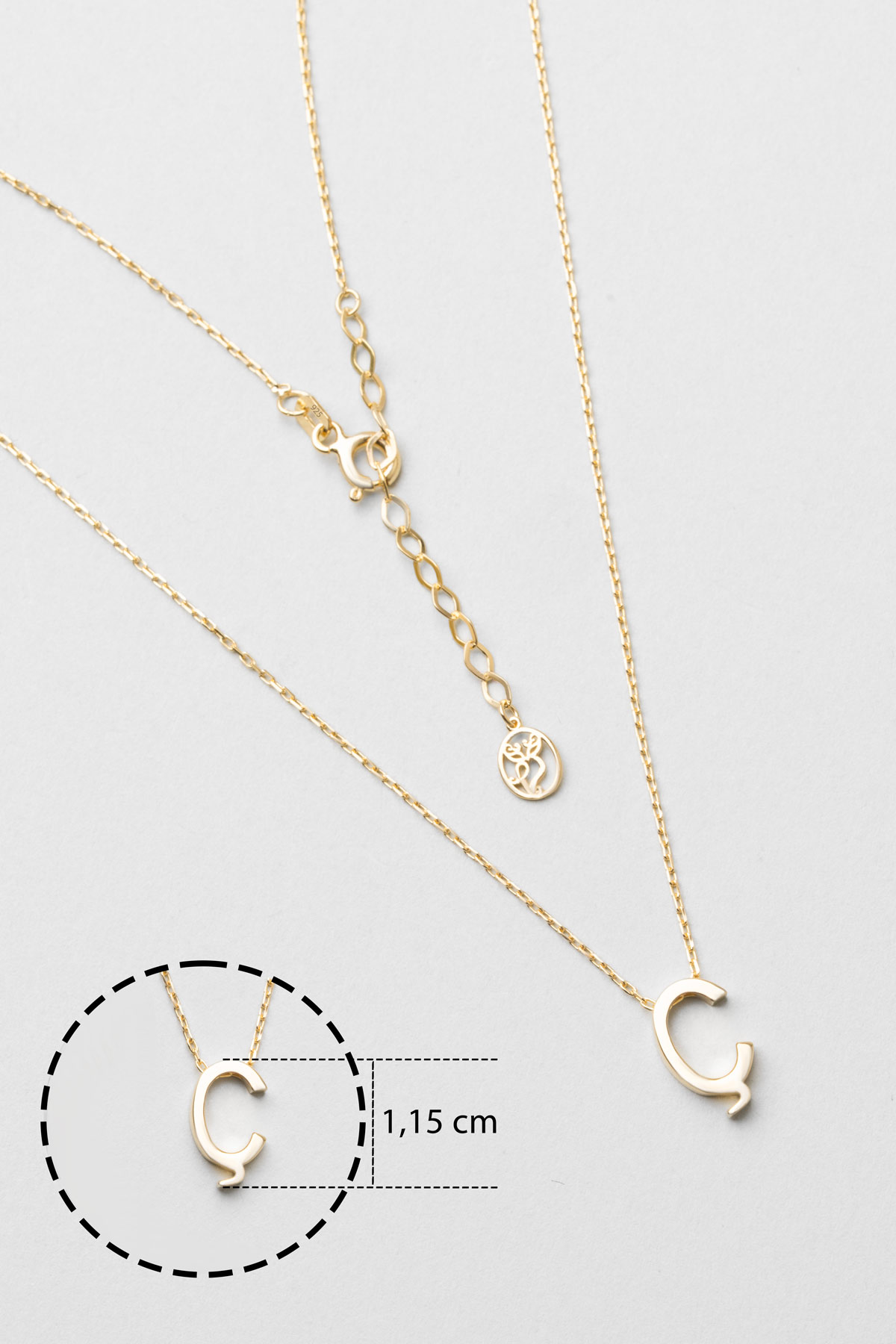 My Story Ç Harfi 18 Ayar Sarı Altın Kaplama 45 Cm Gümüş Kolye