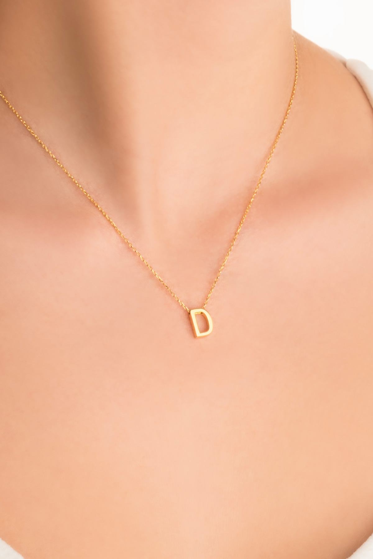 My Story D Harfi 18 Ayar Sarı Altın Kaplama 45 Cm Gümüş Kolye