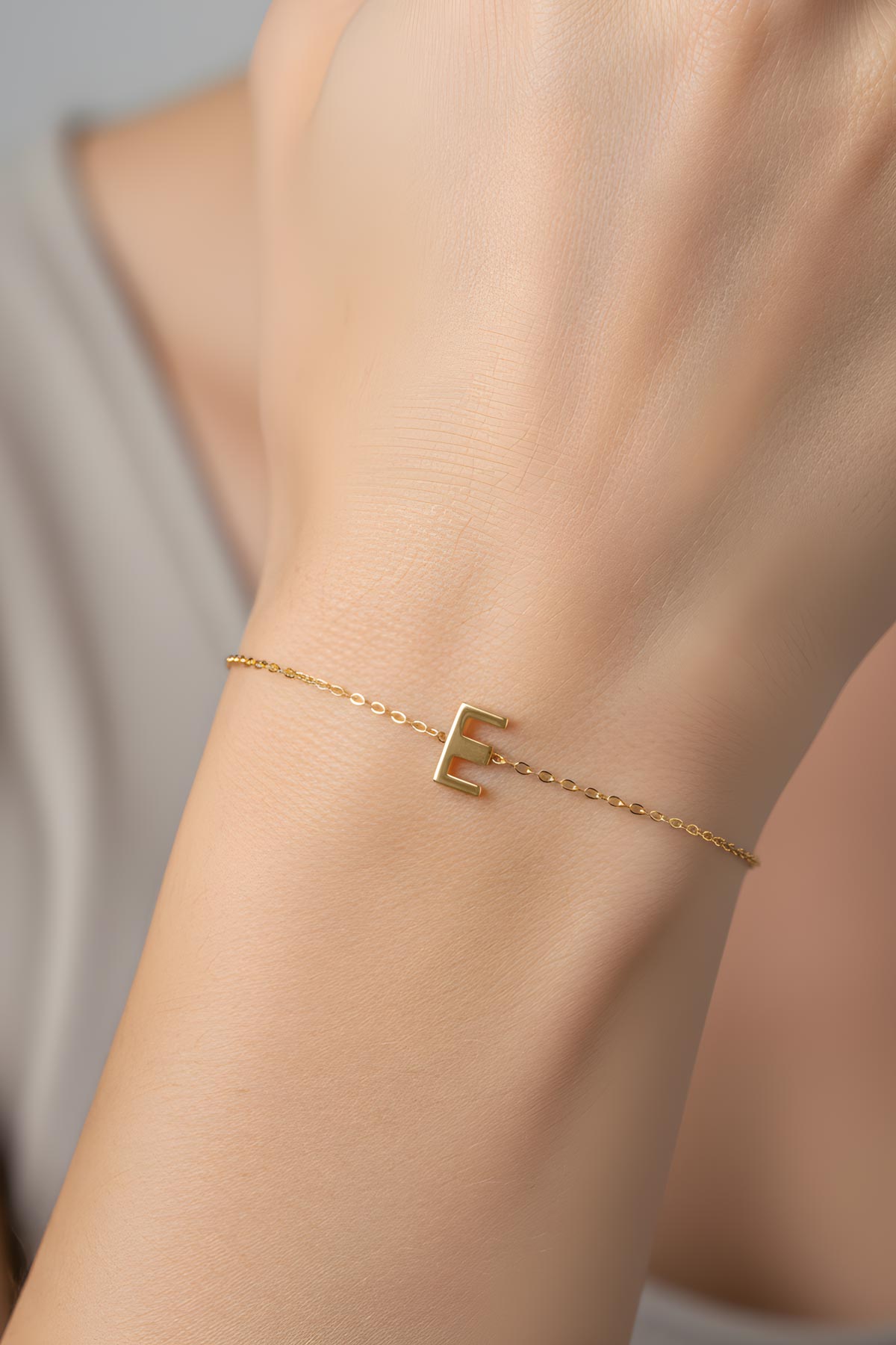 My Story E Harfi 18 Ayar Sarı Altın Kaplama 18 Cm Gümüş Bileklik