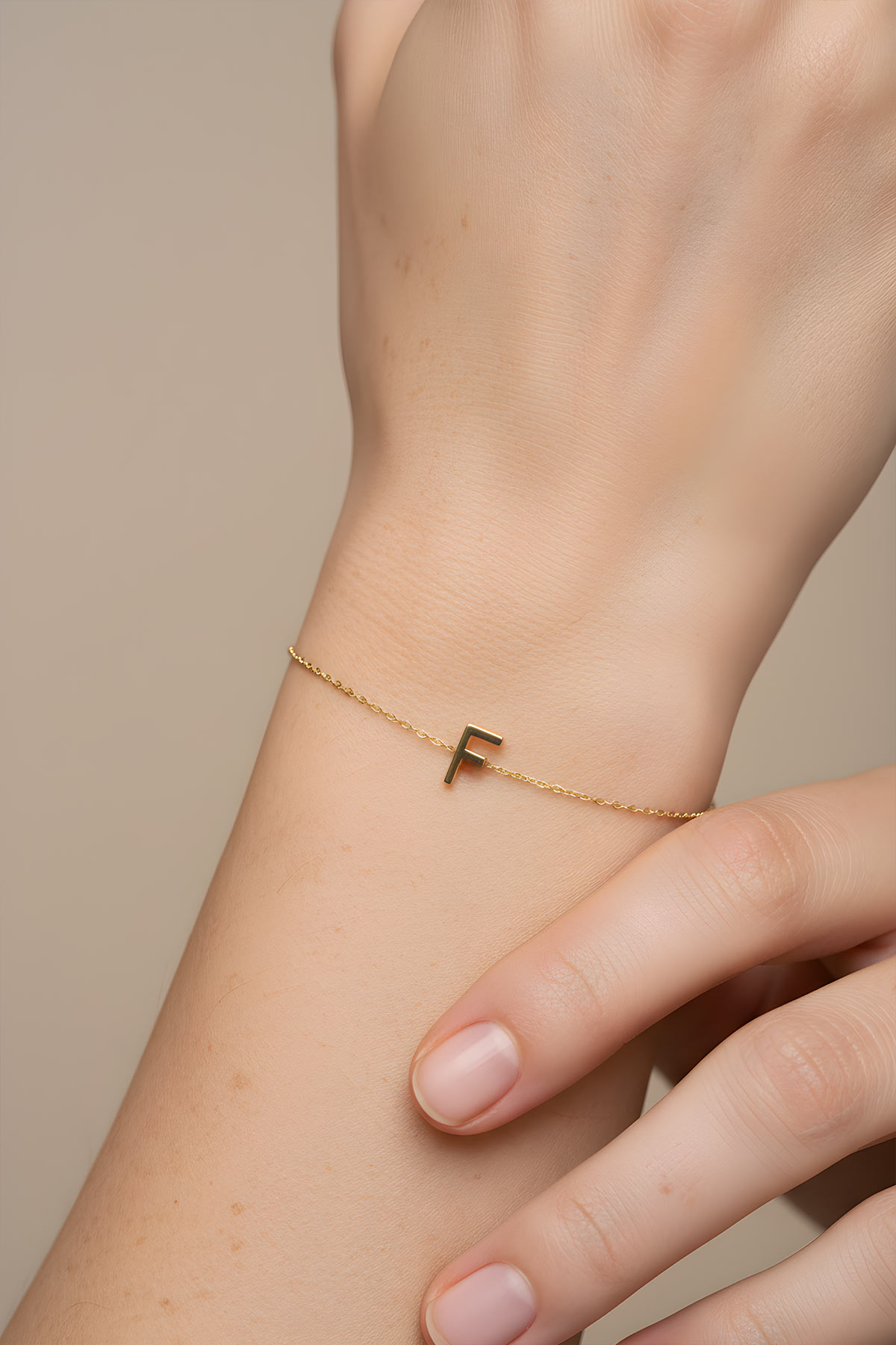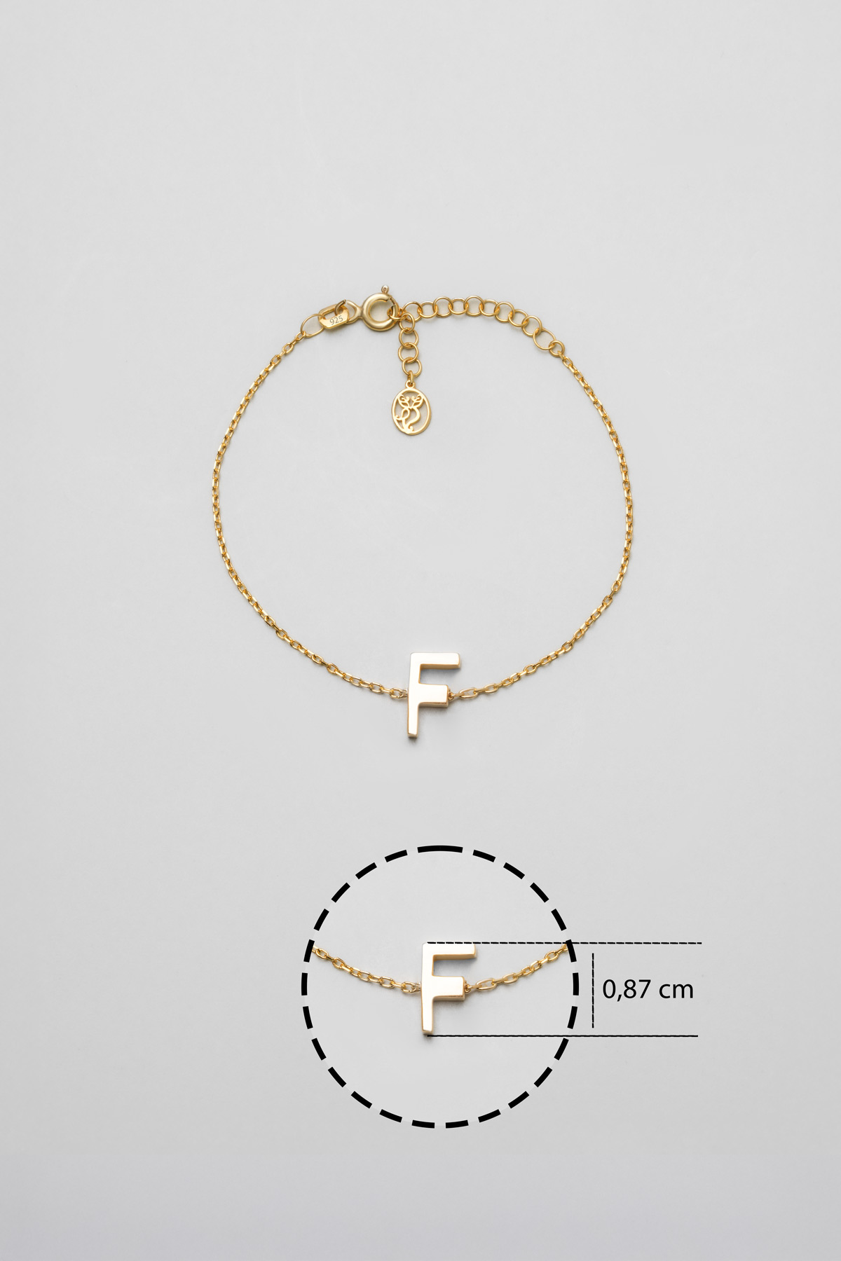 My Story F Harfi 18 Ayar Sarı Altın Kaplama 18 Cm Gümüş Bileklik