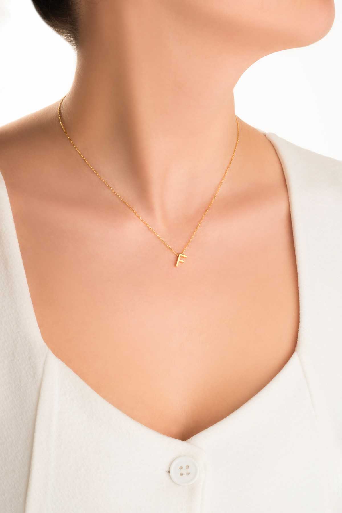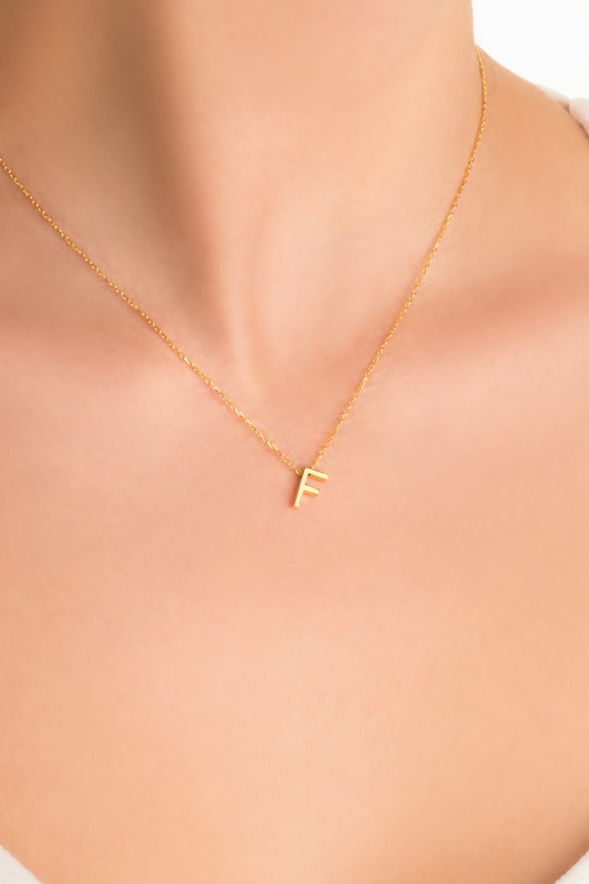 My Story F Harfi 18 Ayar Sarı Altın Kaplama 45 Cm Gümüş Kolye