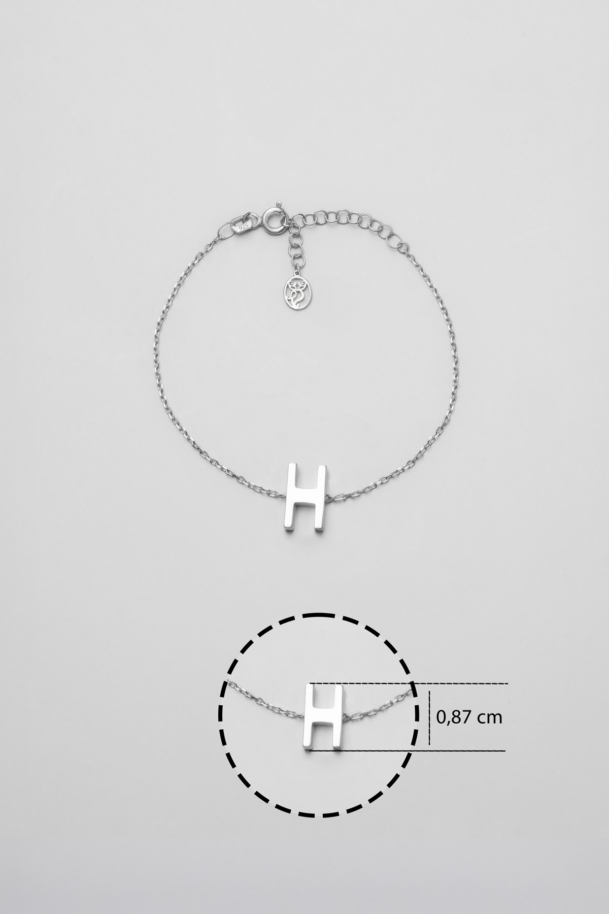 My Story H Harfi 18 Ayar Beyaz Altın Kaplama 18 Cm Gümüş Bileklik