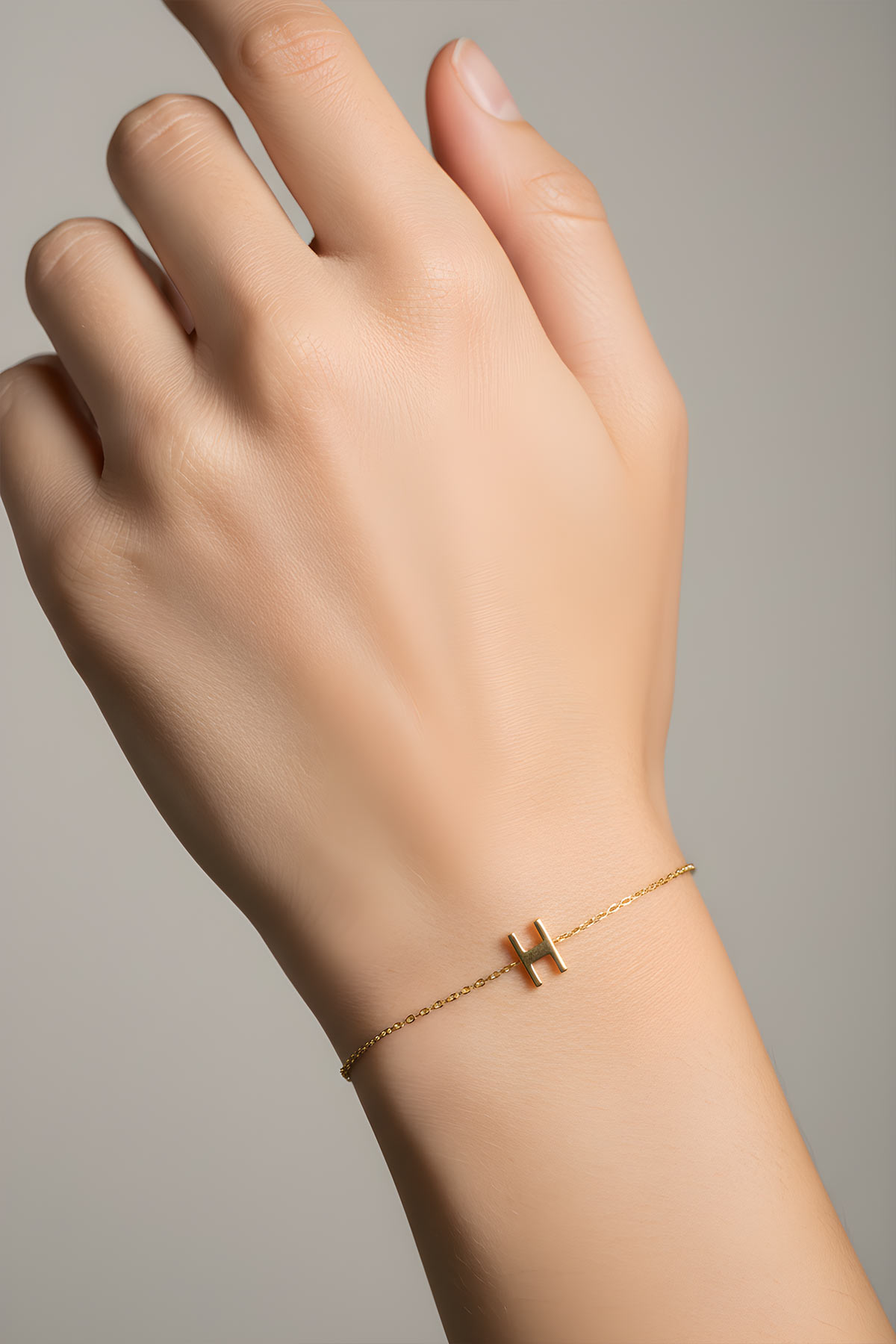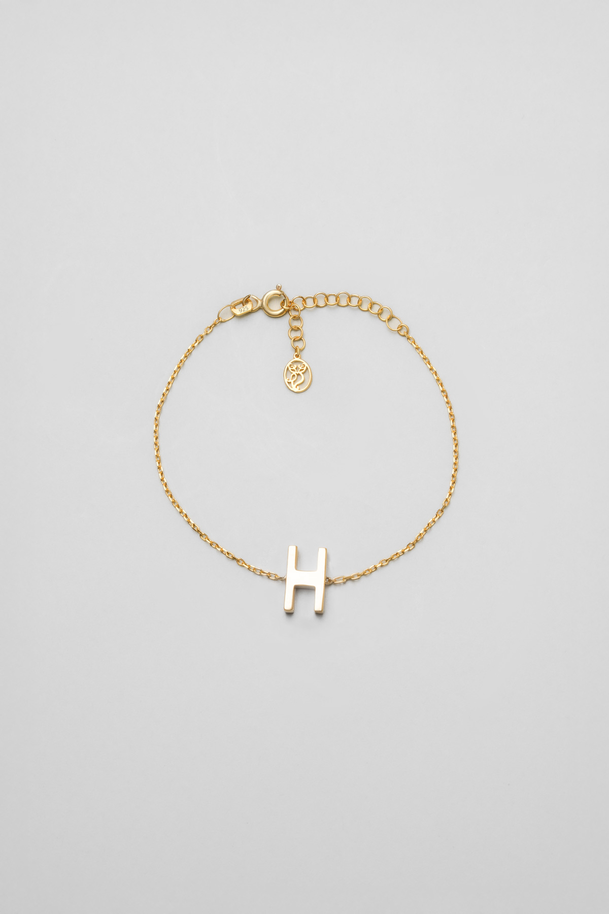 My Story H Harfi 18 Ayar Sarı Altın Kaplama 18 Cm Gümüş Bileklik