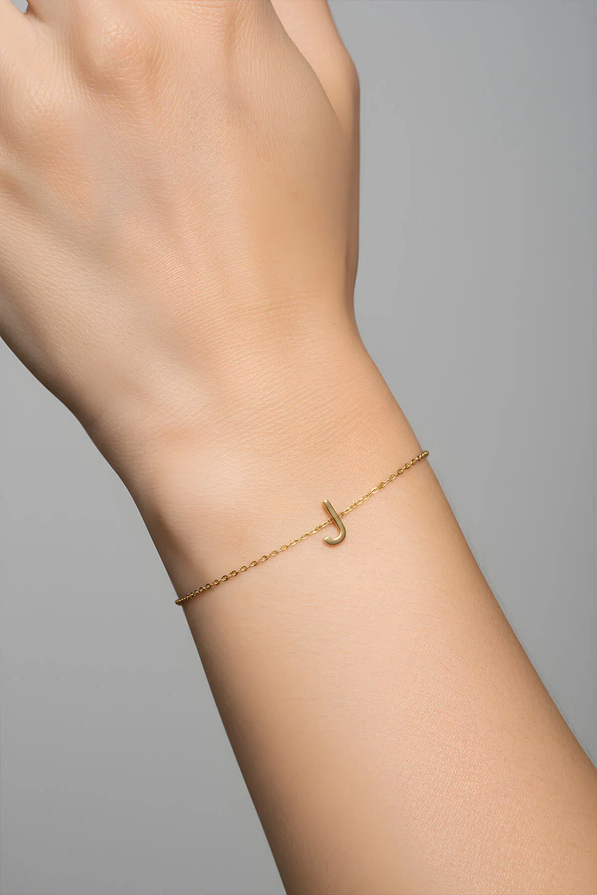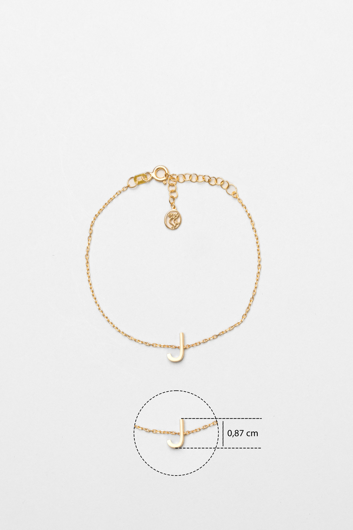 My Story J Harfi 18 Ayar Sarı Altın Kaplama 18 Cm Gümüş Bileklik