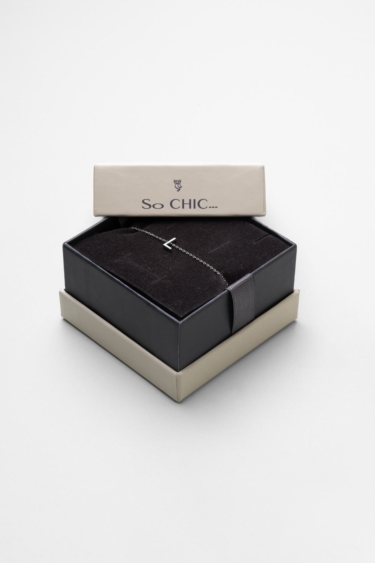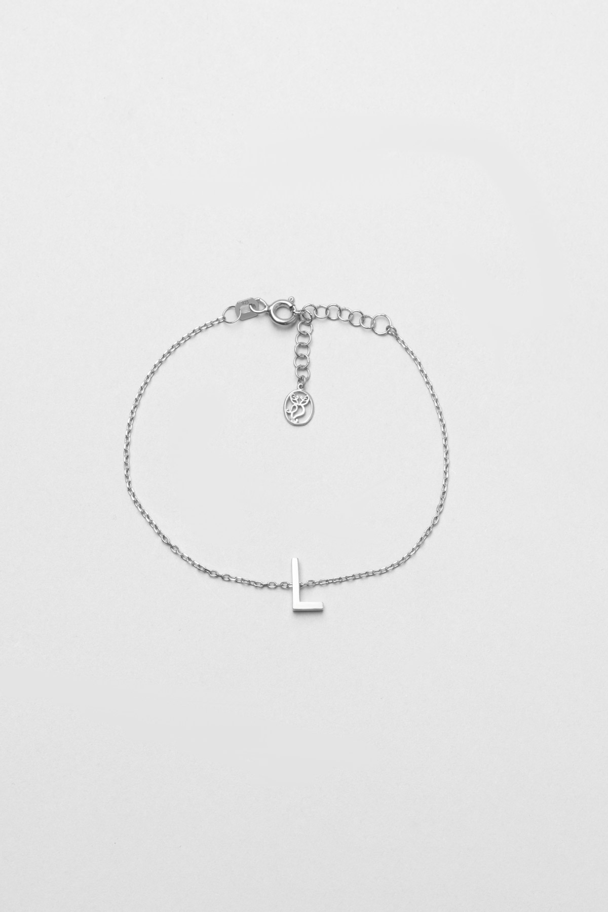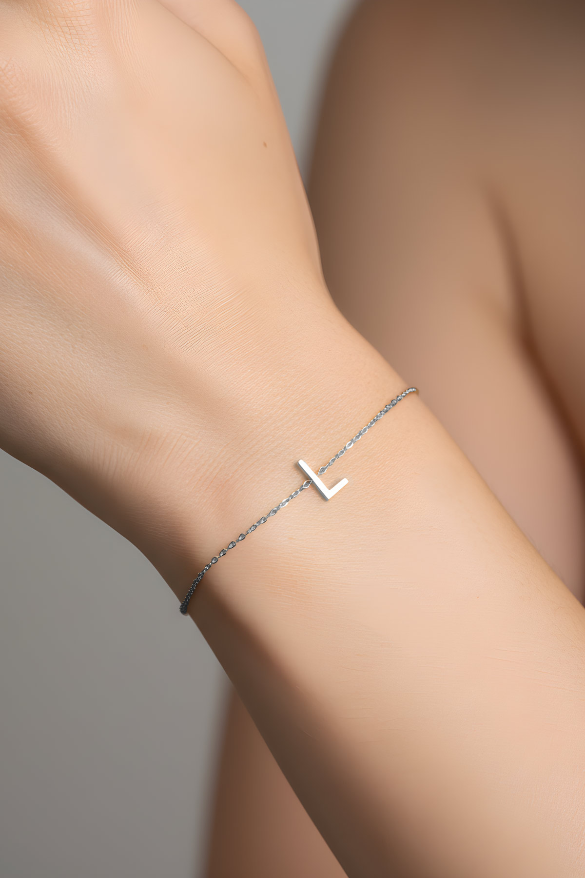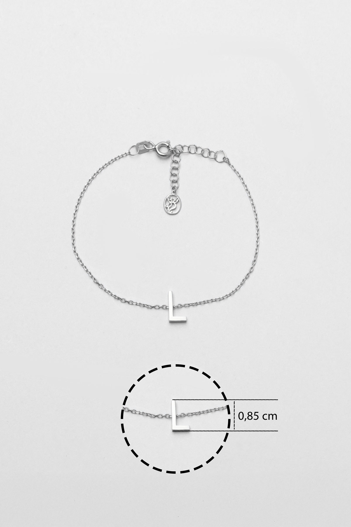 My Story L Harfi 18 Ayar Beyaz Altın Kaplama 18 Cm Gümüş Bileklik