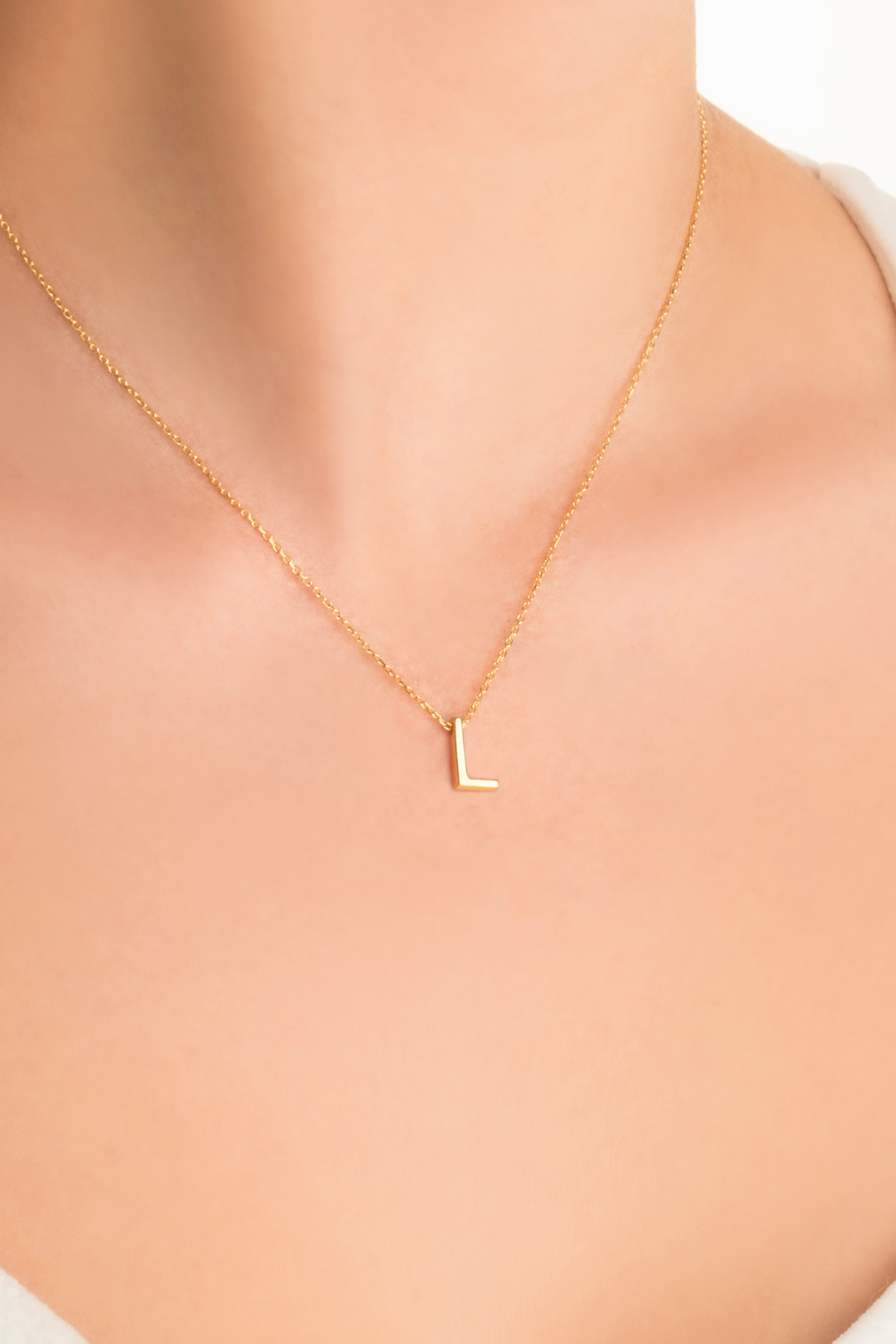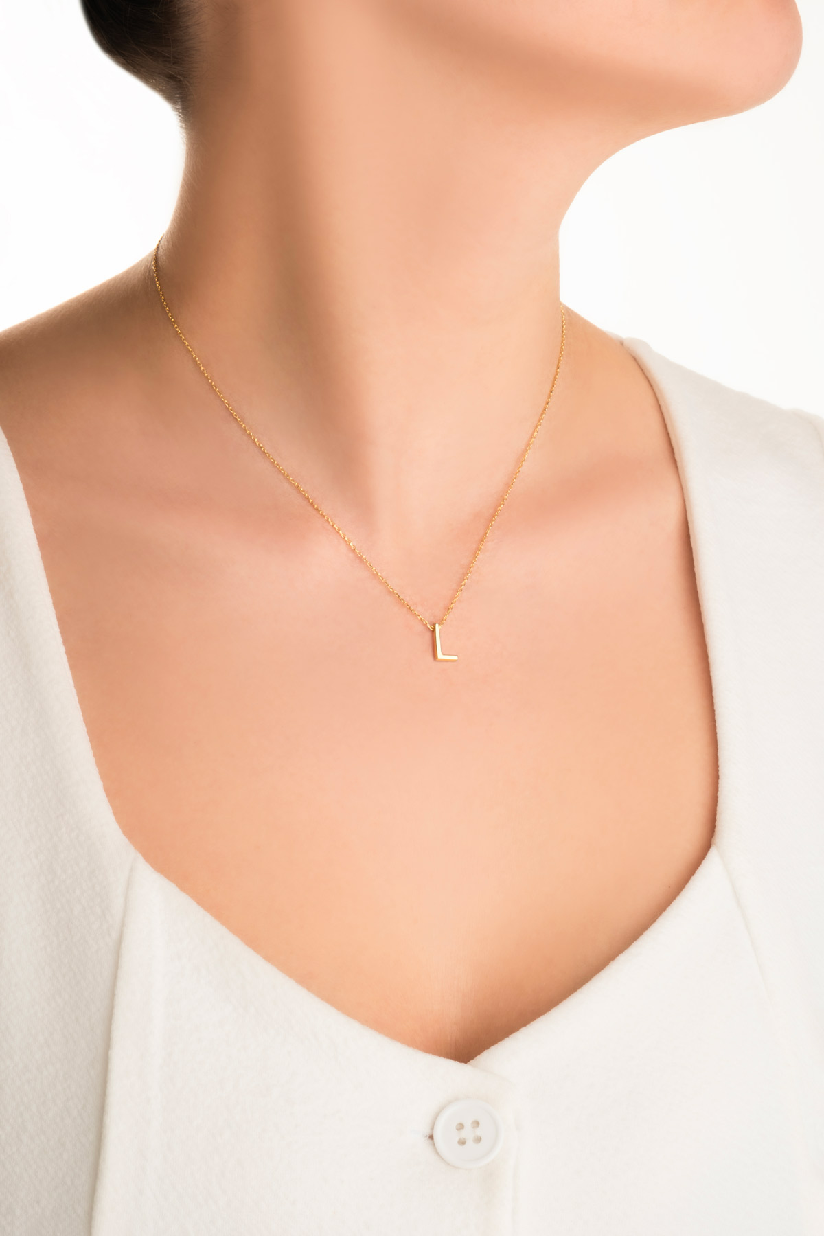 My Story L Harfi 18 Ayar Sarı Altın Kaplama 45 Cm Gümüş Kolye