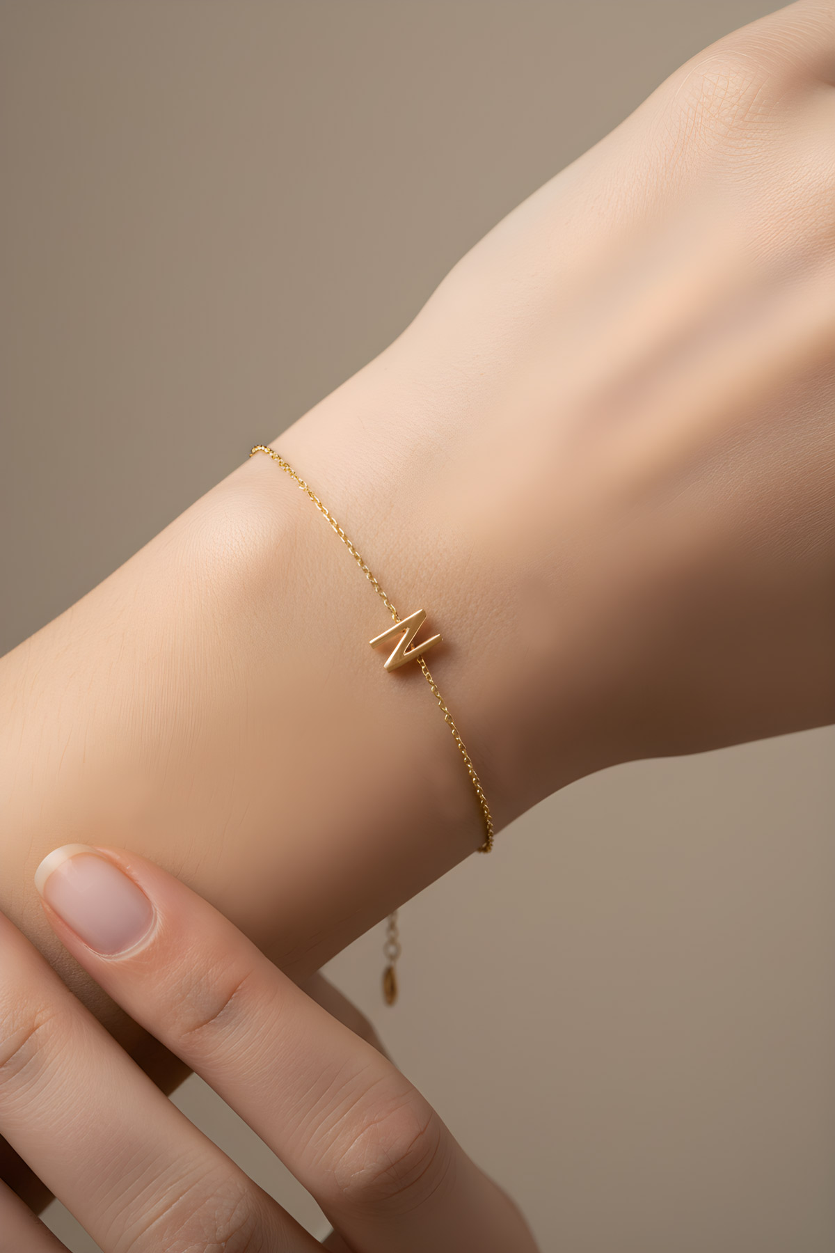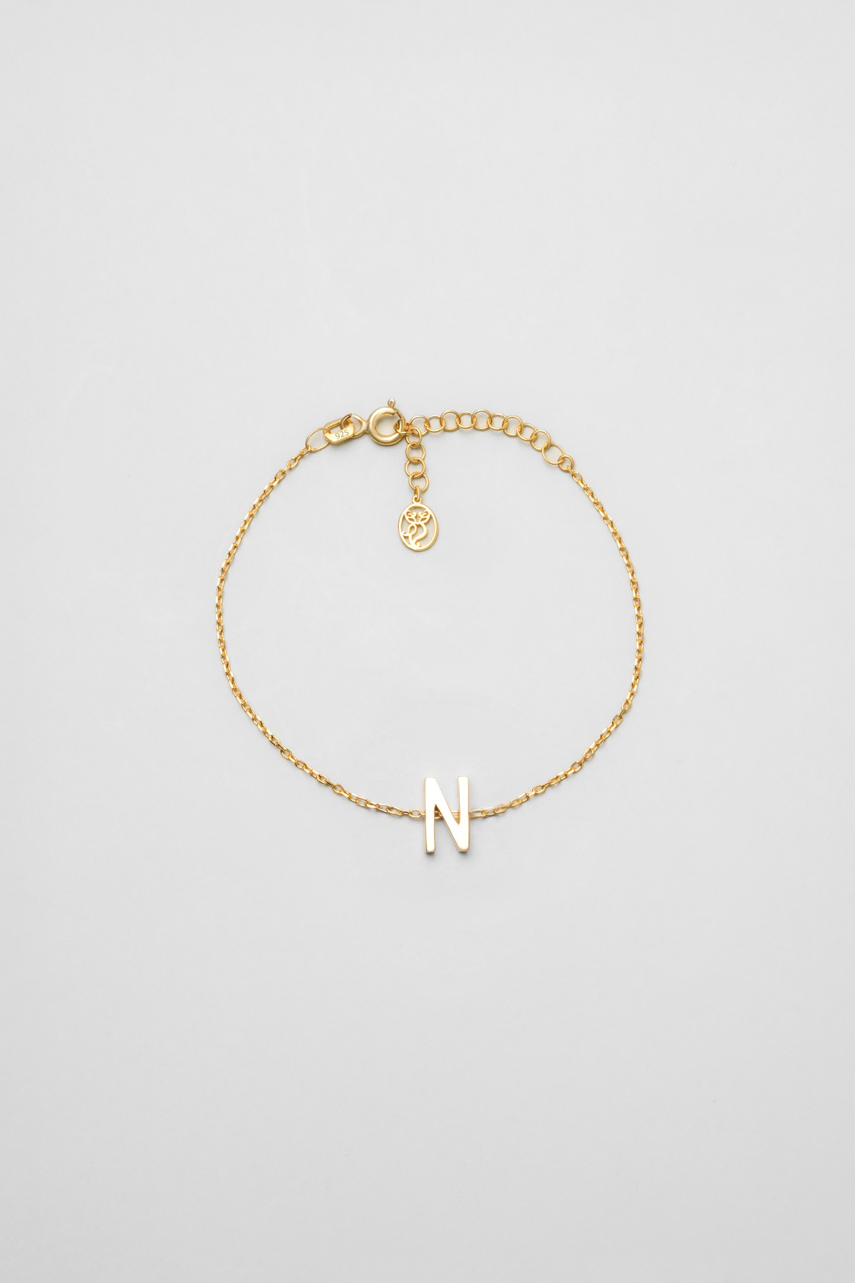 My Story N Harfi 18 Ayar Sarı Altın Kaplama 18 Cm Gümüş Bileklik