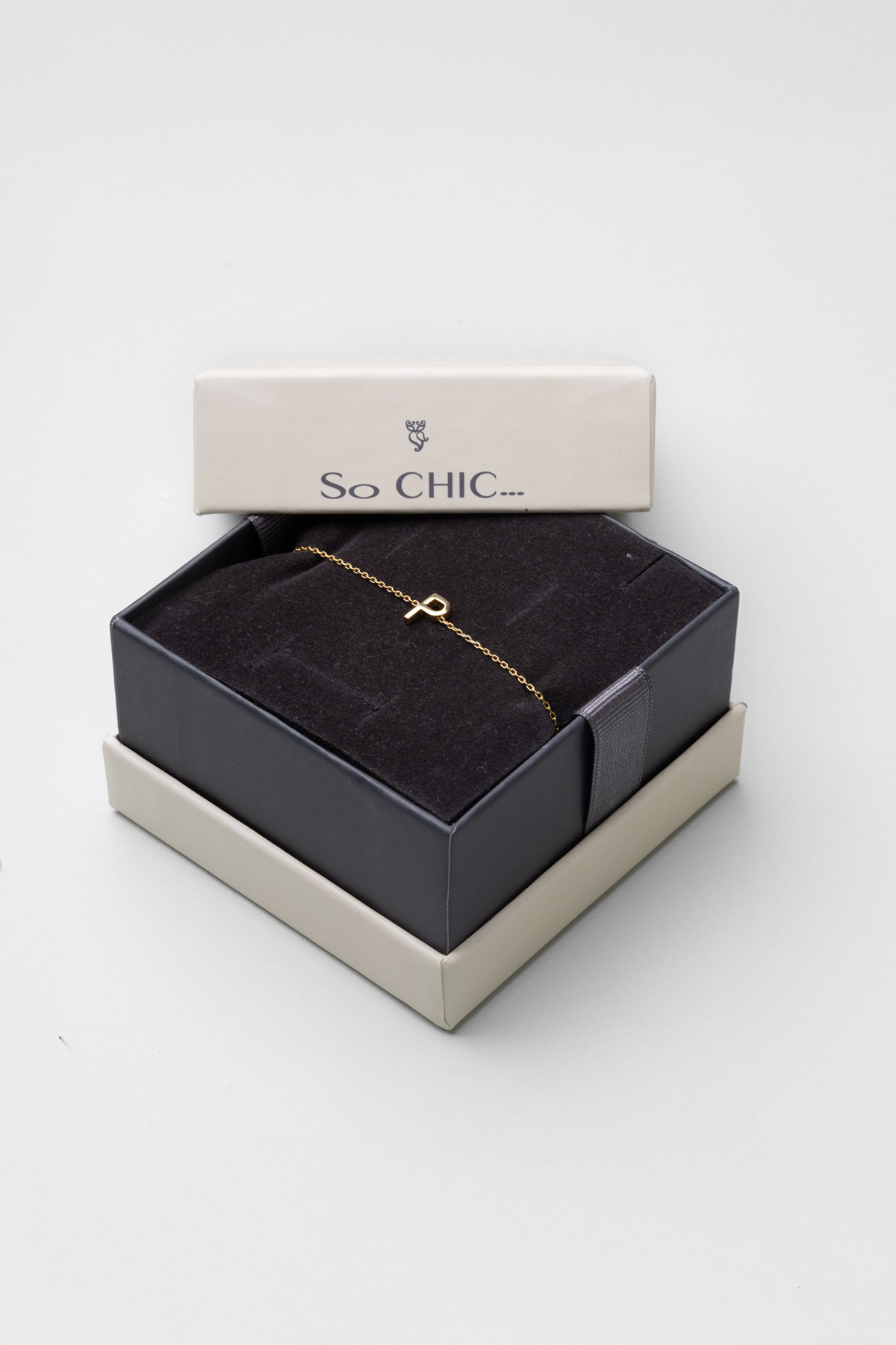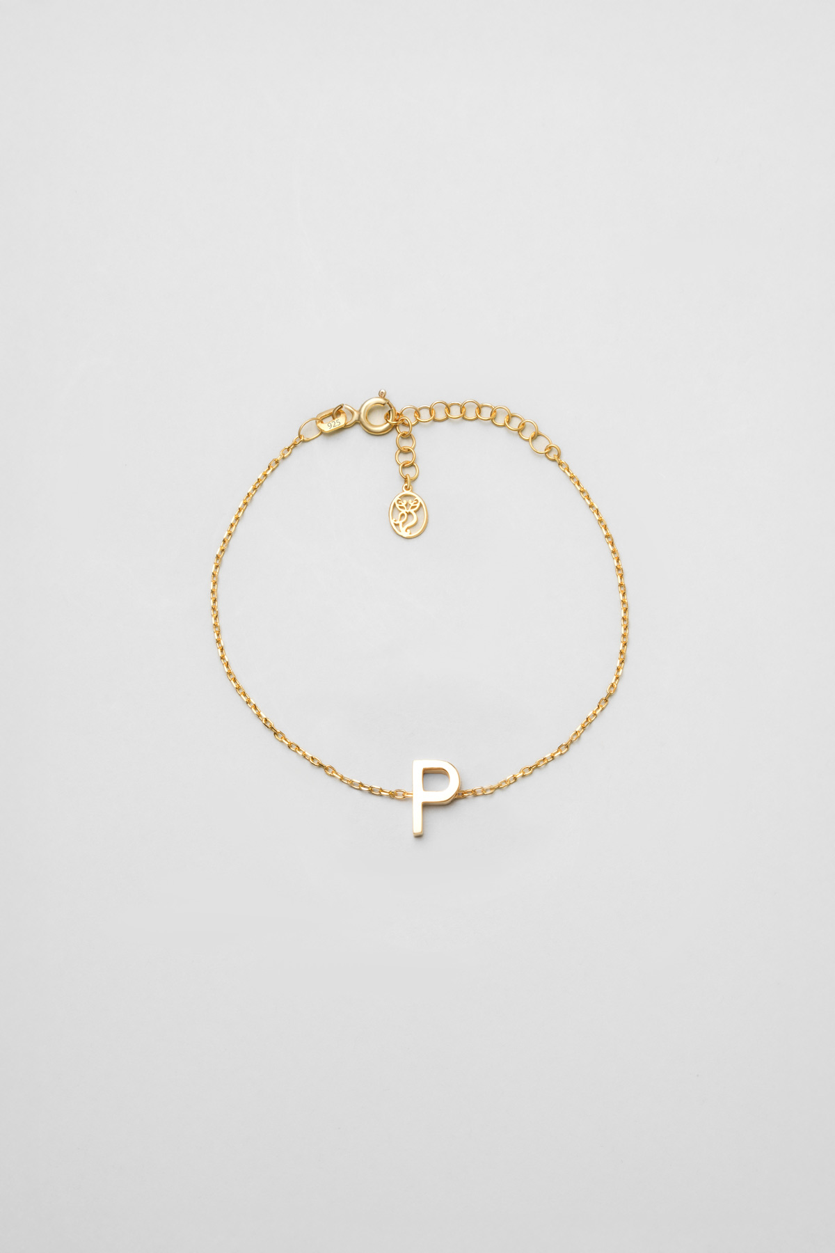 My Story P Harfi 18 Ayar Sarı Altın Kaplama 18 Cm Gümüş Bileklik