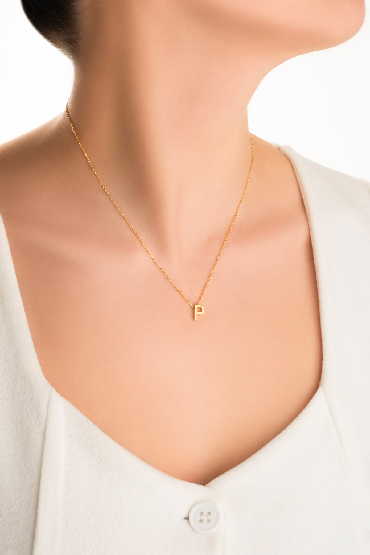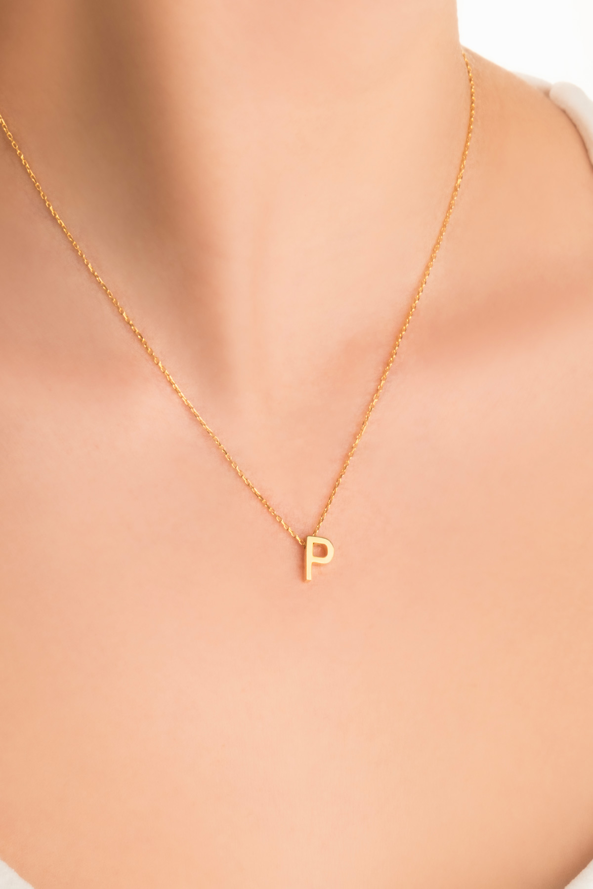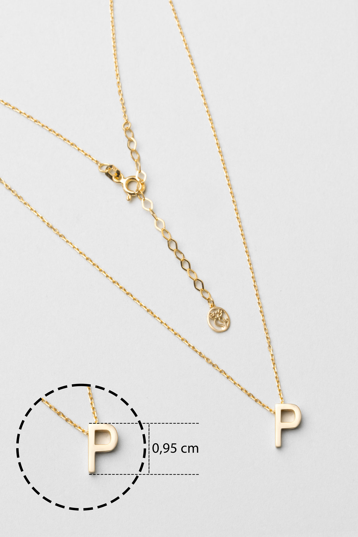 My Story P Harfi 18 Ayar Sarı Altın Kaplama 45 Cm Gümüş Kolye
