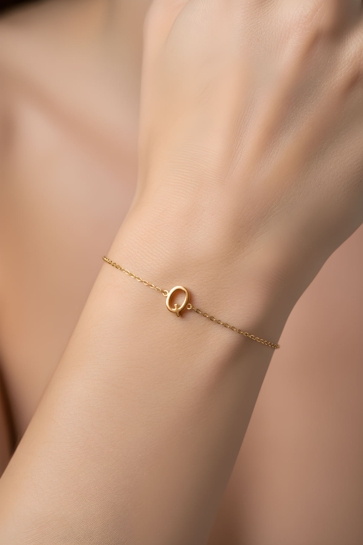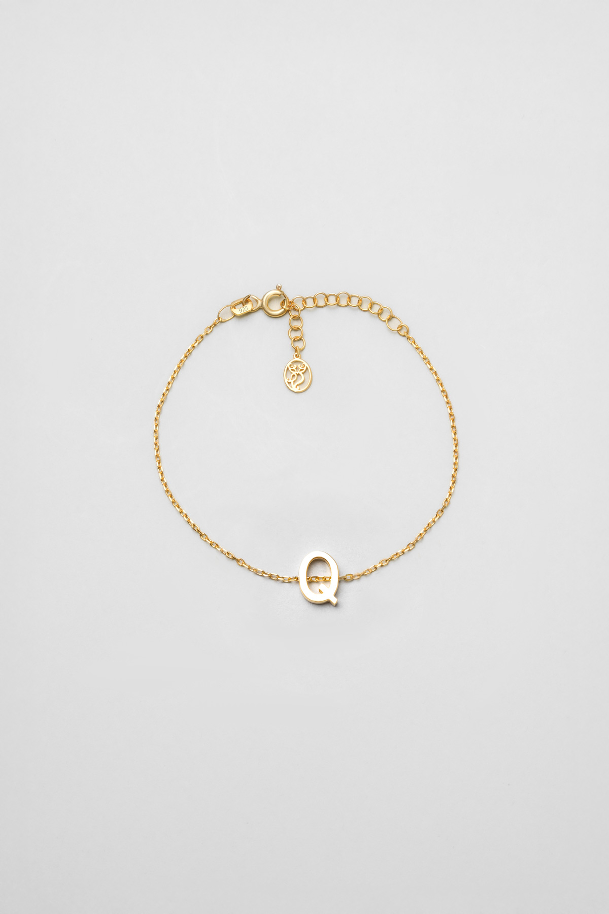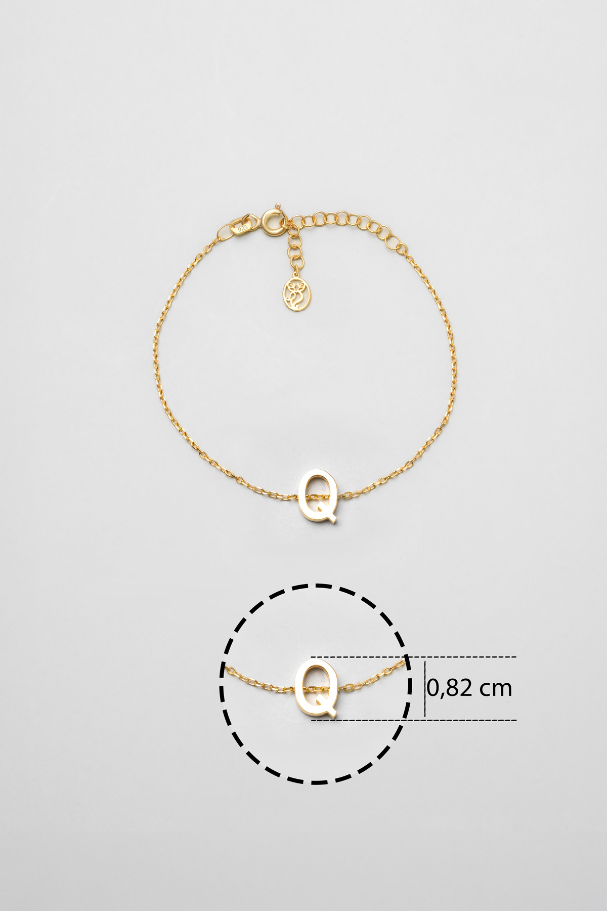 My Story Q Harfi 18 Ayar Sarı Altın Kaplama 18 Cm Gümüş Bileklik
