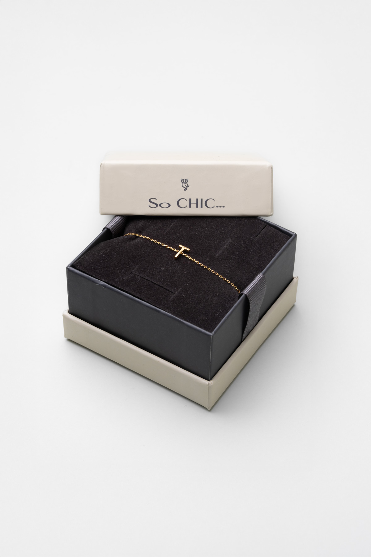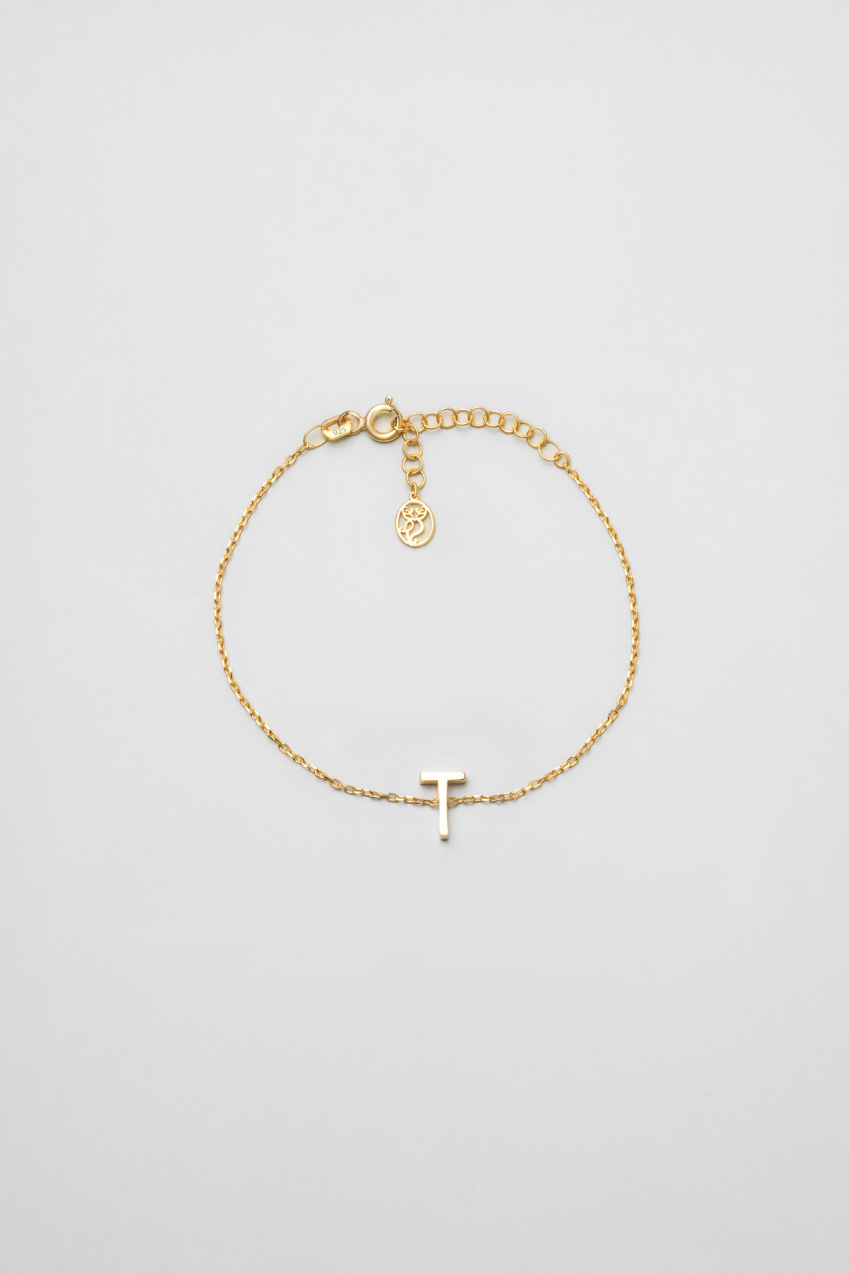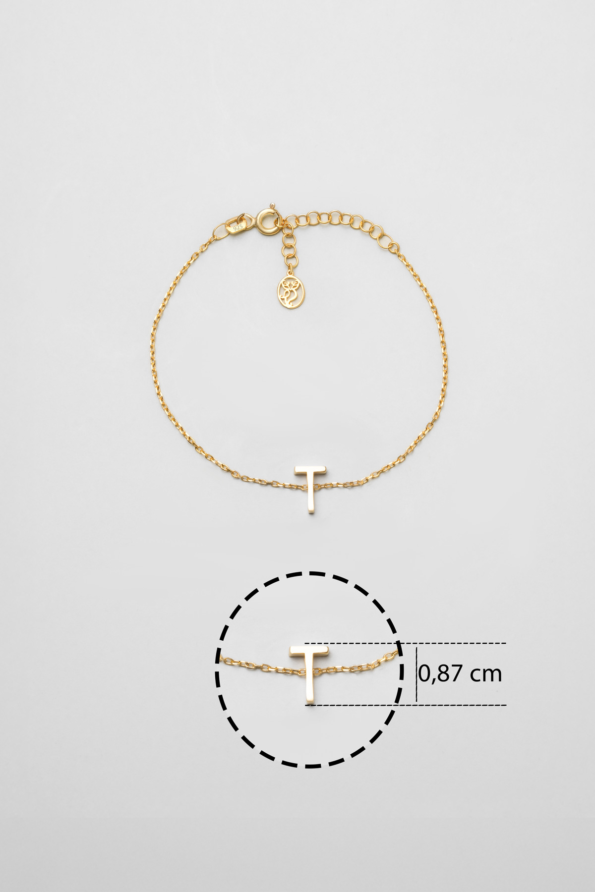 My Story T Harfi 18 Ayar Sarı Altın Kaplama 18 Cm Gümüş Bileklik