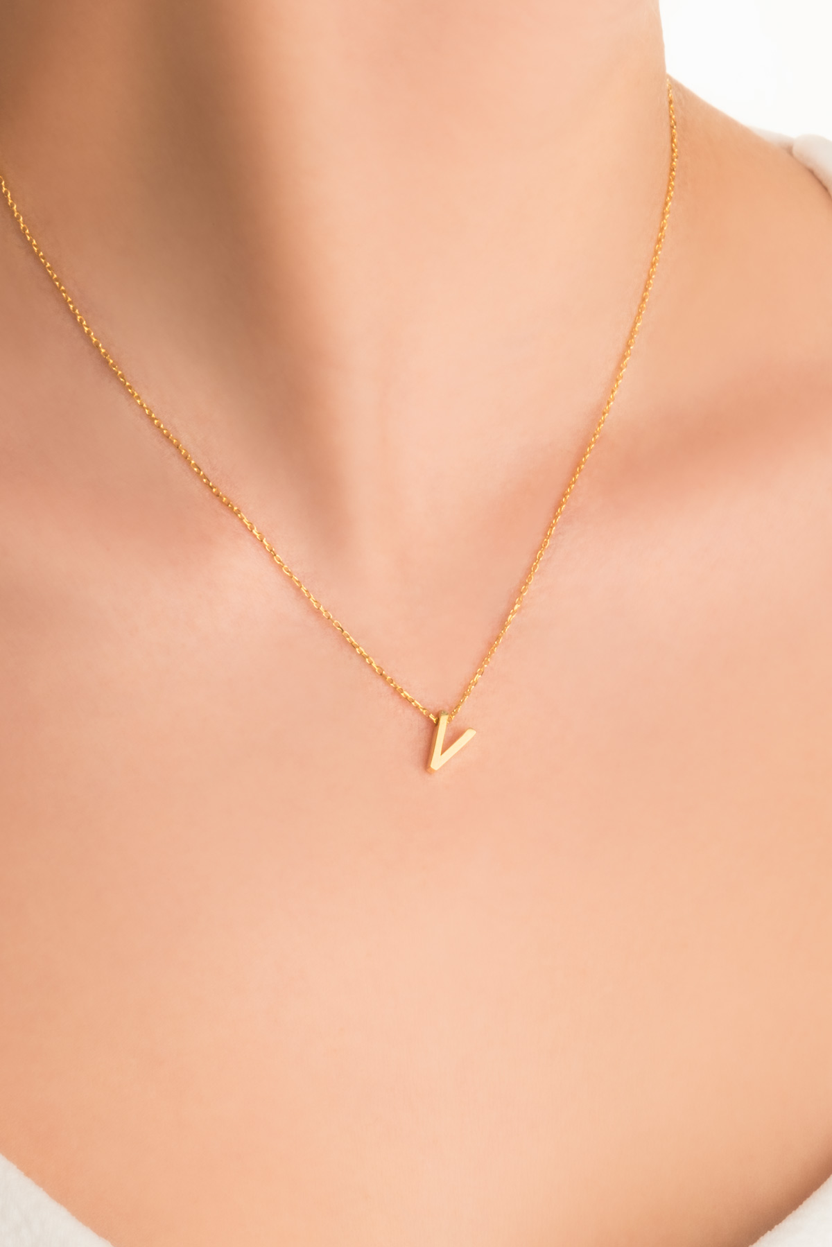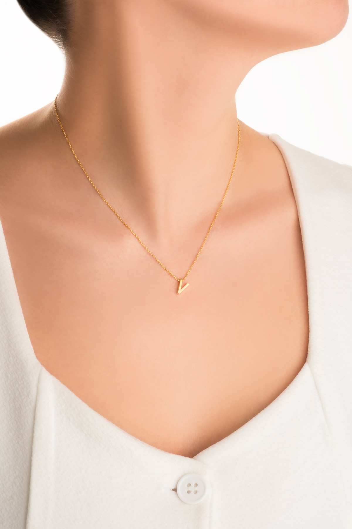 My Story V Harfi 18 Ayar Sarı Altın Kaplama 45 Cm Gümüş Kolye