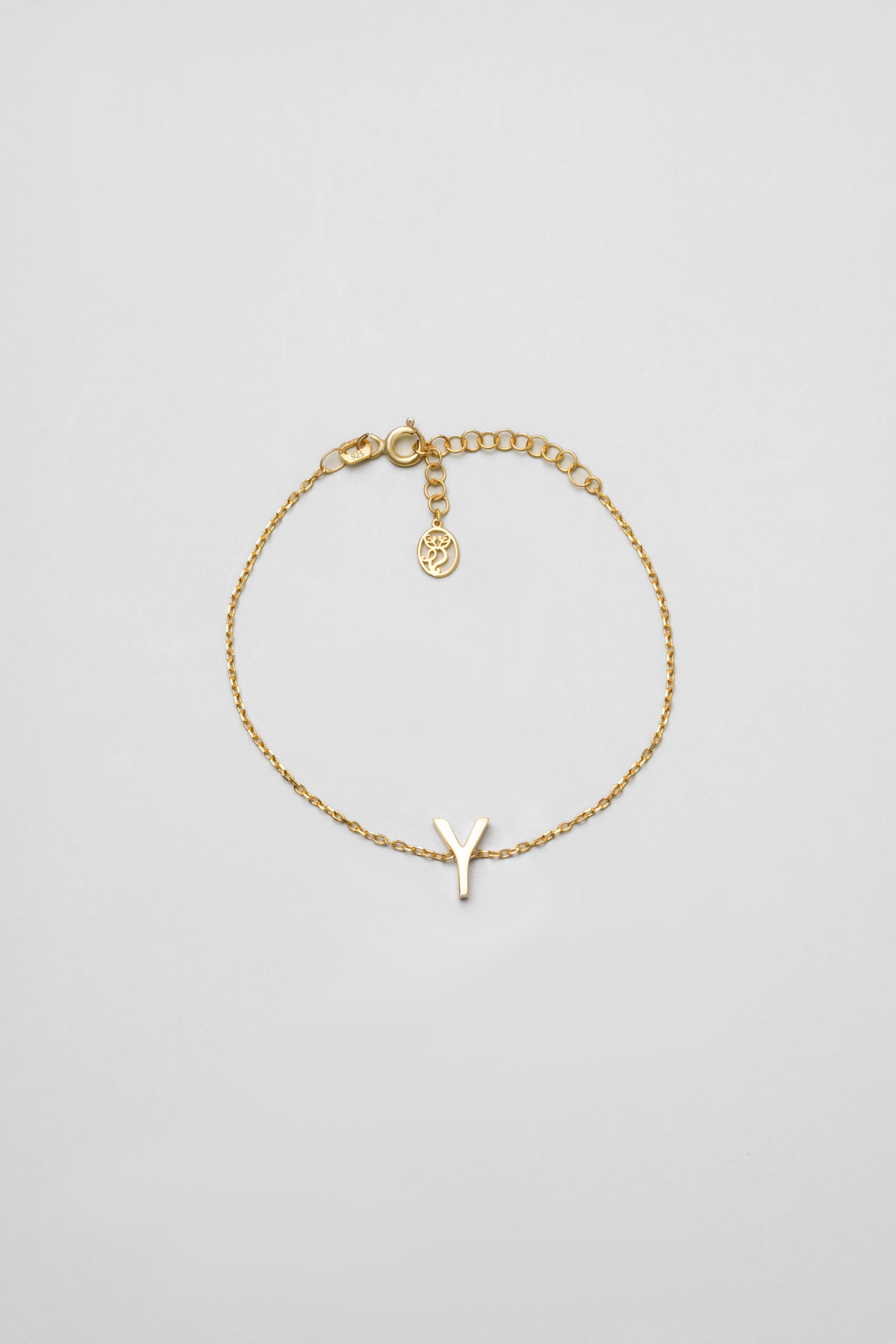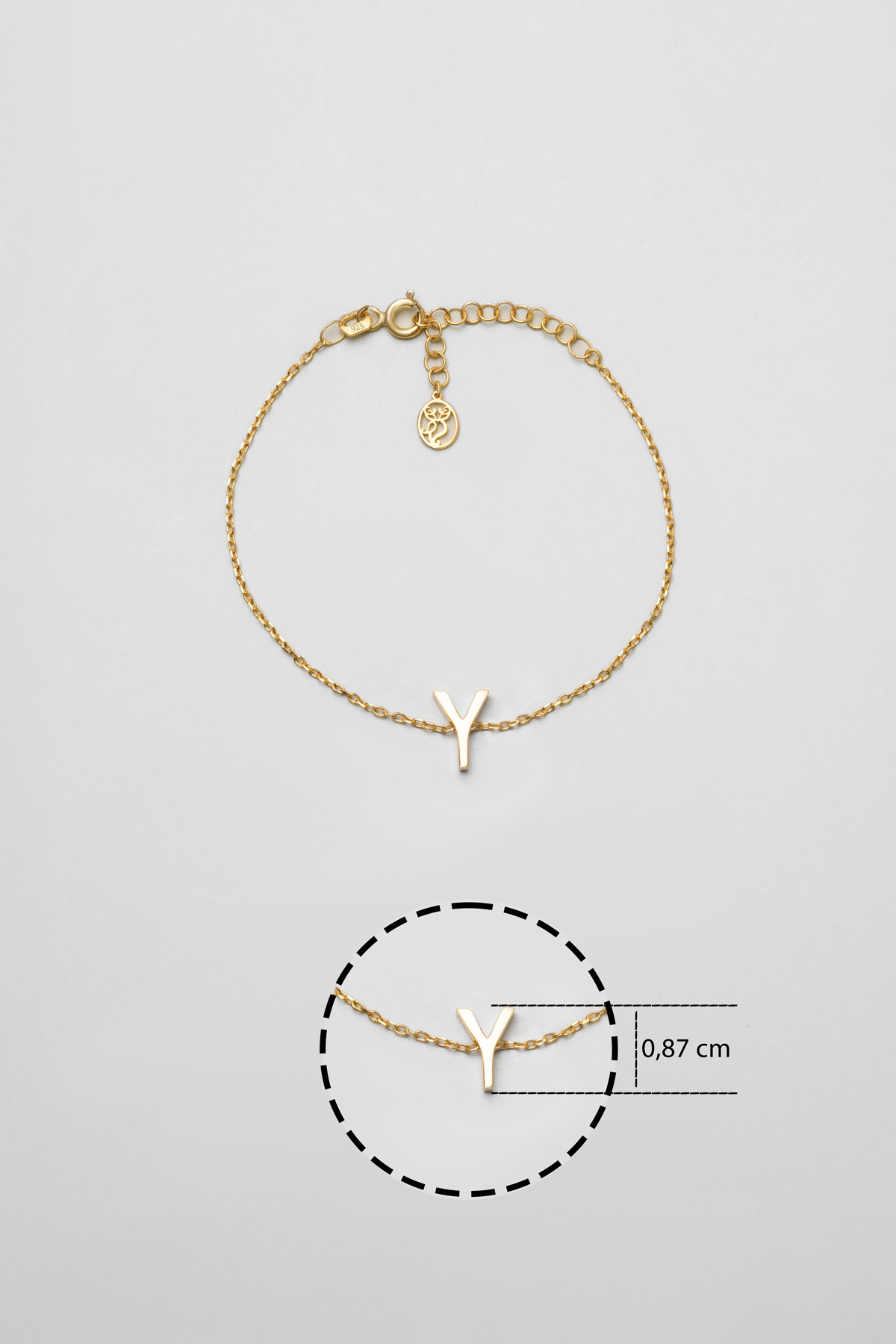My Story Y Harfi 18 Ayar Sarı Altın Kaplama 18 Cm Gümüş Bileklik