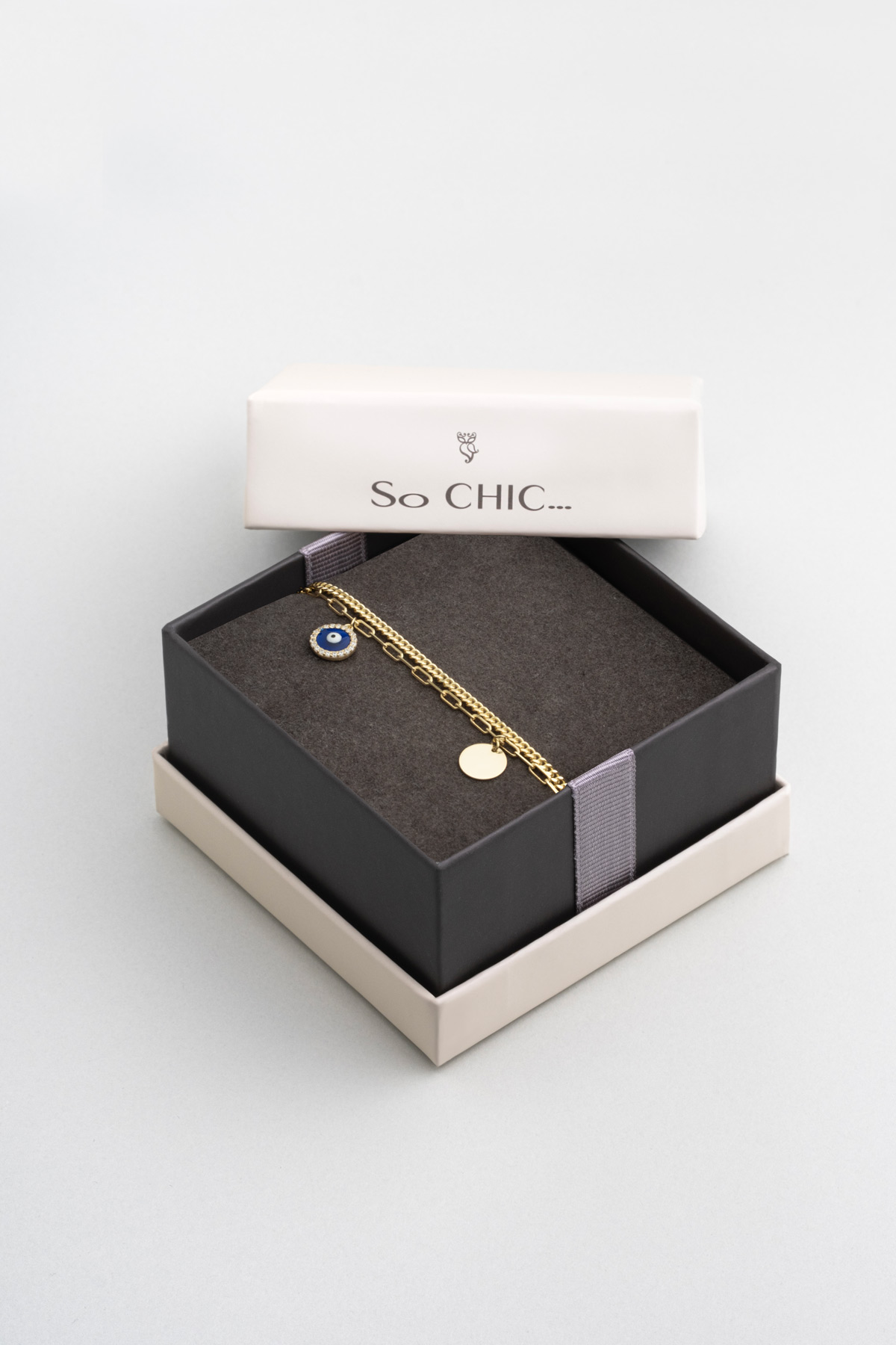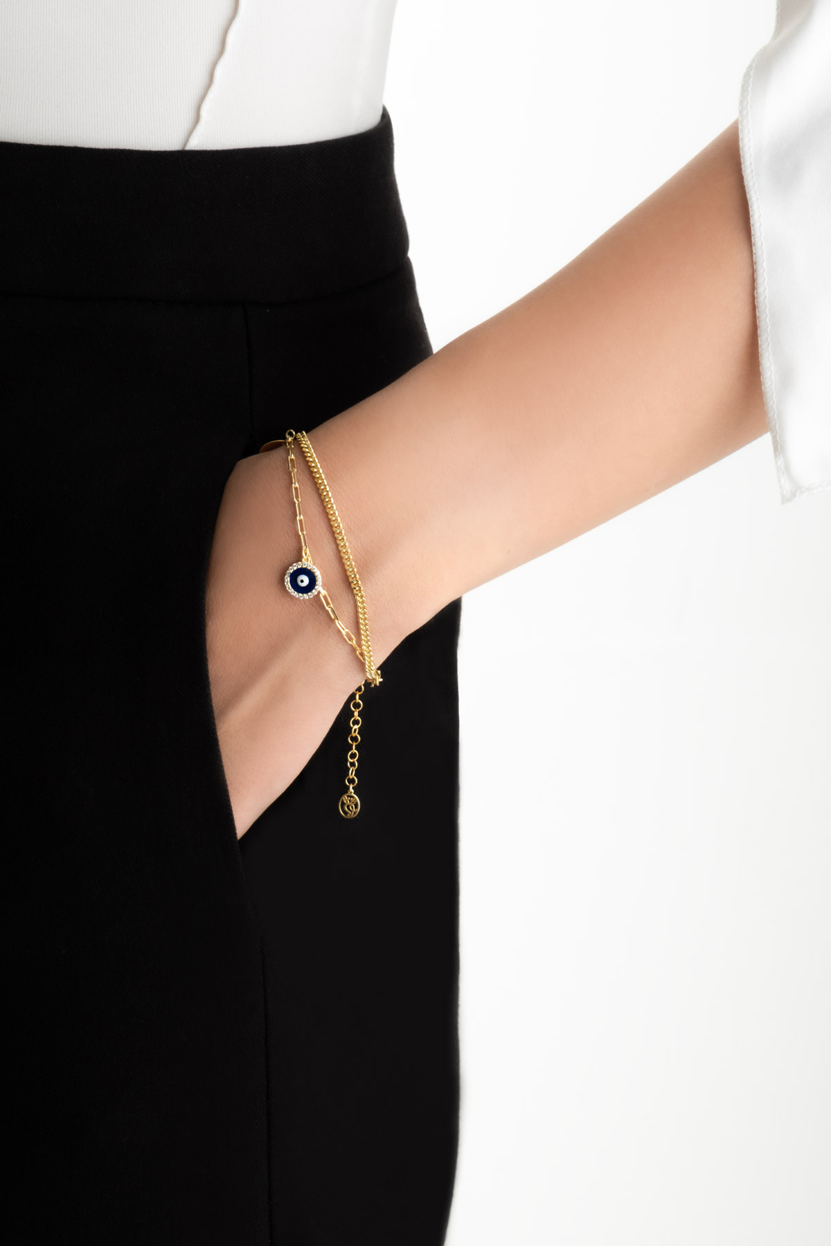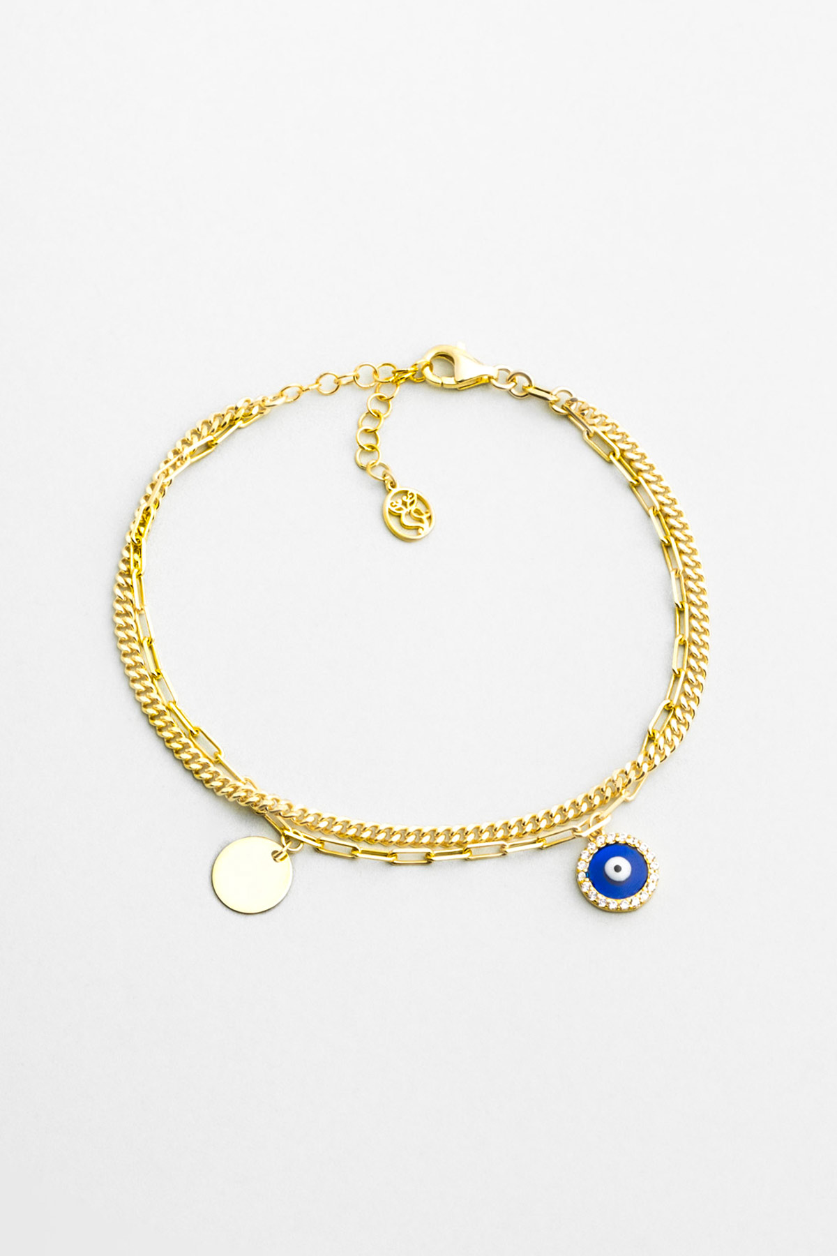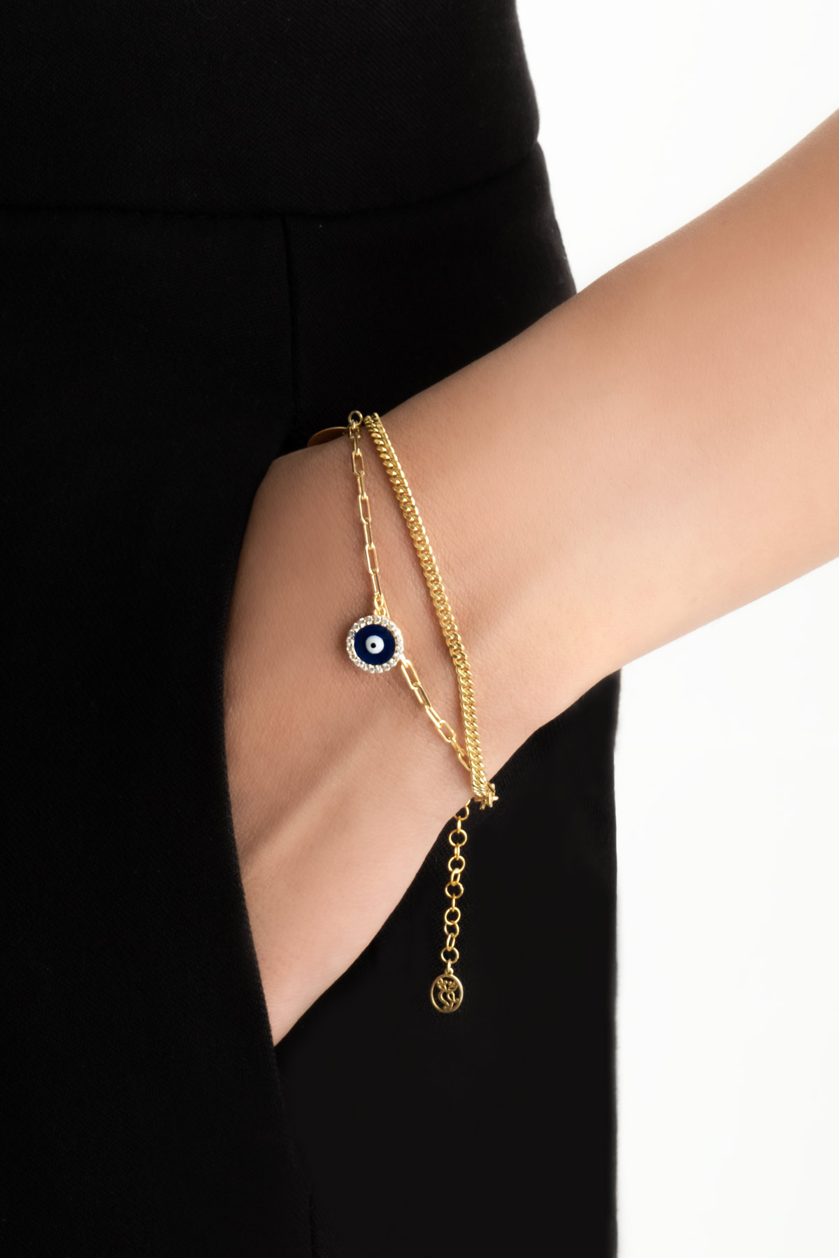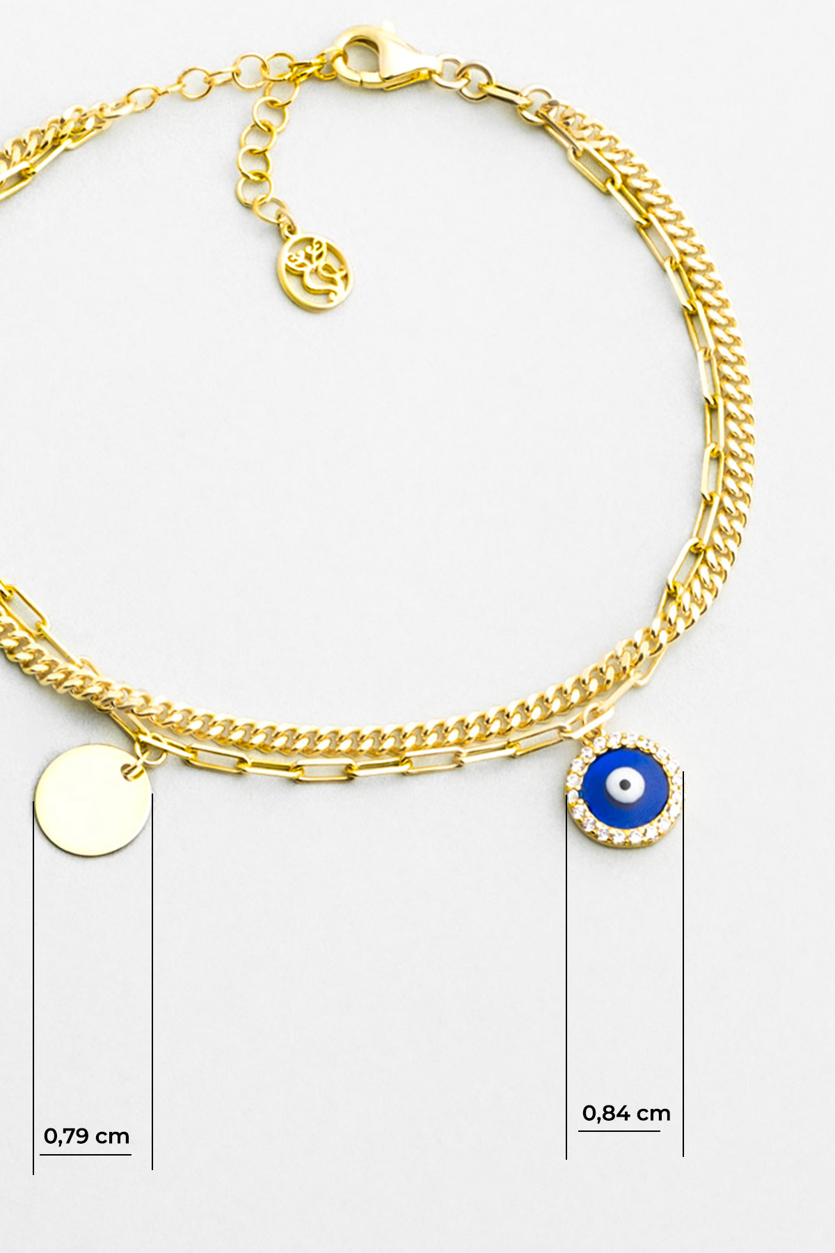 Nazar Figürlü 18 Ayar Sarı Altın Kaplama 19 Cm Gümüş Minimal Bileklik