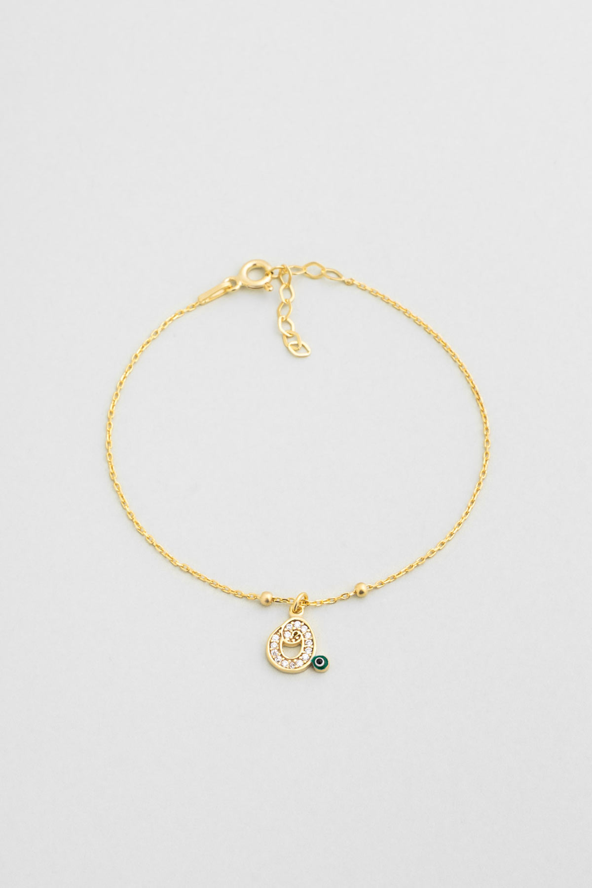 O Harfi 18 Ayar Sarı Altın Kaplama 19 Cm Gümüş Nazar Bileklik