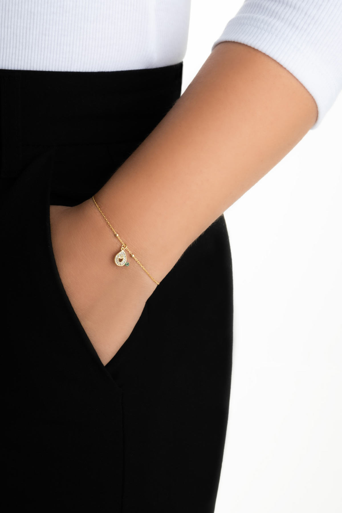 O Harfi 18 Ayar Sarı Altın Kaplama 19 Cm Gümüş Nazar Bileklik