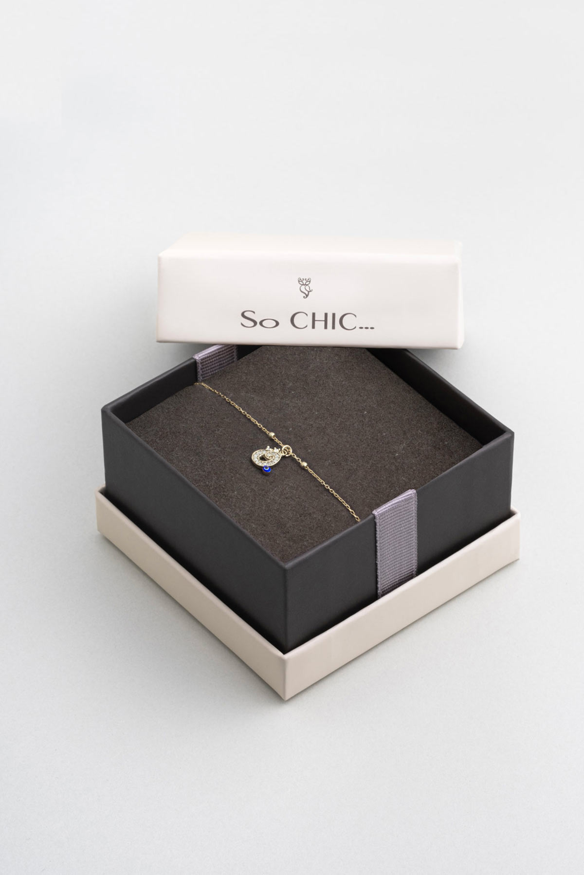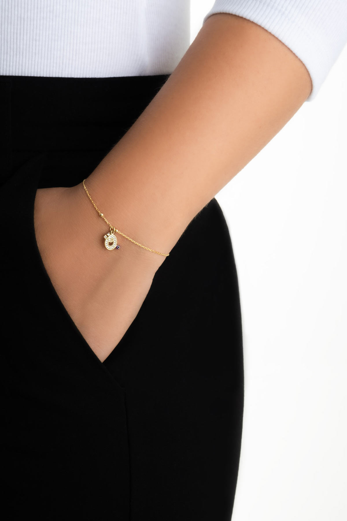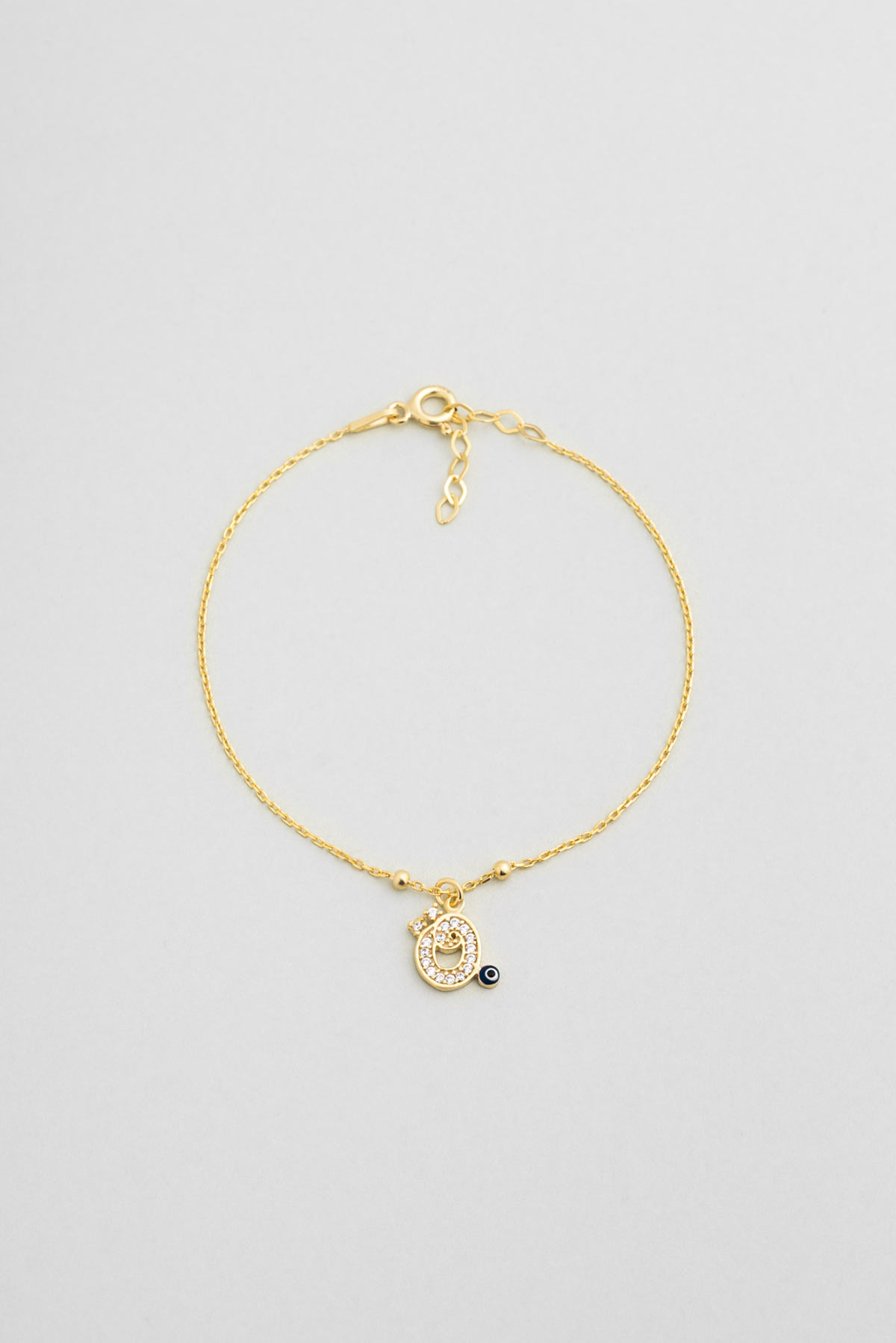Ö Harfi 18 Ayar Sarı Altın Kaplama 19 Cm Gümüş Nazar Bileklik
