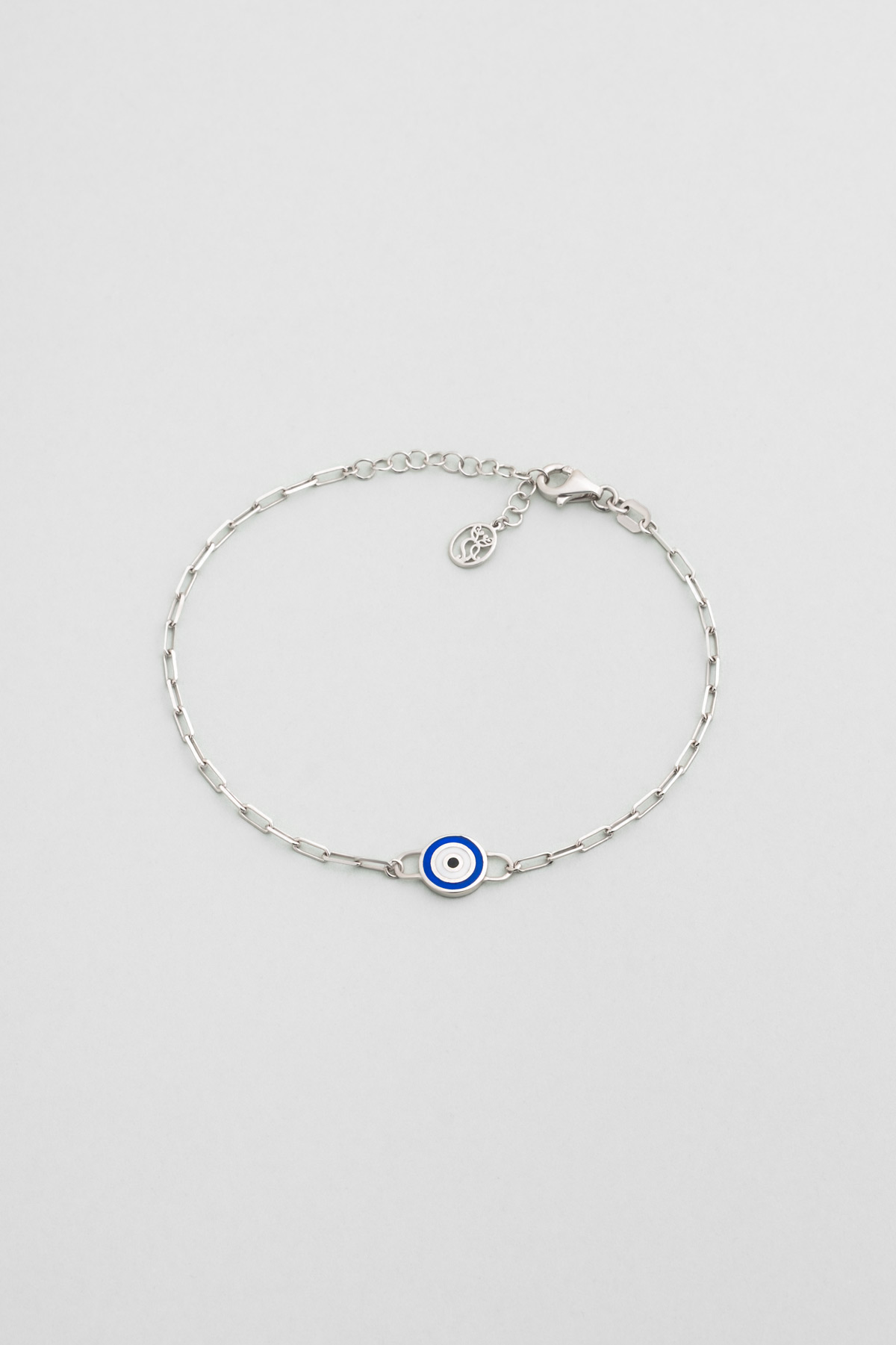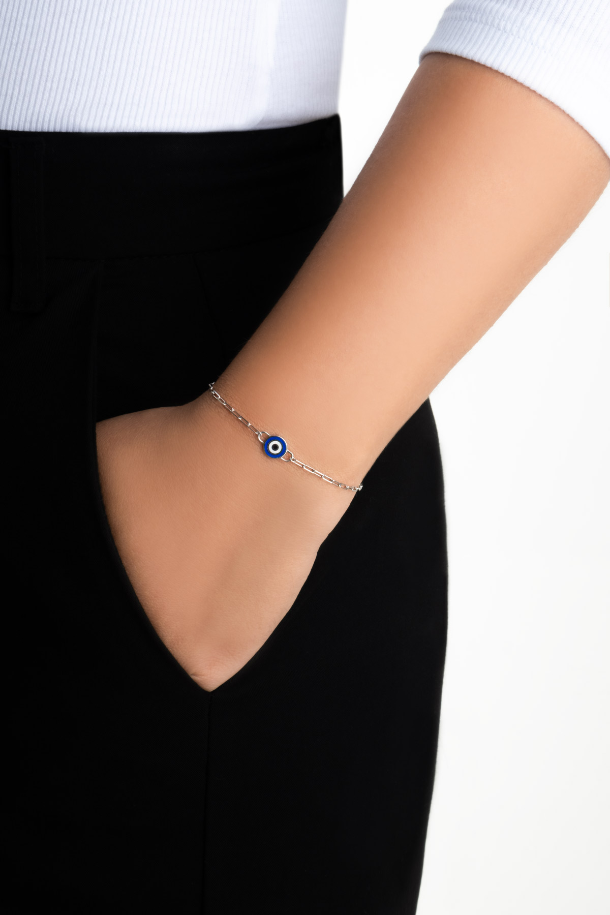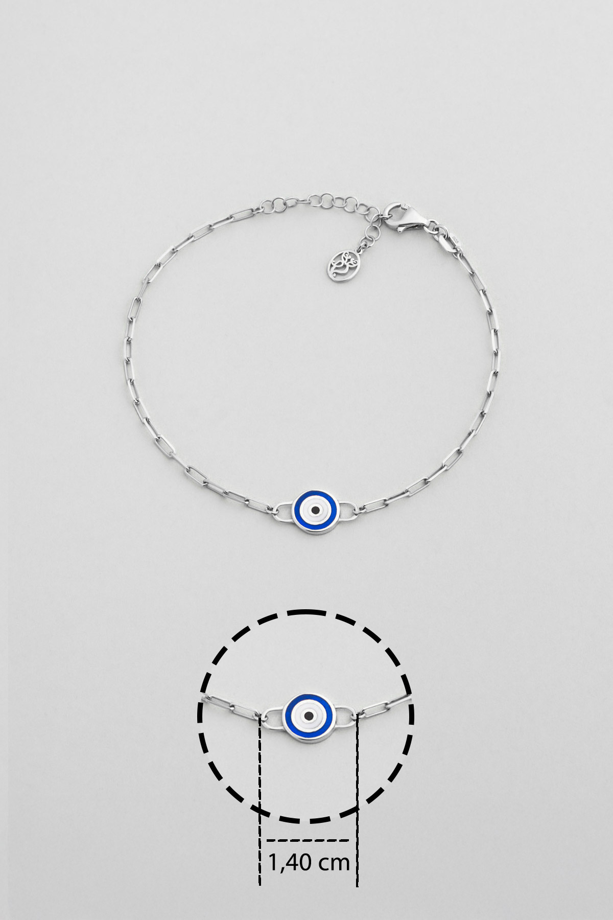 Osiris'in Gözü Çift Taraflı 18 Ayar Beyaz Altın Kaplama 19 Cm Gümüş Nazar Bileklik
