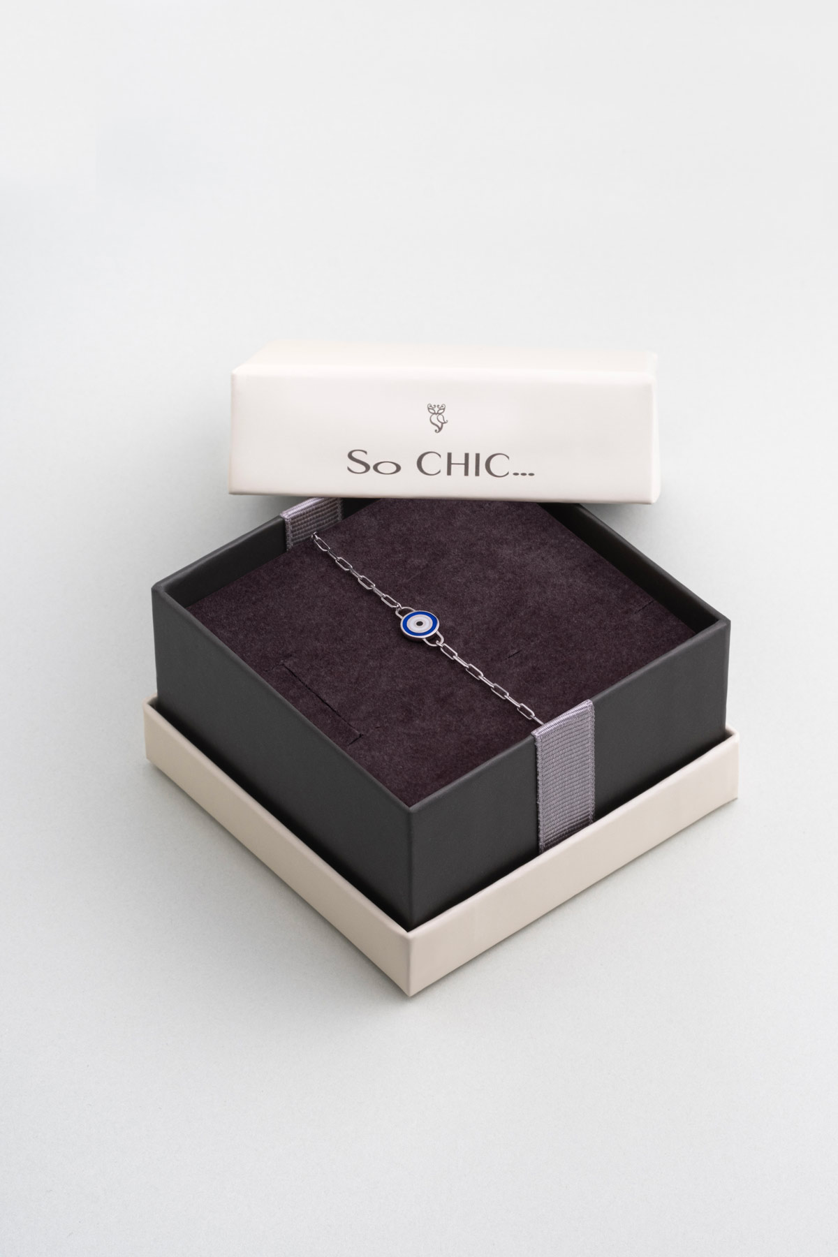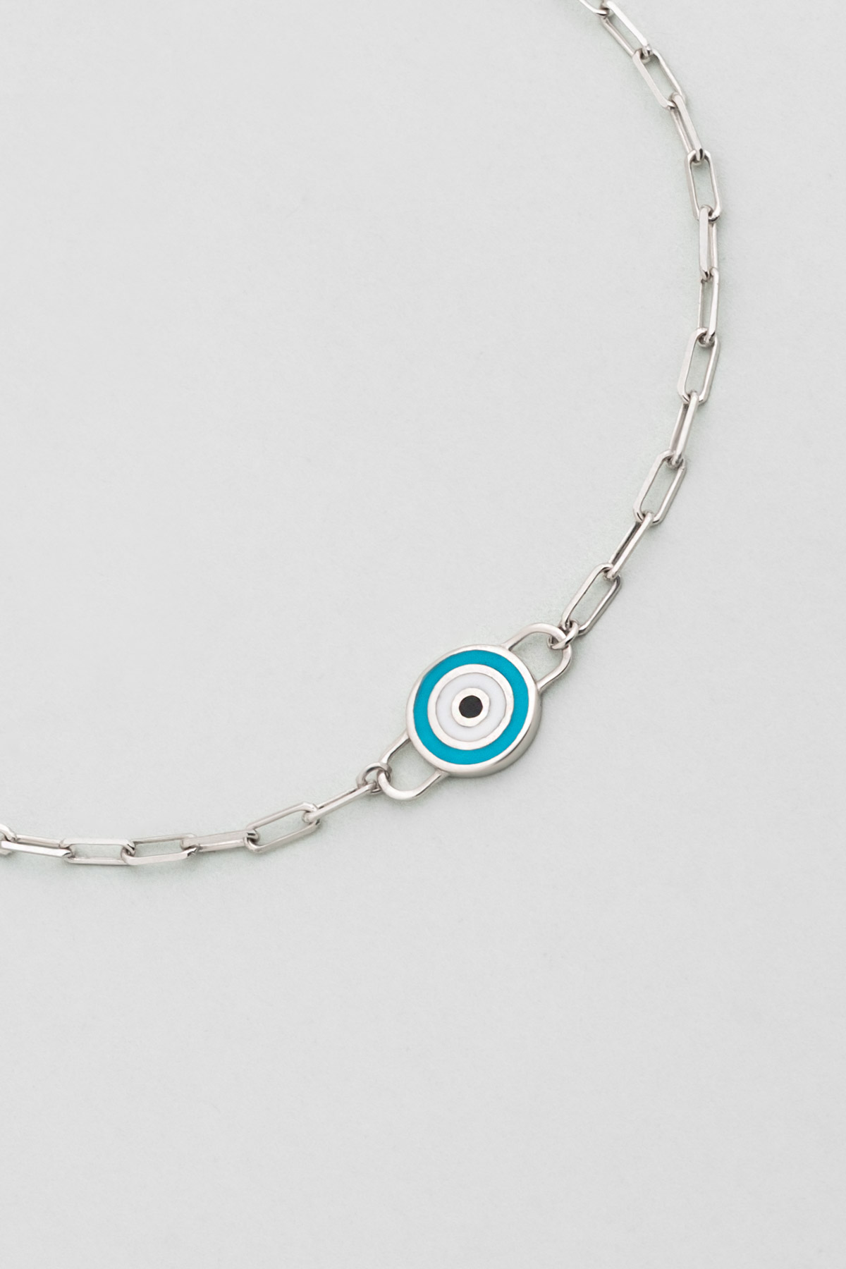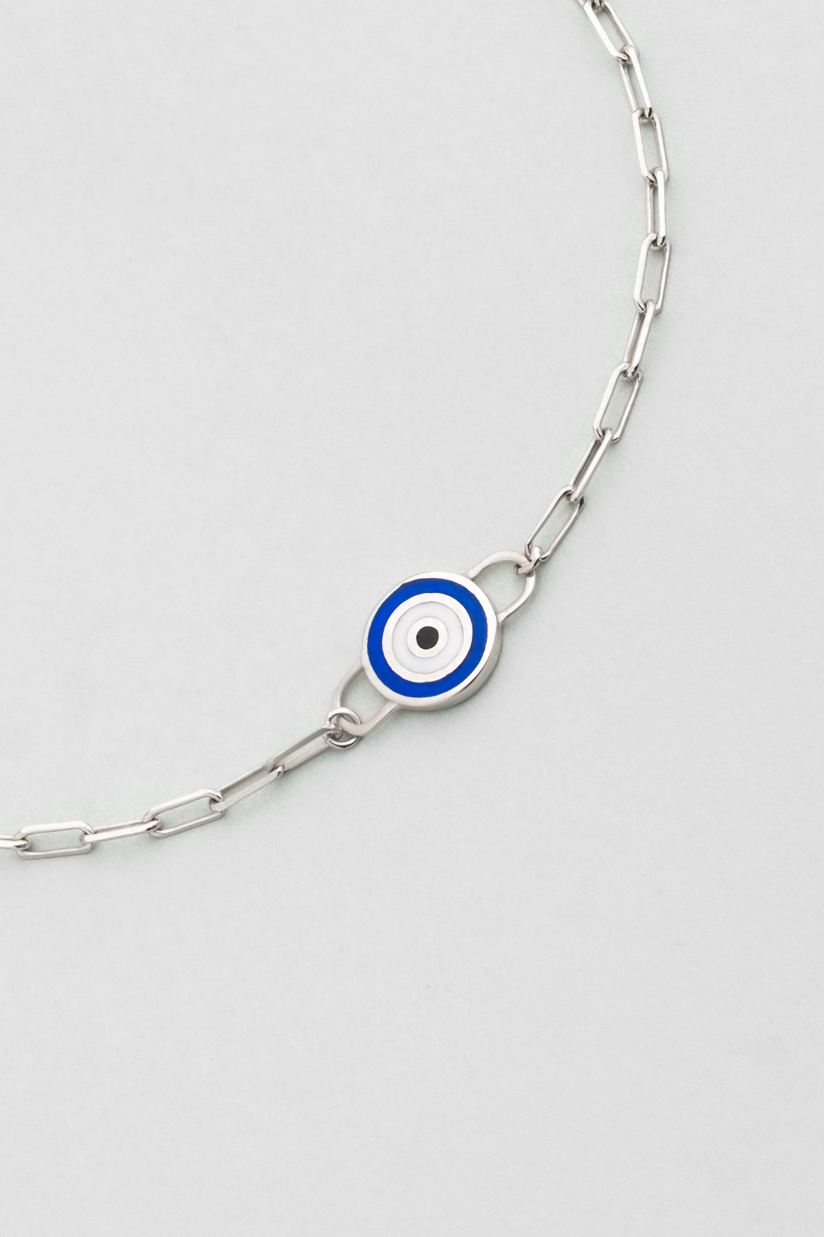 Osiris'in Gözü Çift Taraflı 18 Ayar Beyaz Altın Kaplama 19 Cm Gümüş Nazar Bileklik