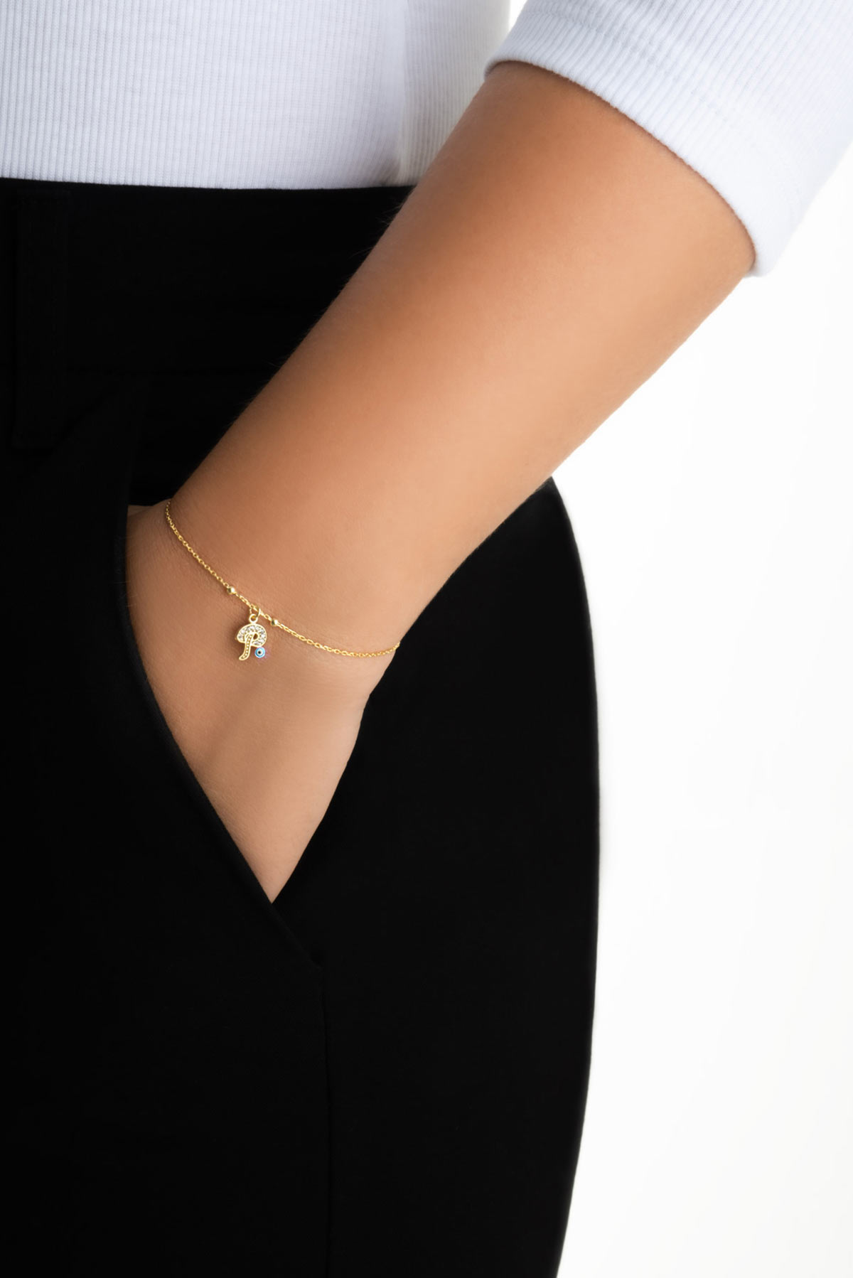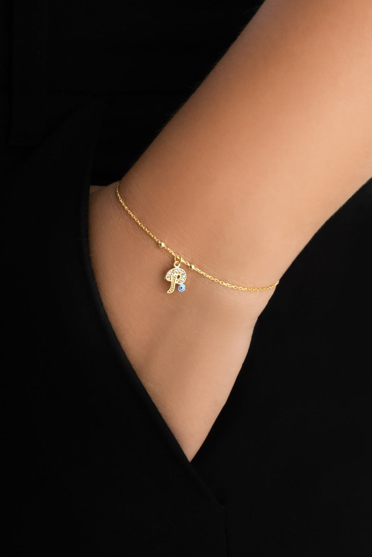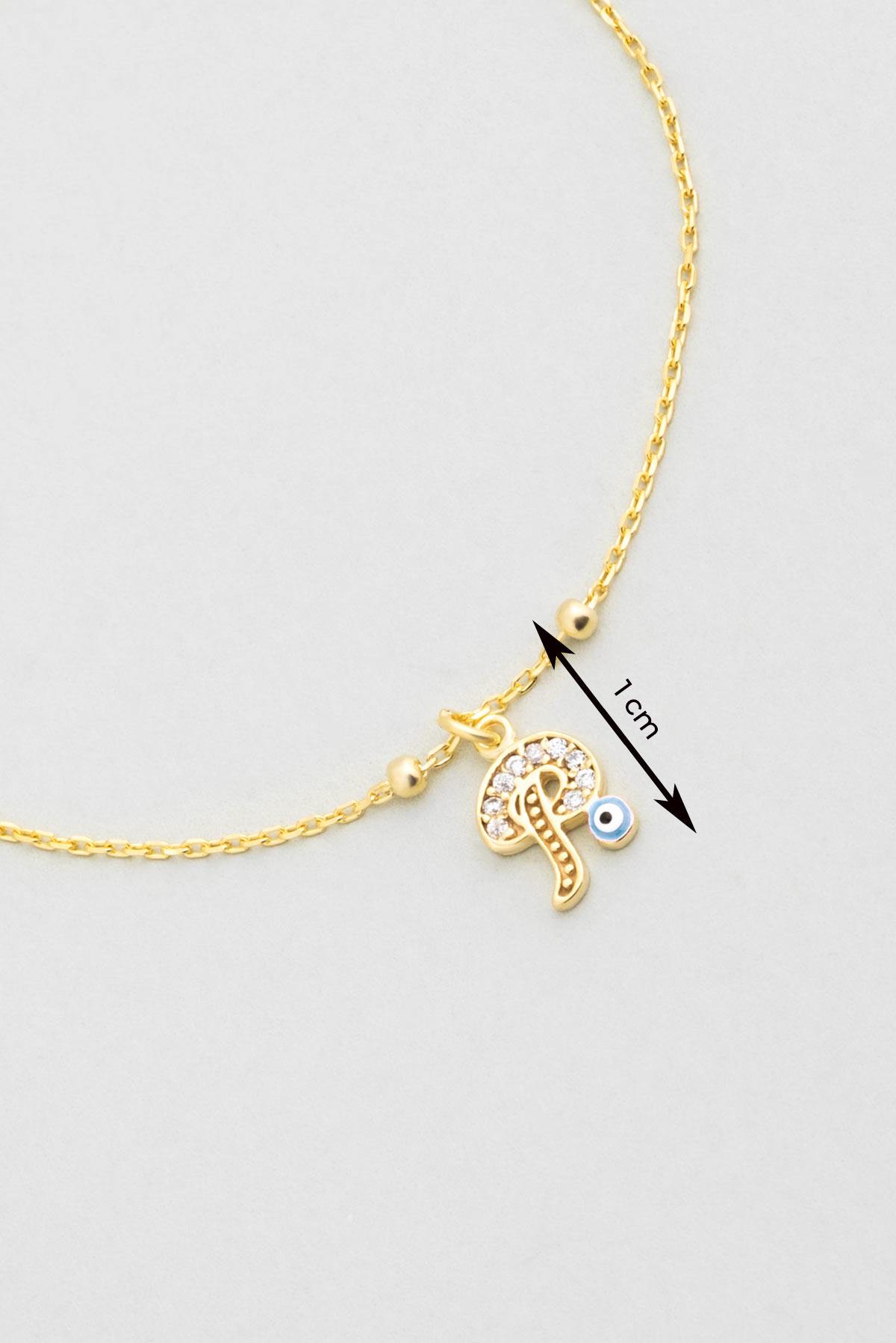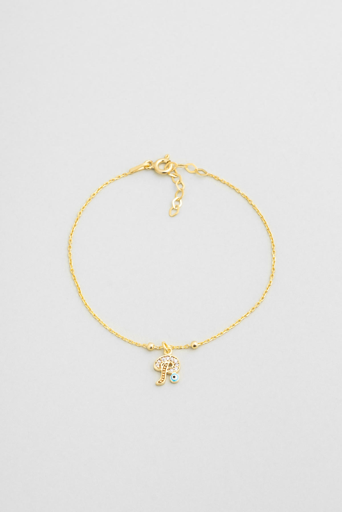 P Harfi 18 Ayar Sarı Altın Kaplama 19 Cm Gümüş Nazar Bileklik