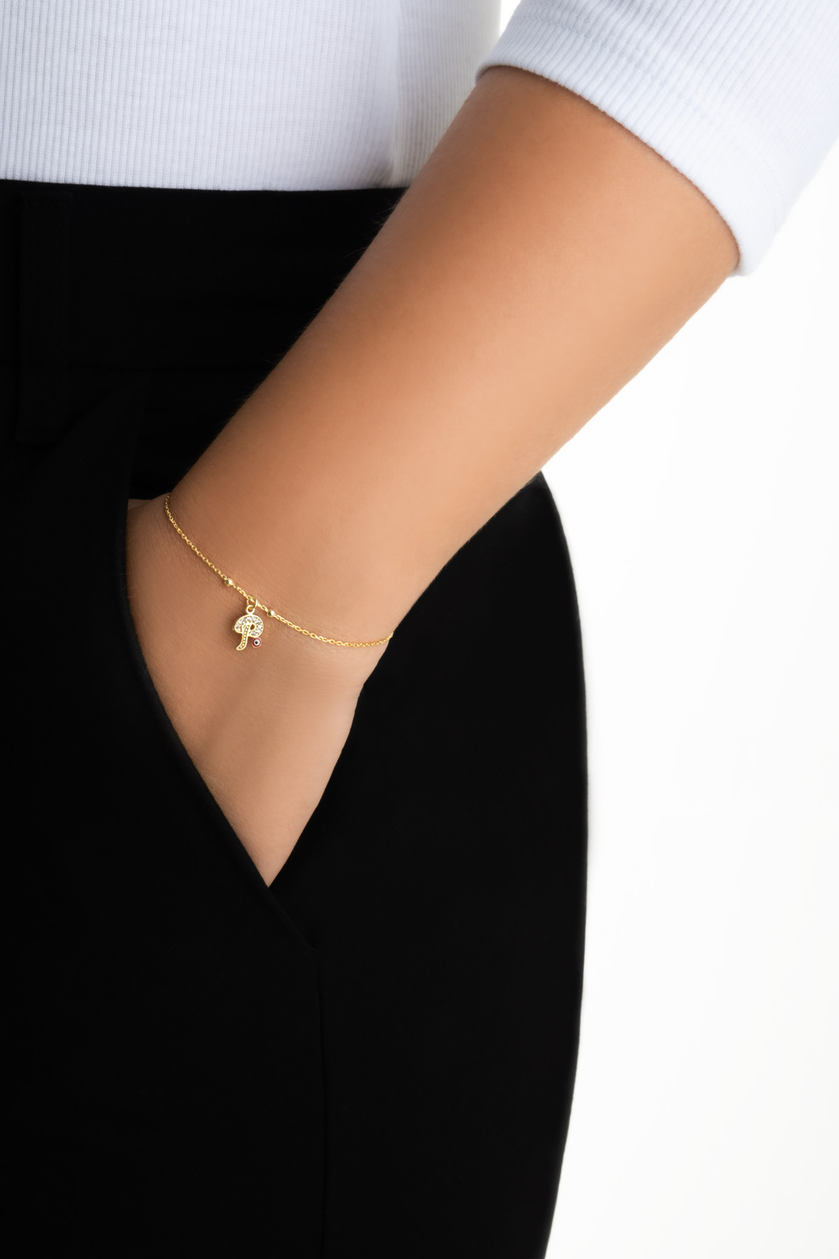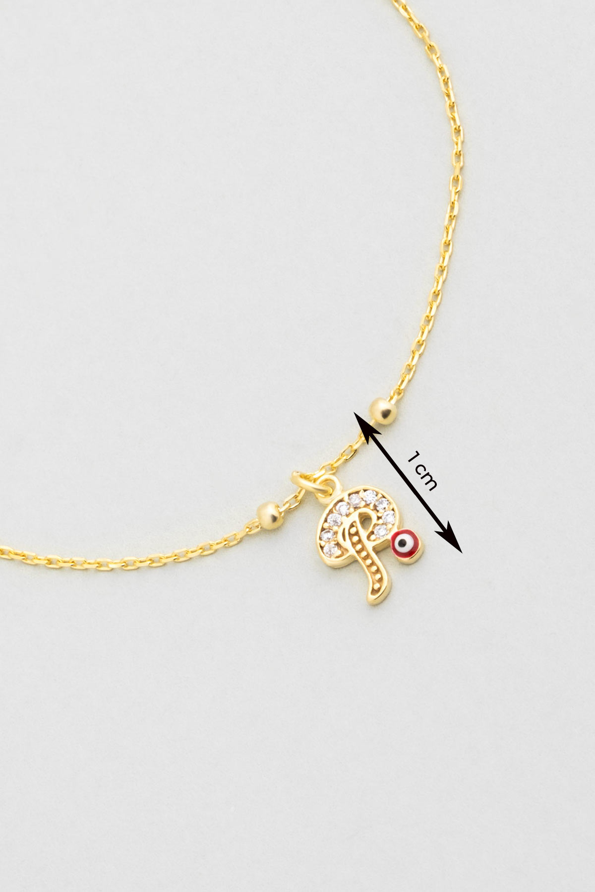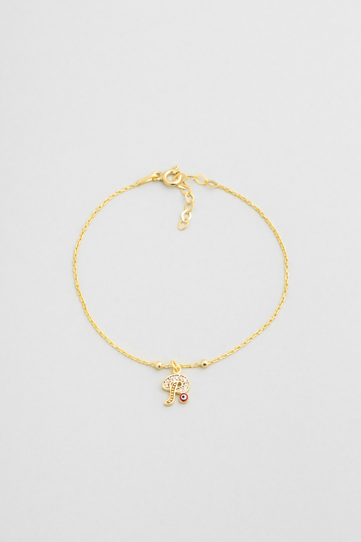 P Harfi 18 Ayar Sarı Altın Kaplama 19 Cm Gümüş Nazar Bileklik