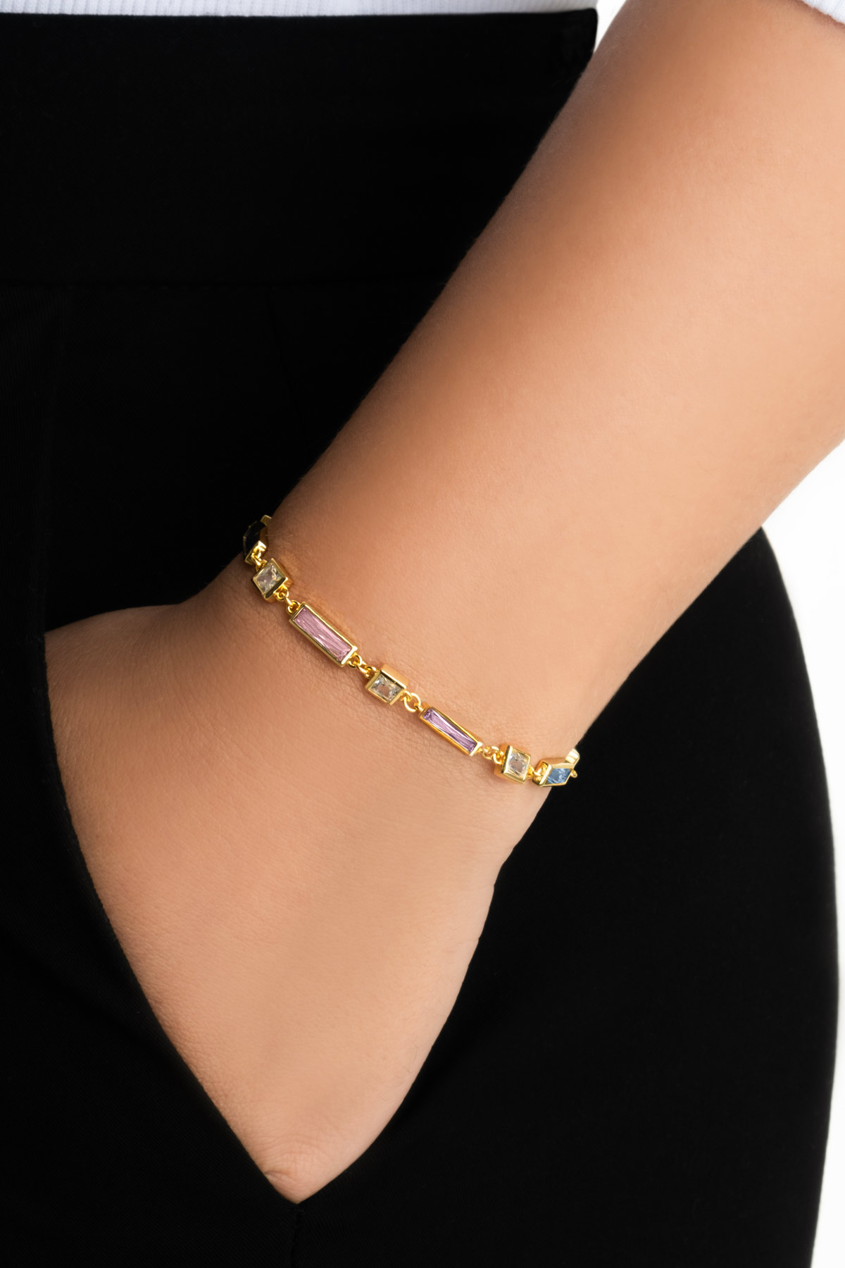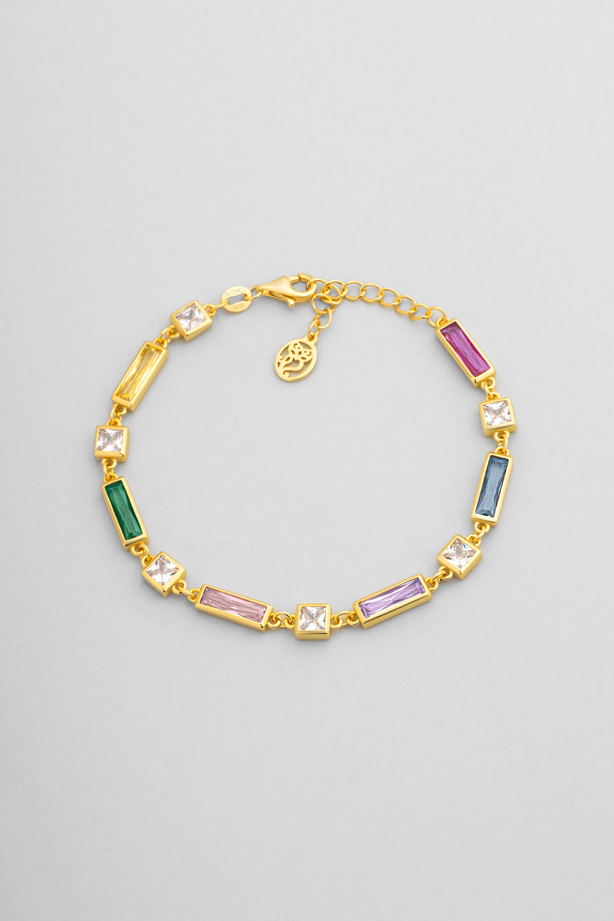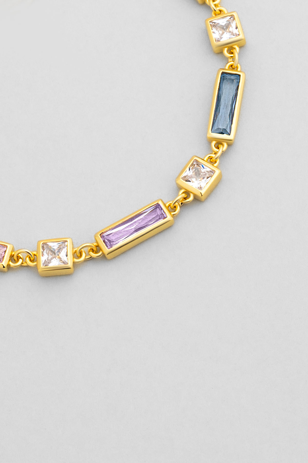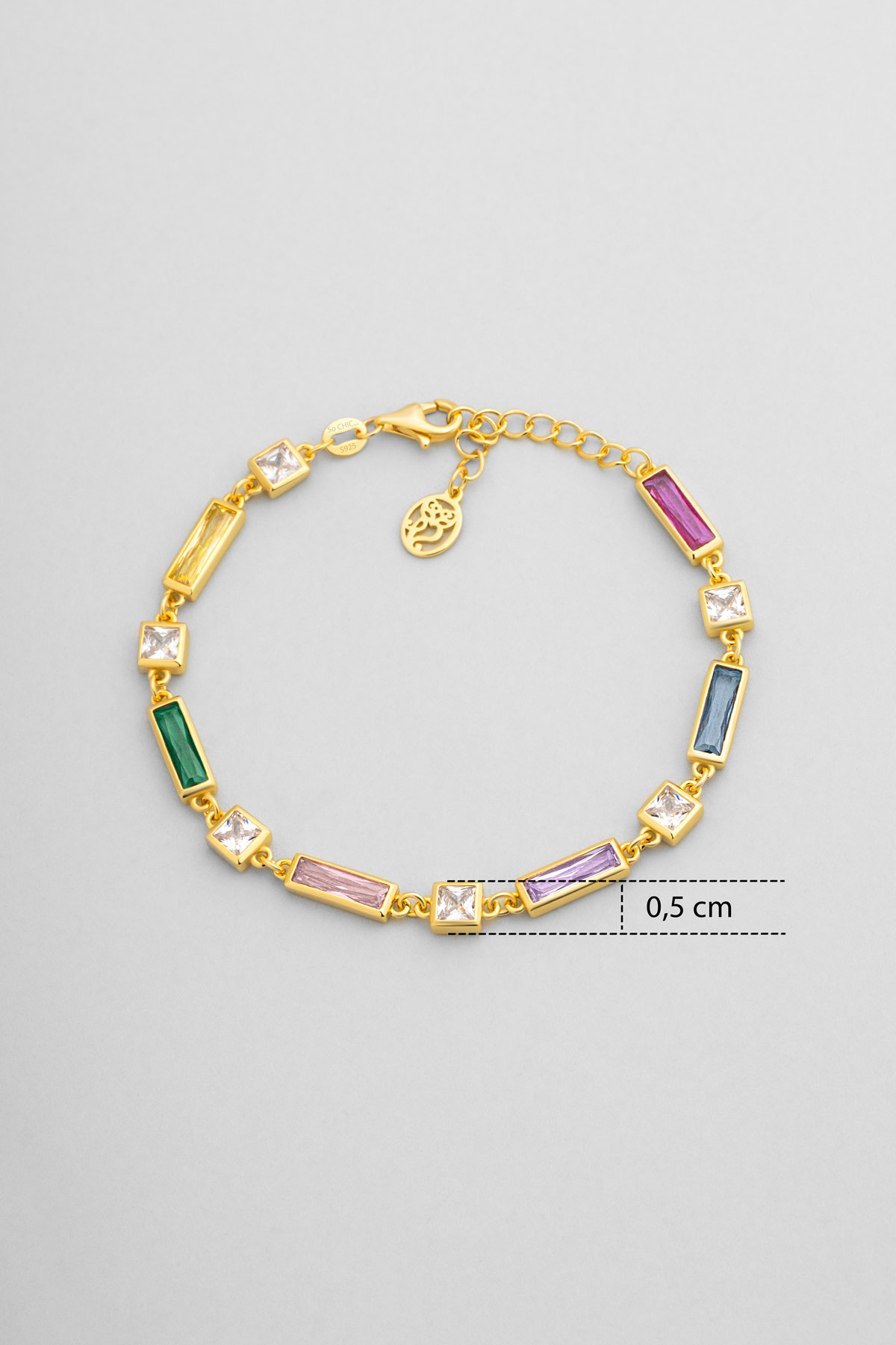 Renkli Baget 18 Ayar Sarı Altın Kaplama 19 Cm Gümüş Minimal Bileklik