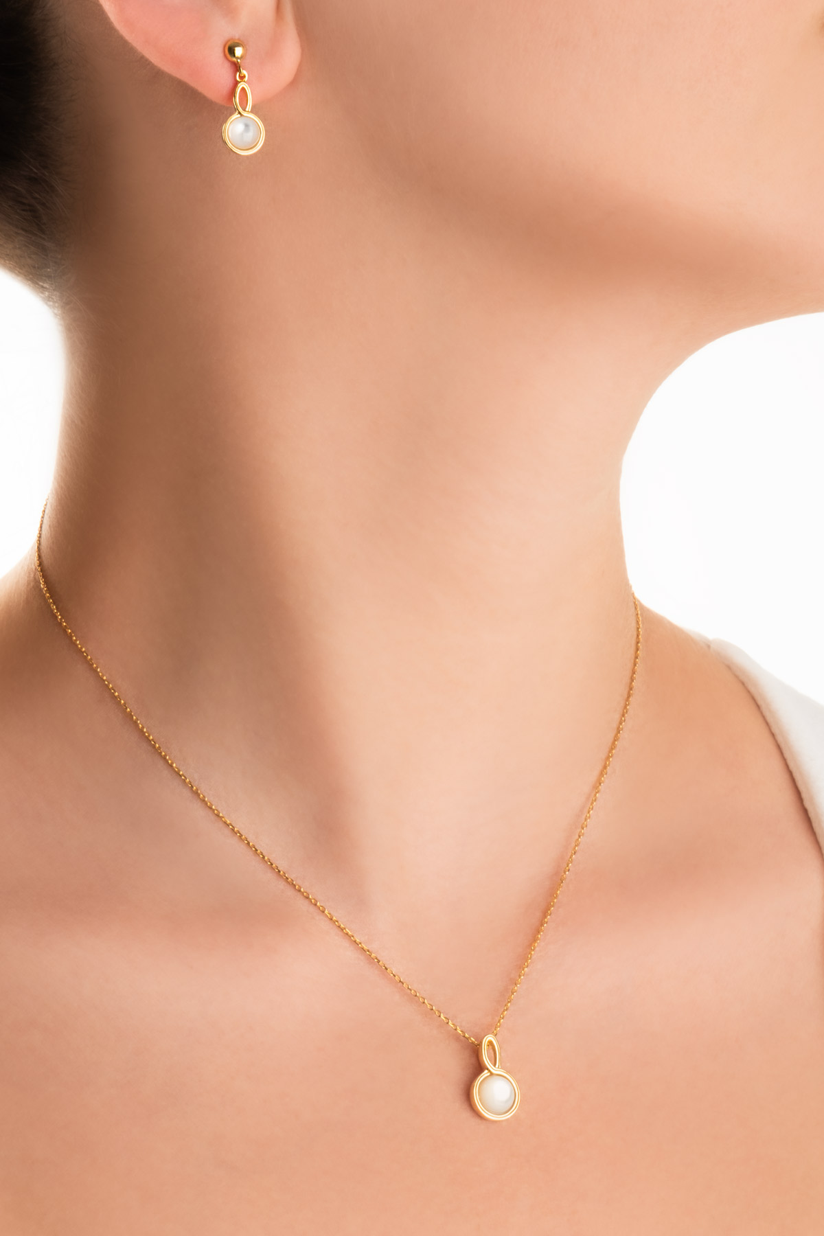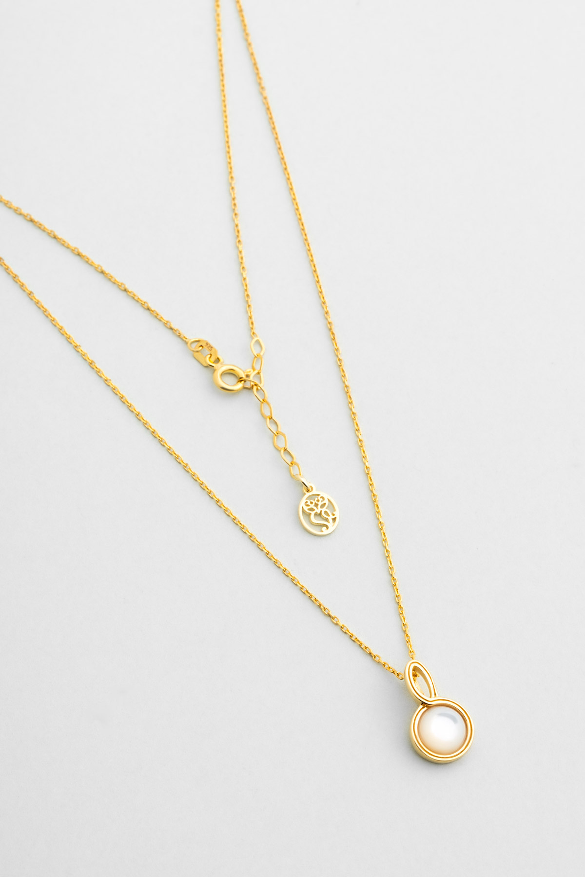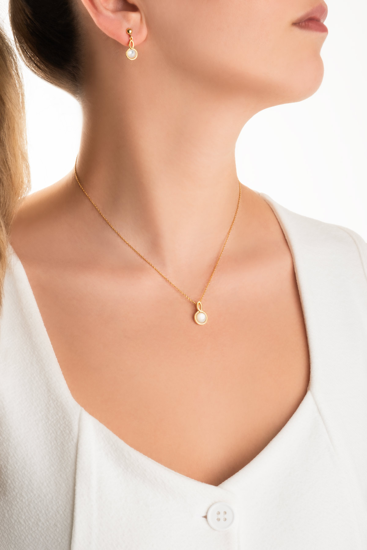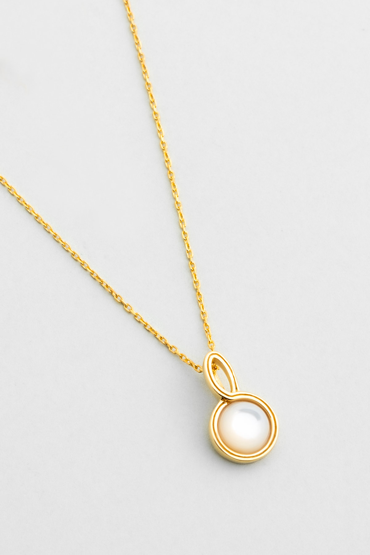 Pembe Kalsedon Taşlı Beyaz Altın Kaplama