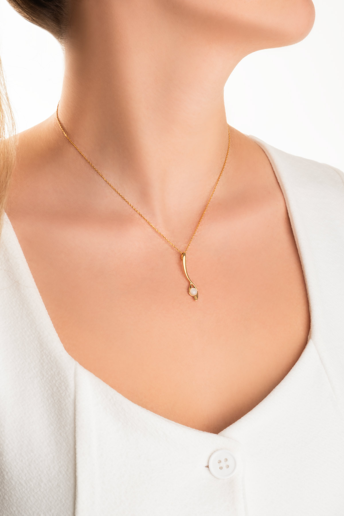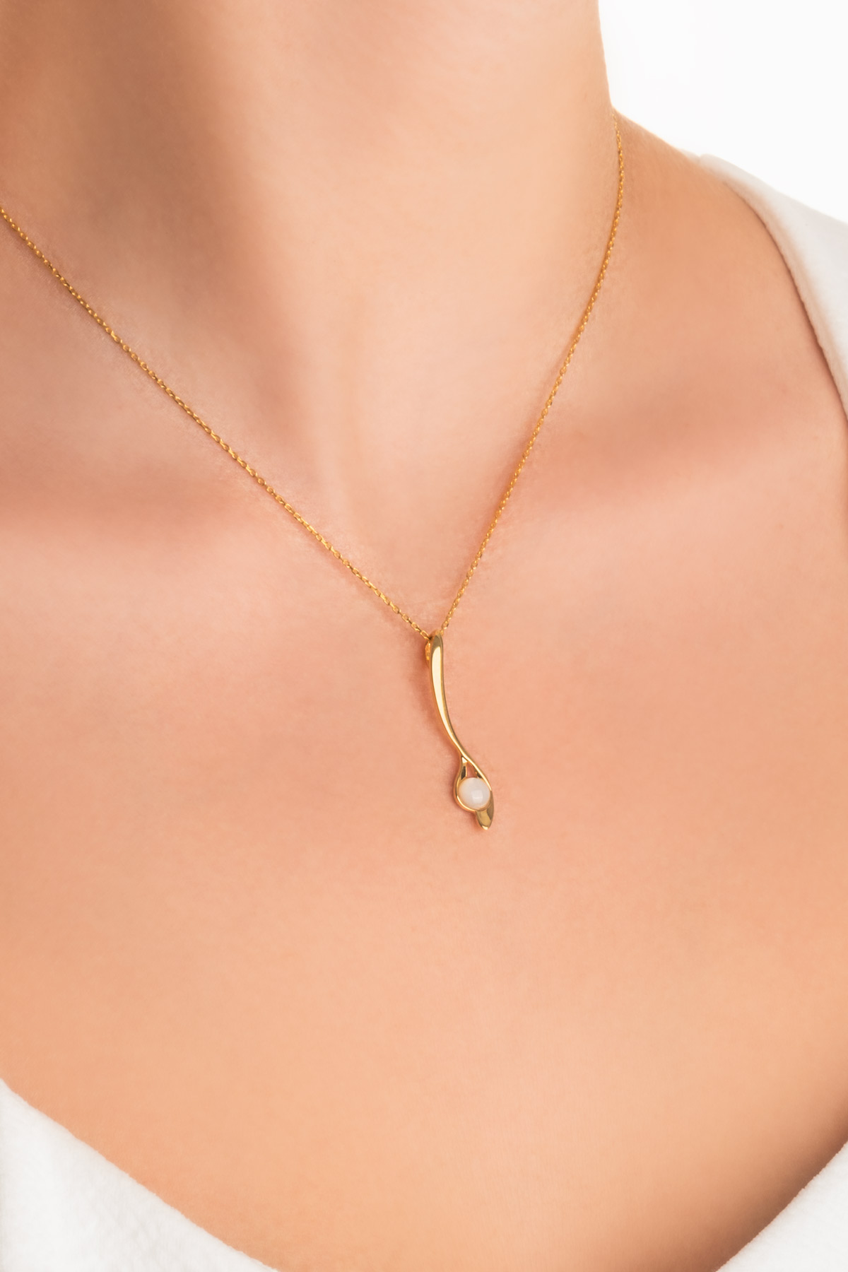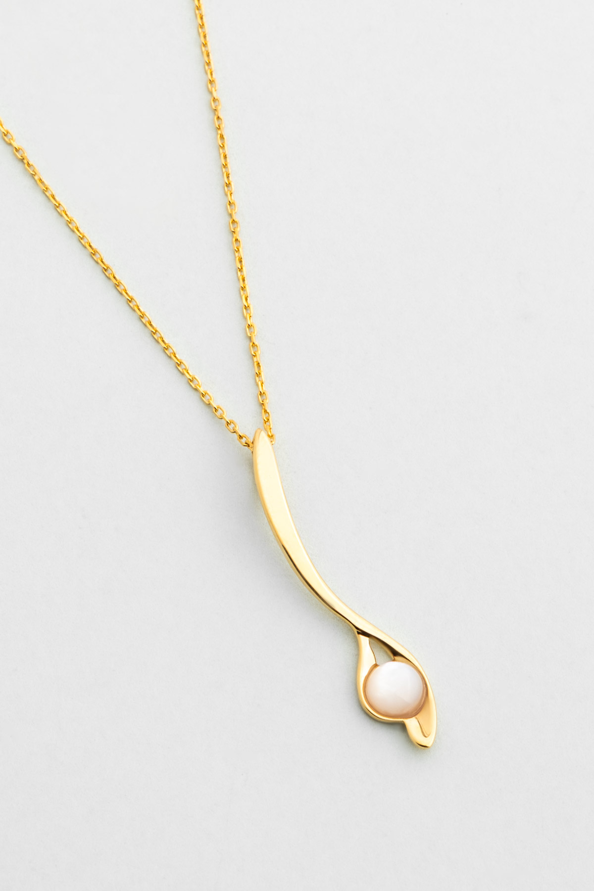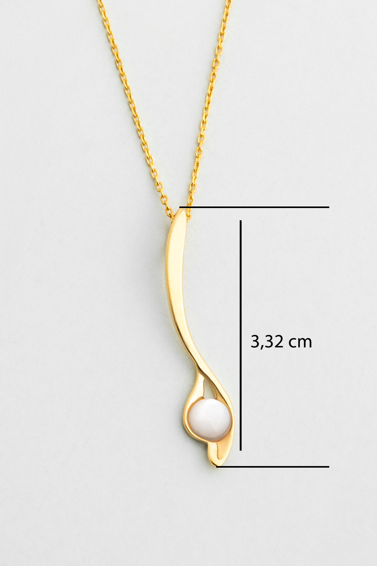 Pembe Kalsedon Taşlı Beyaz Altın Kaplama