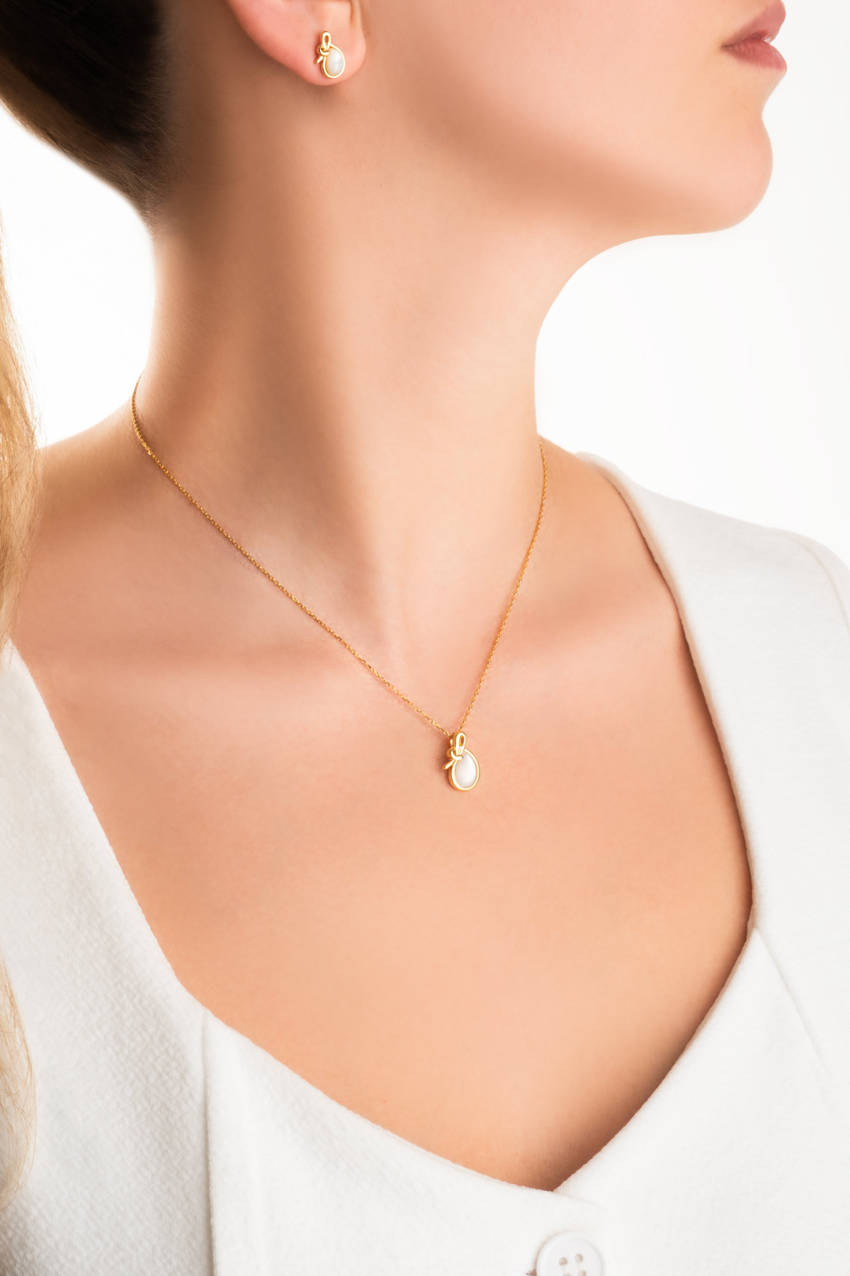 Pembe Kalsedon Taşlı Beyaz Altın Kaplama