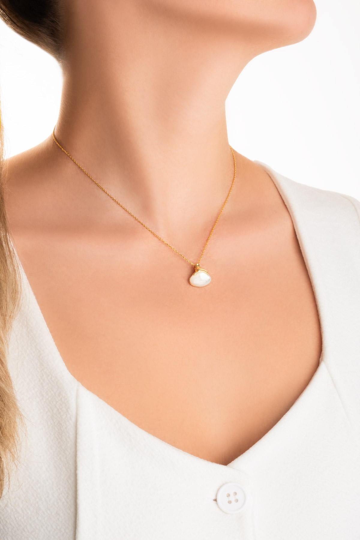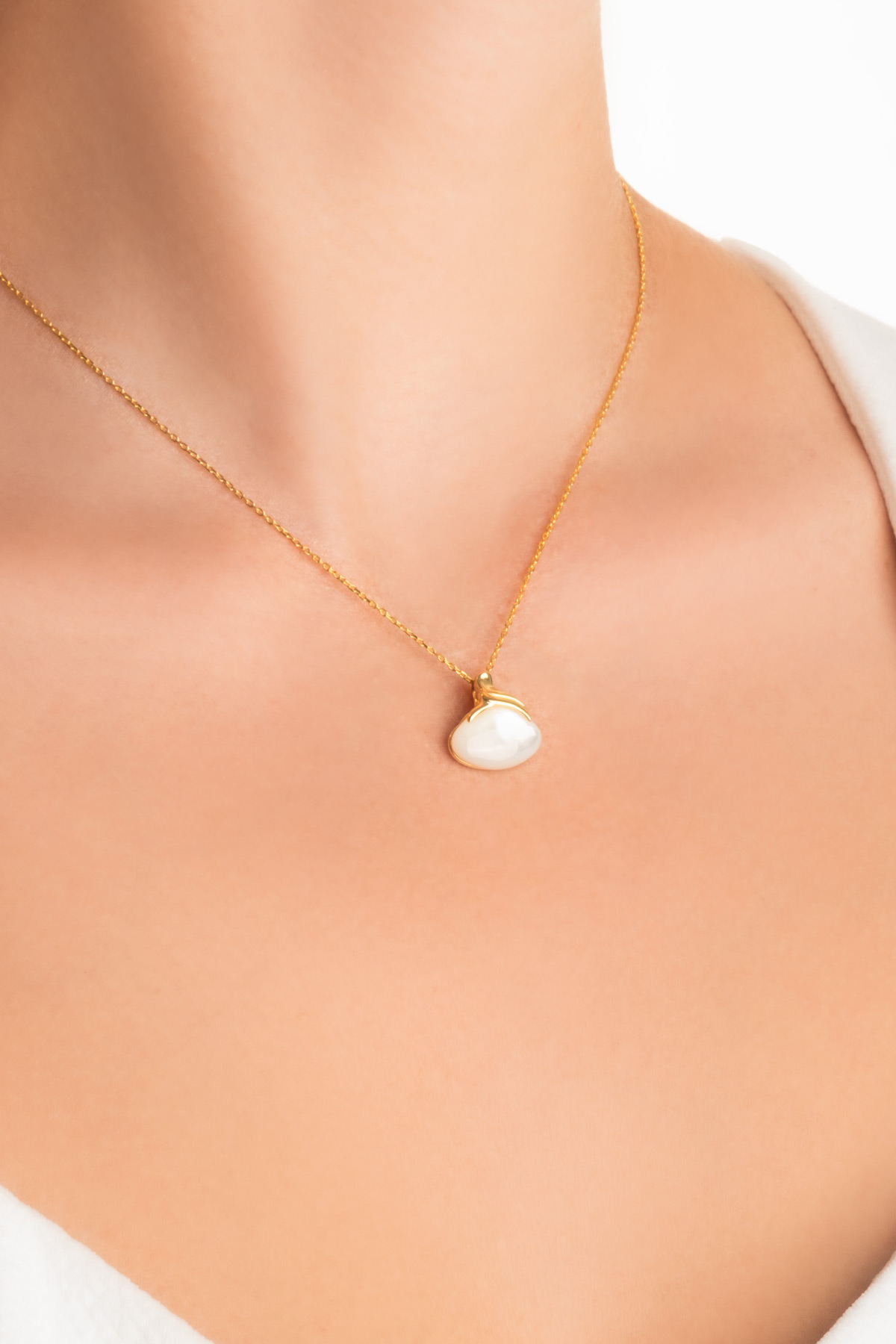 Pembe Kalsedon Taşlı Beyaz Altın Kaplama
