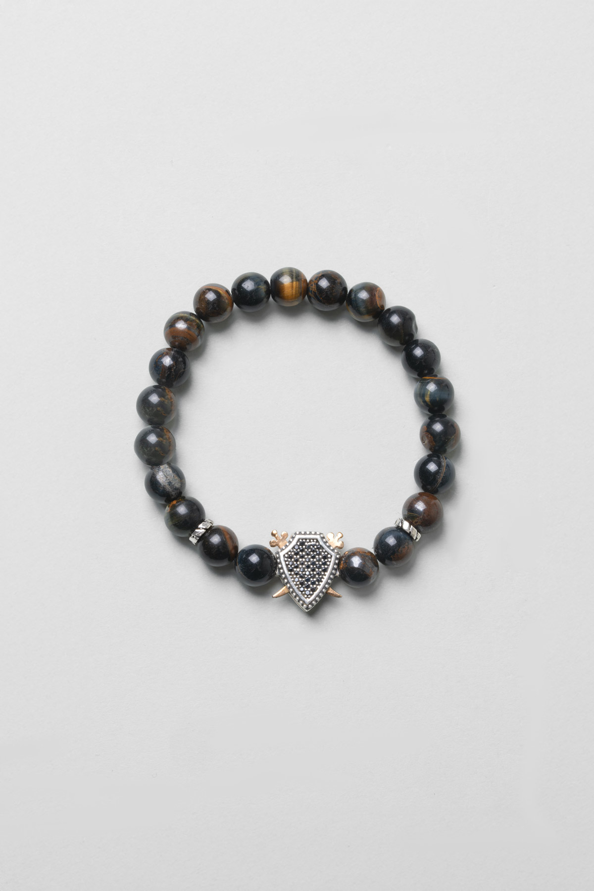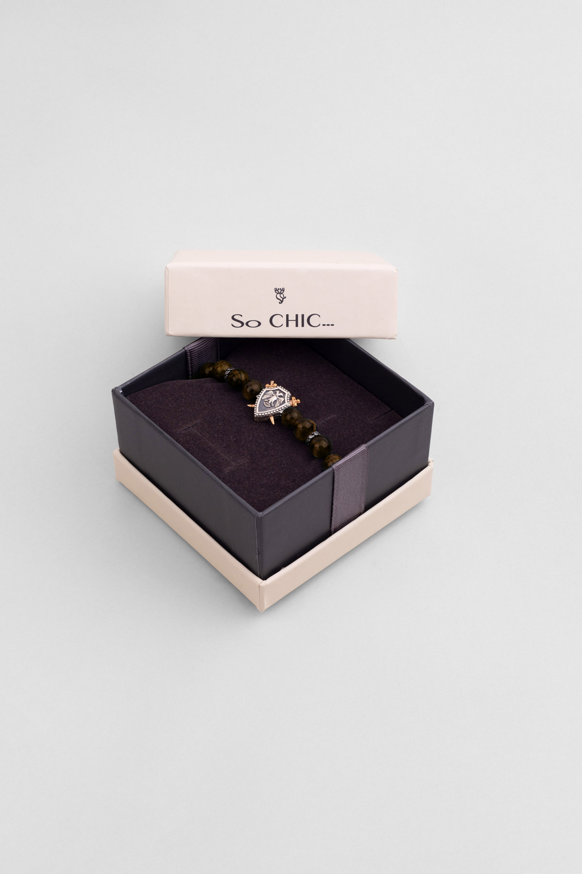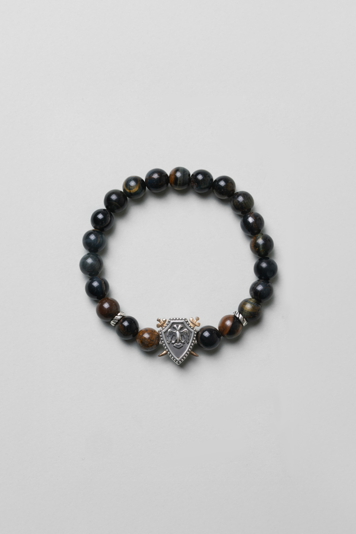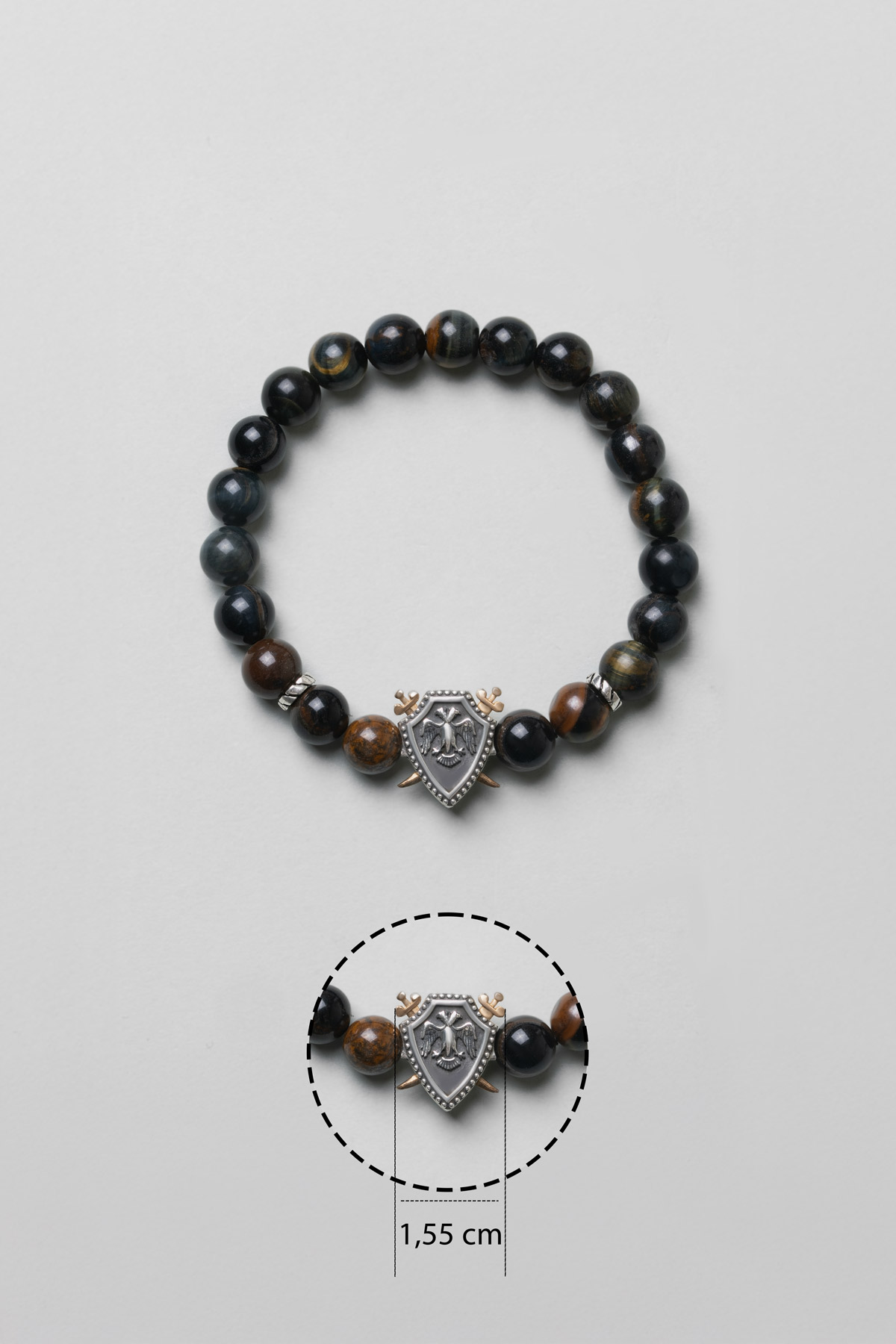 Selçuklu Kartalı Kaplan Gözü Taşlı Cilalı Gümüş Erkek Bileklik