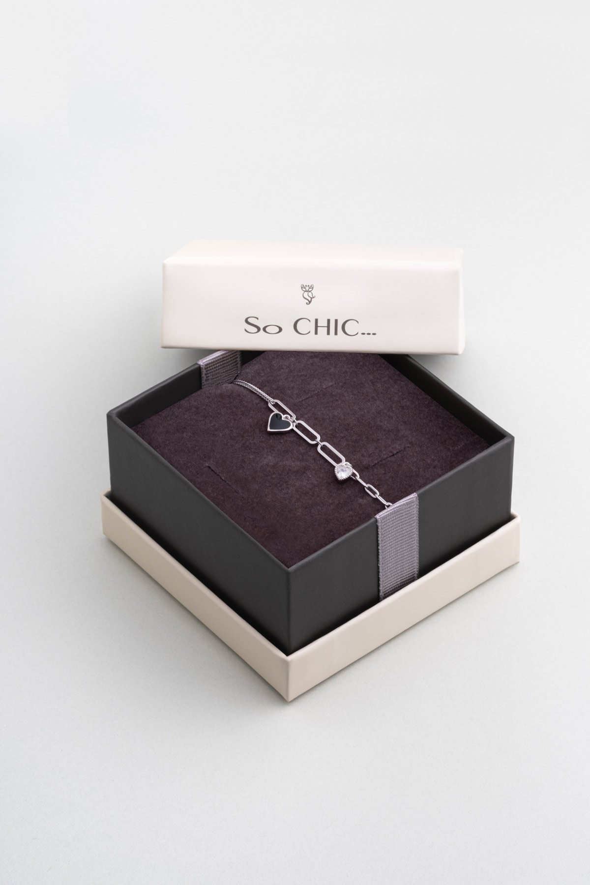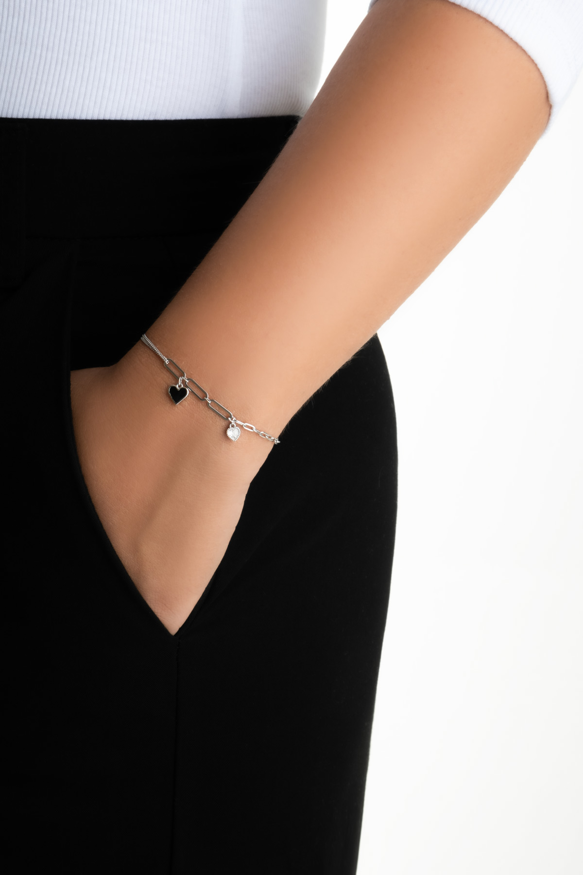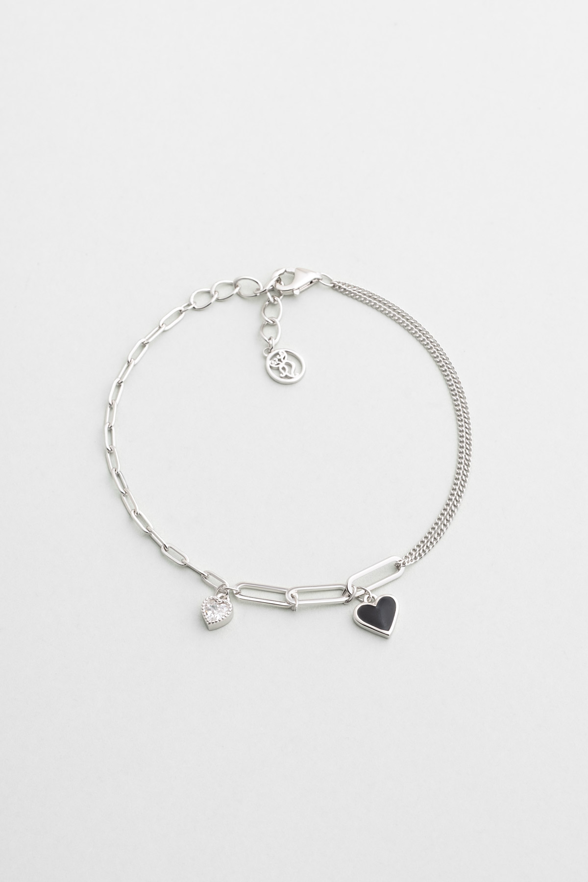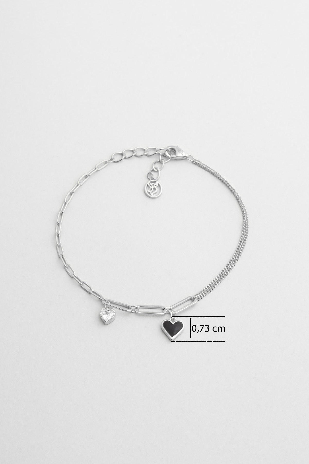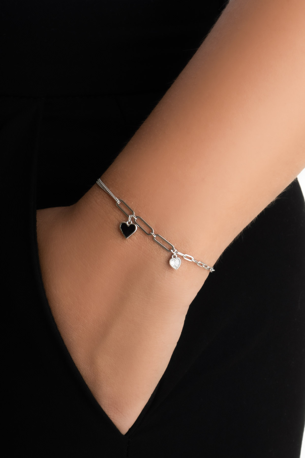 Siyah Kalp 18 Ayar Beyaz Altın Kaplama 19 Cm Gümüş Minimal Bileklik