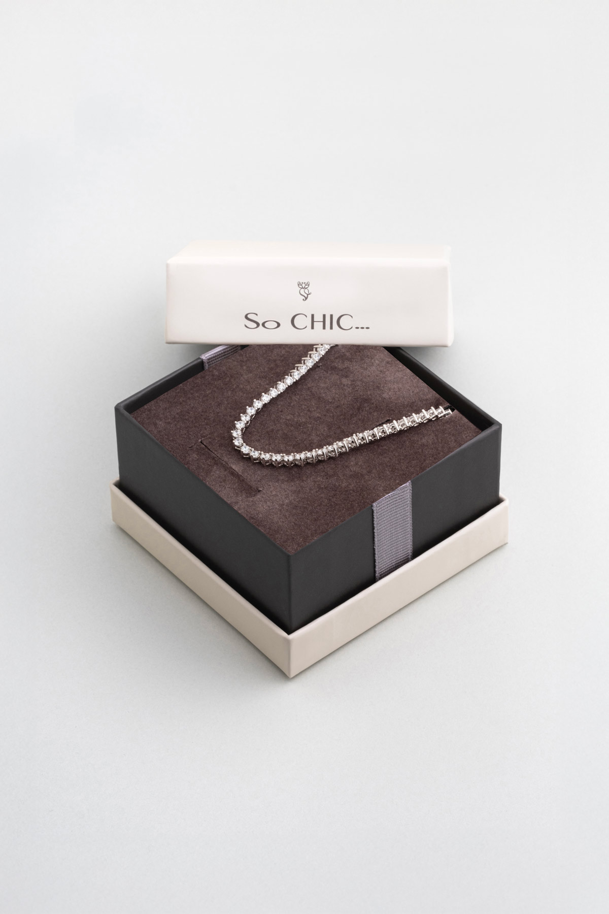 So Chic... Zirkon Taşlı 18 Ayar Beyaz Altın Kaplama Gümüş Su Yolu Kolye