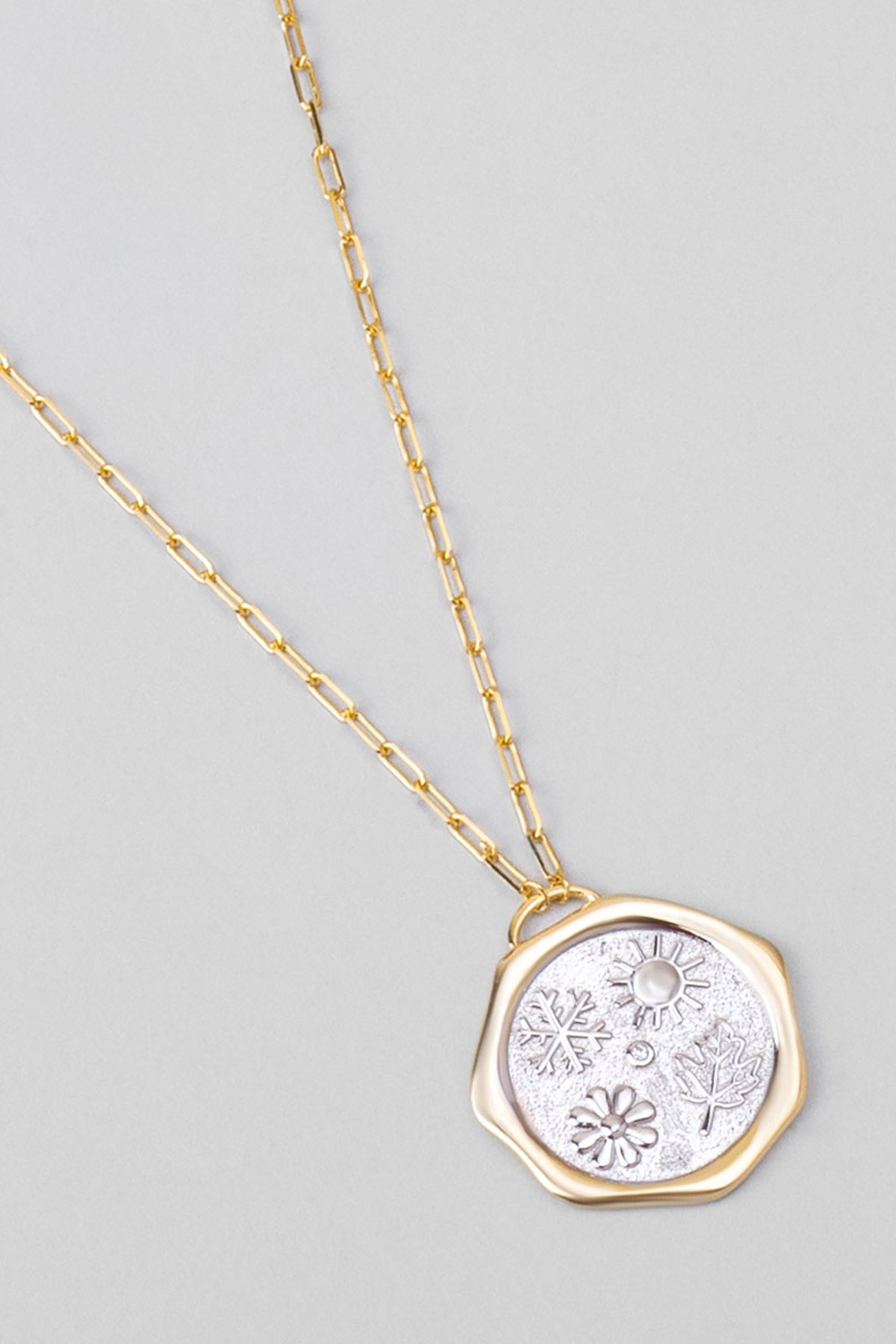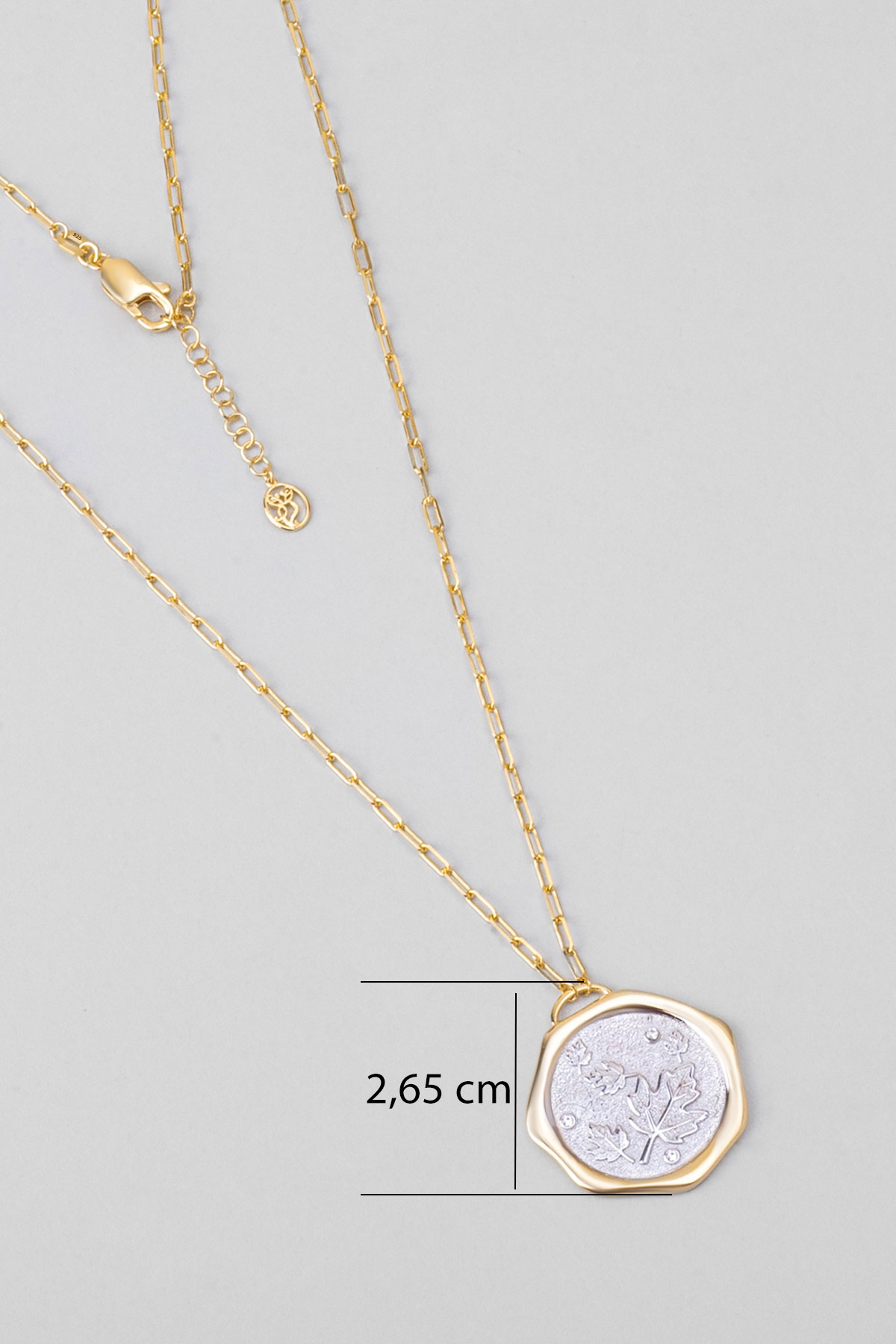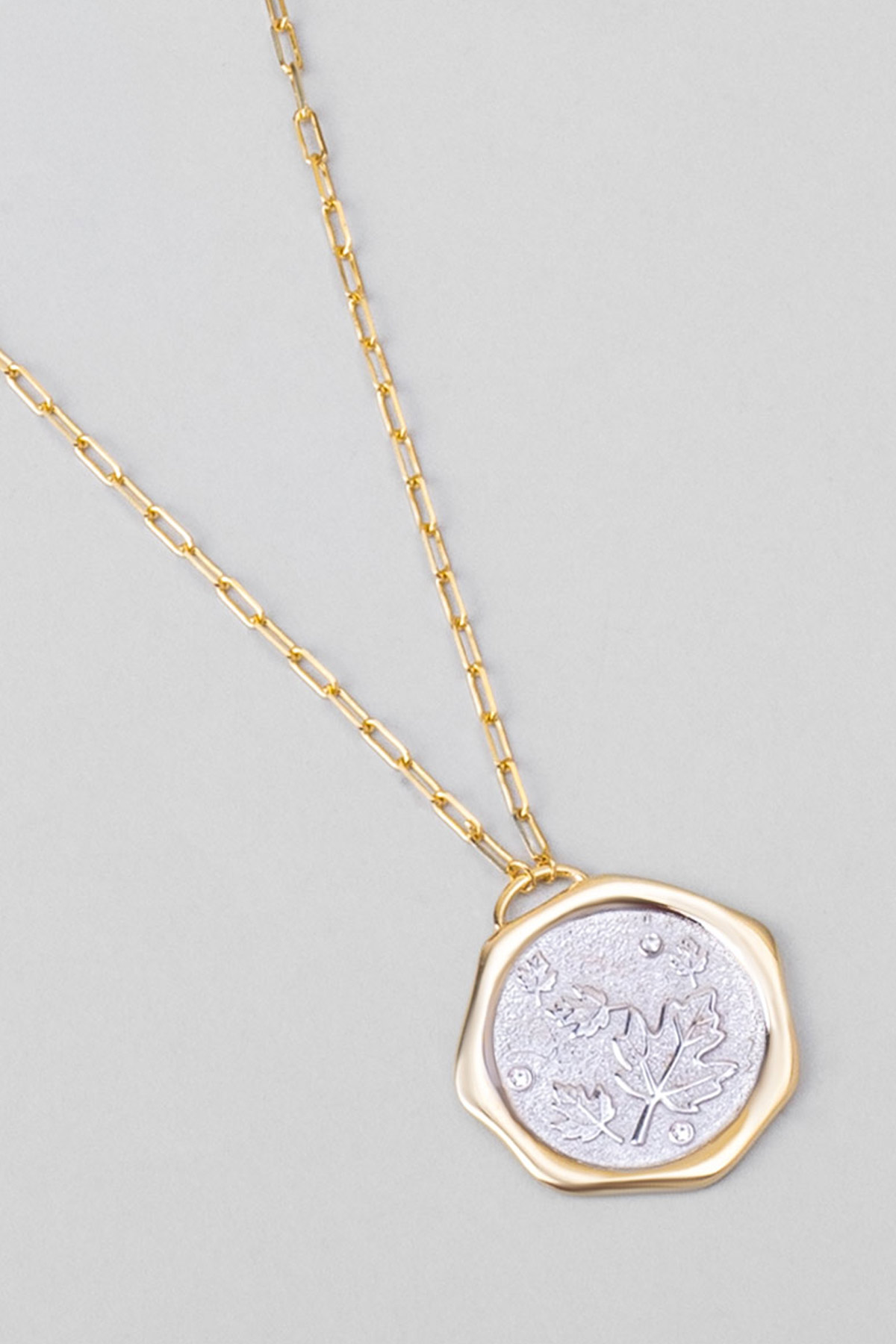 Sonbahar Yaprağı 18 Ayar Sarı Ve Beyaz Altın Kaplama 58 Cm Çift Taraflı Gümüş Kolye
