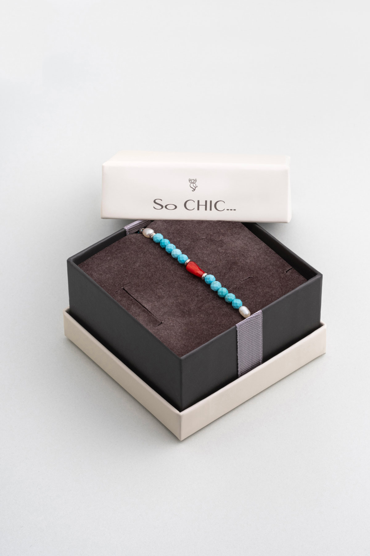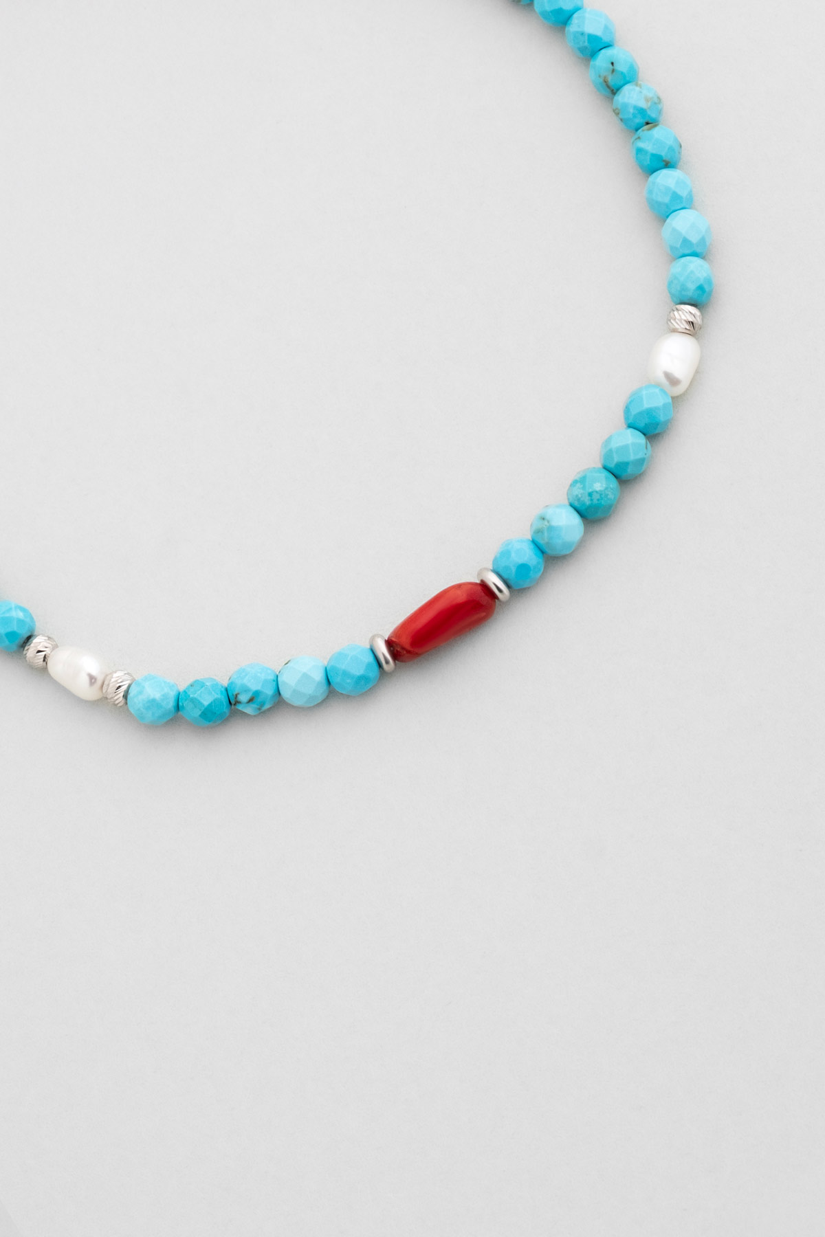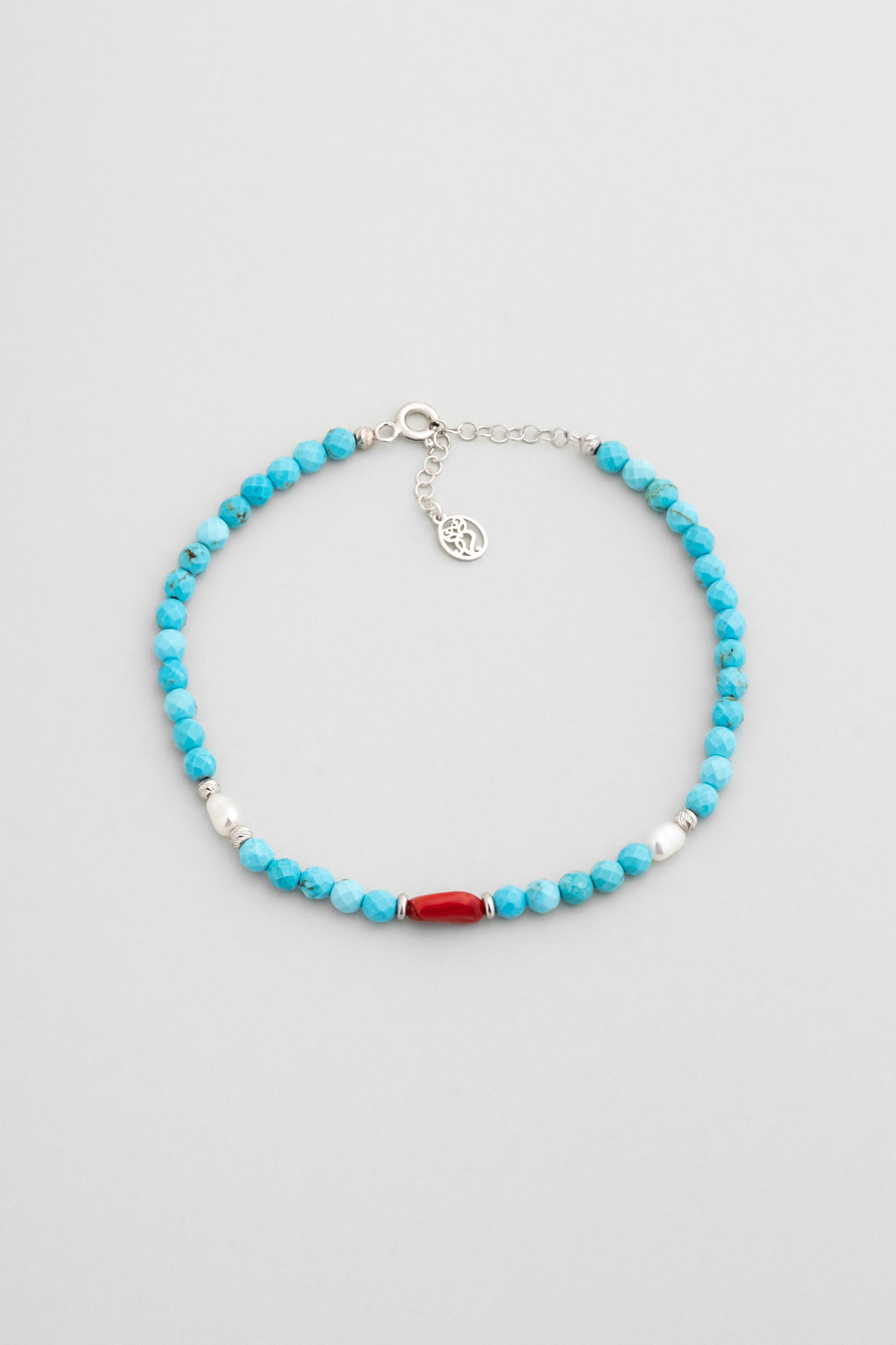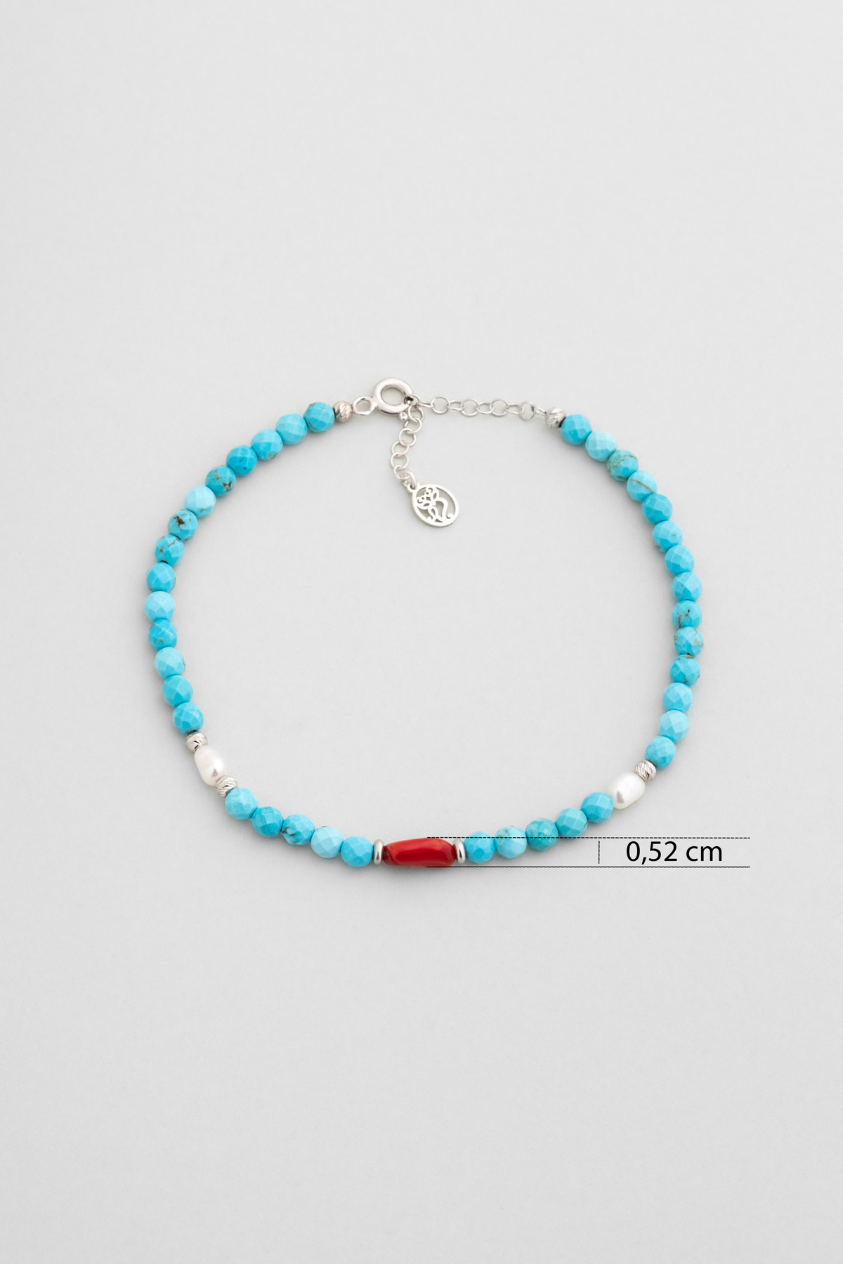 Turkuaz Ve Mercan Taşlı 18 Ayar Beyaz Altın Kaplama 25 Cm Gümüş Doğal Taşlı Halhal
