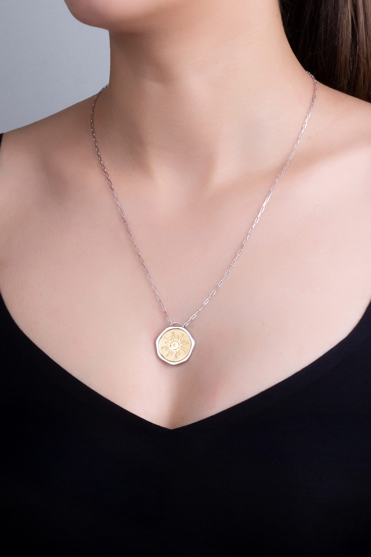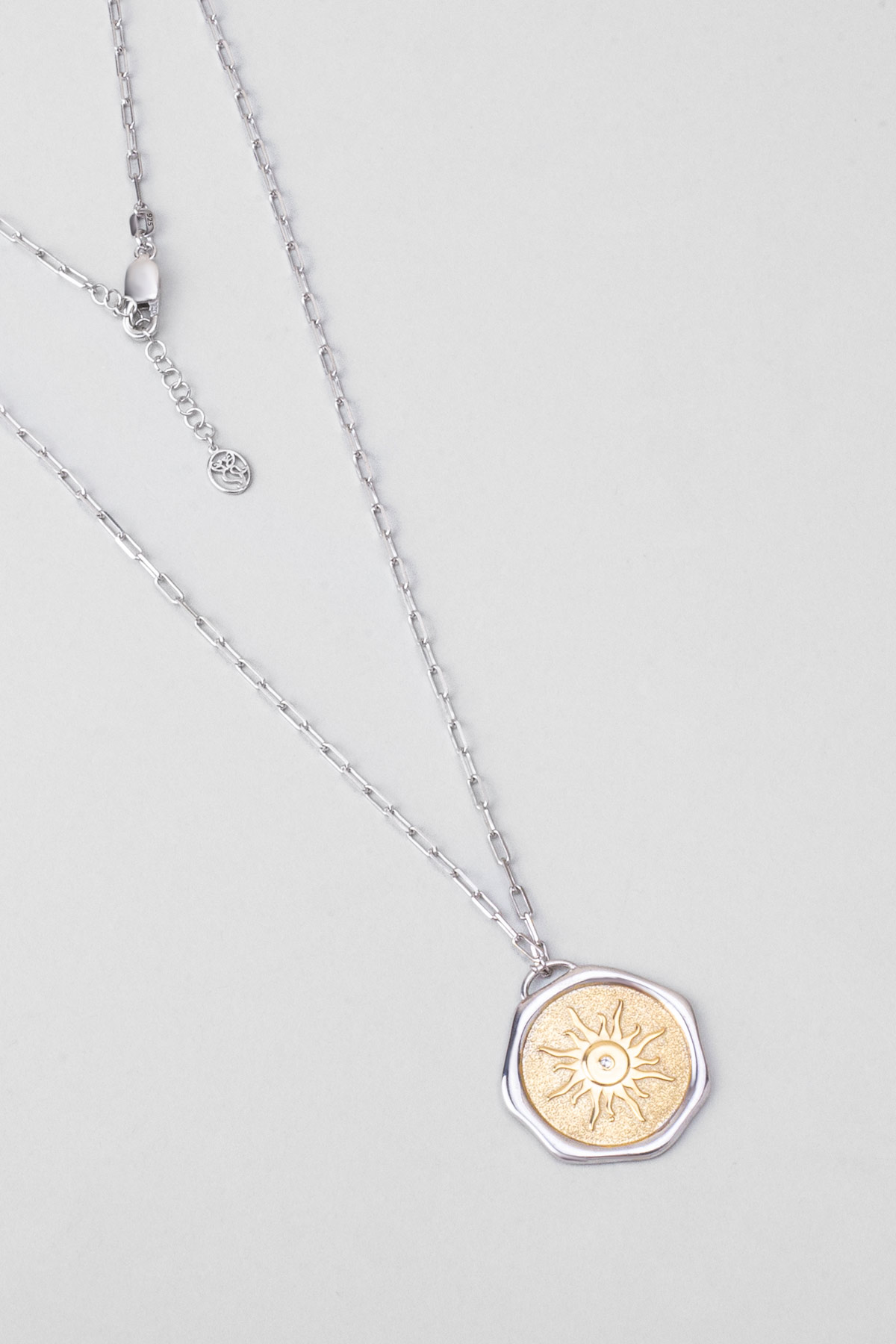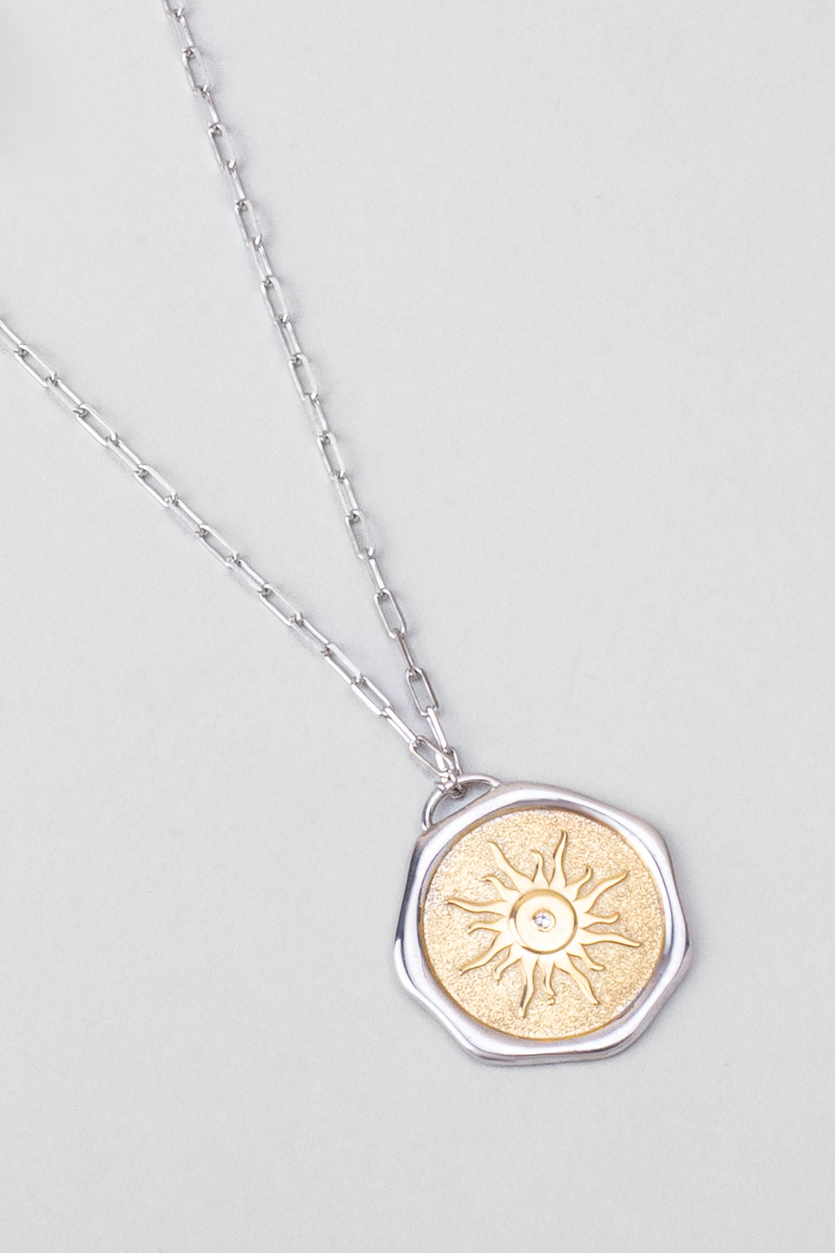 Yaz Güneşi 18 Ayar Sarı Ve Beyaz Altın Kaplama 58 Cm Çift Taraflı Gümüş Kolye