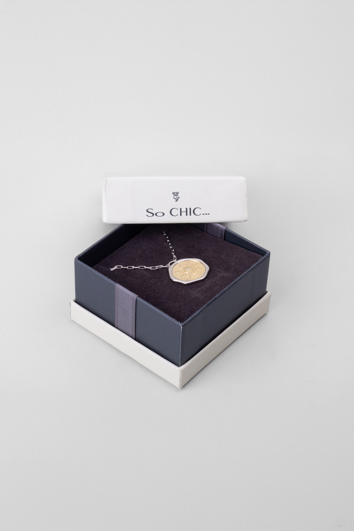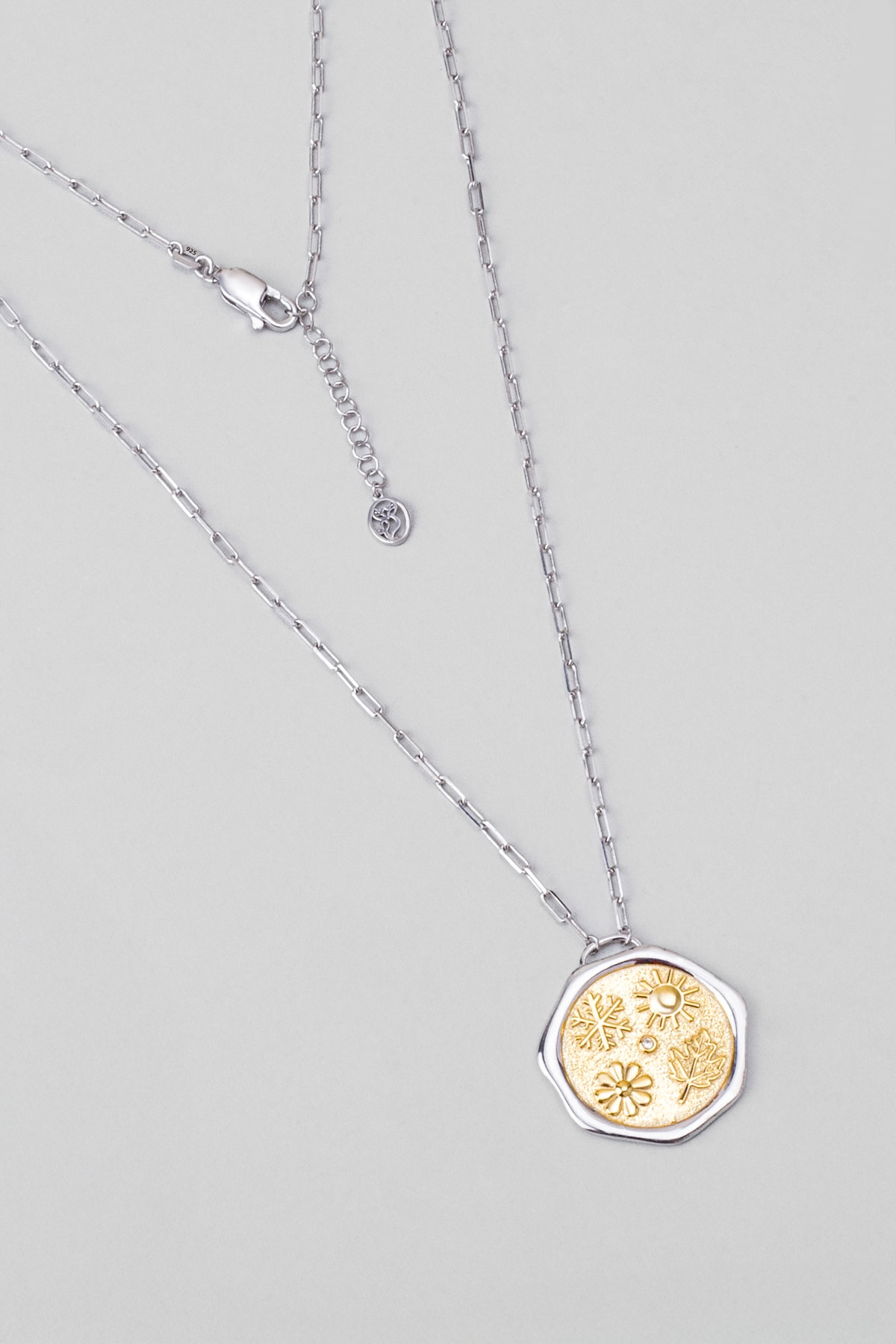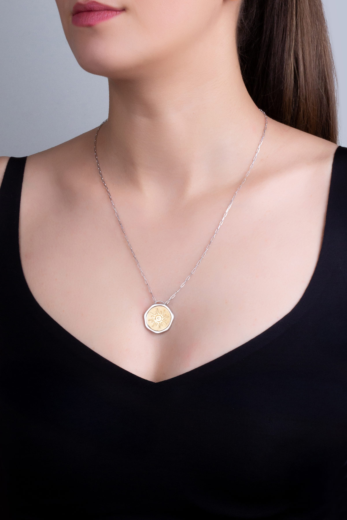 Yaz Güneşi 18 Ayar Sarı Ve Beyaz Altın Kaplama 58 Cm Çift Taraflı Gümüş Kolye