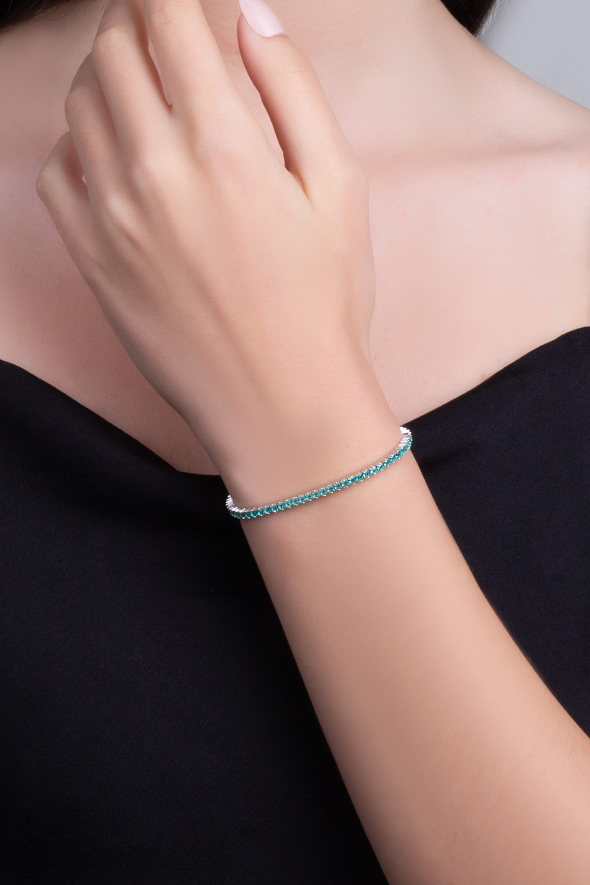 Zambak Işıltısı 18 Ayar Beyaz Altın Kaplama Gümüş Su Yolu Bileklik